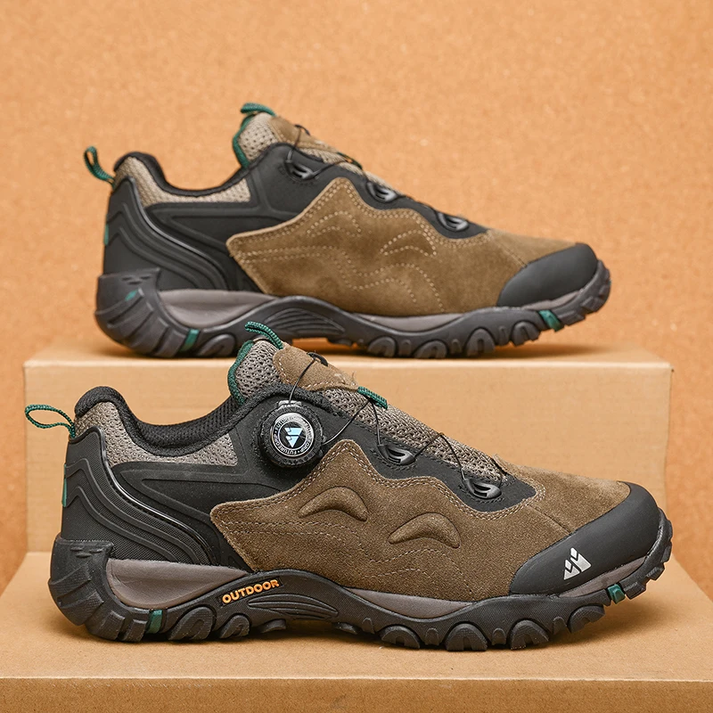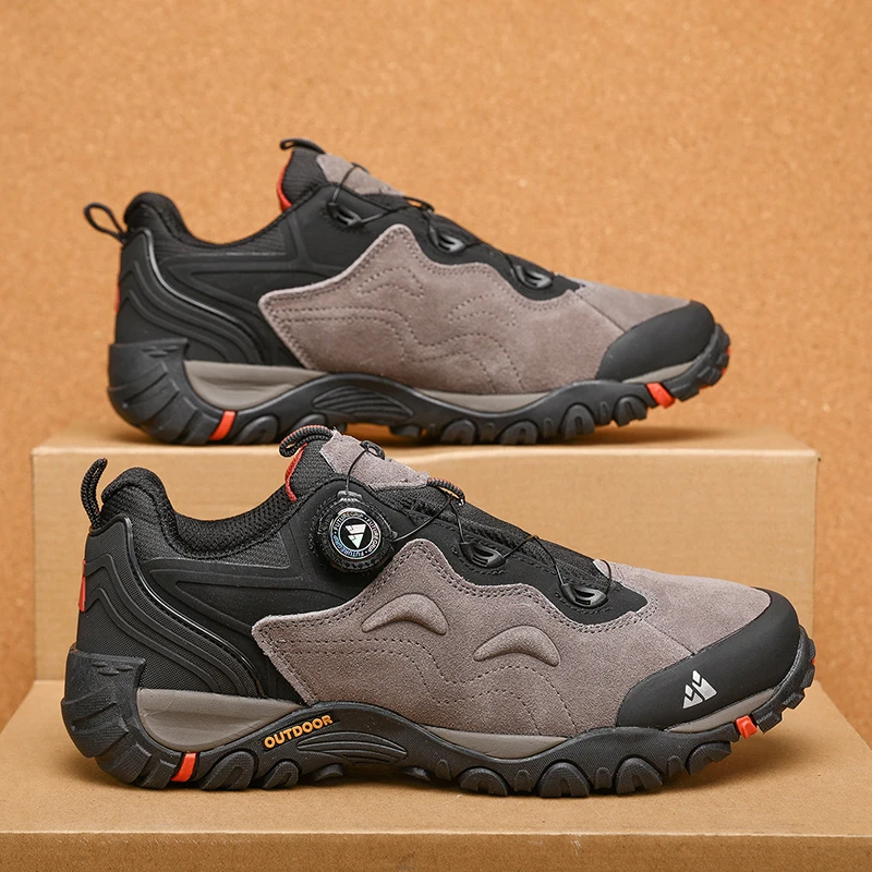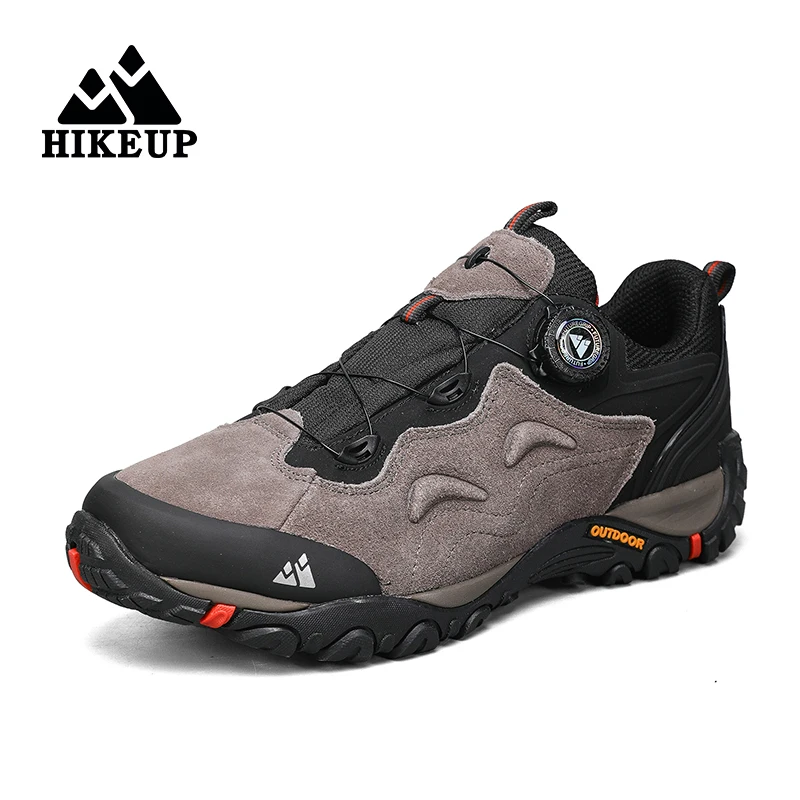 HIKEUP Herren Leder Outdoor-Schuhe – Atmungsaktive Hiking & Trekking Sneakers, Mountain Climbing & Trail Jogging Shoes, Slip-On Turnbuckle