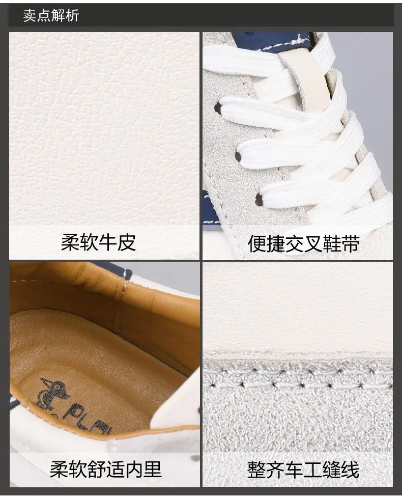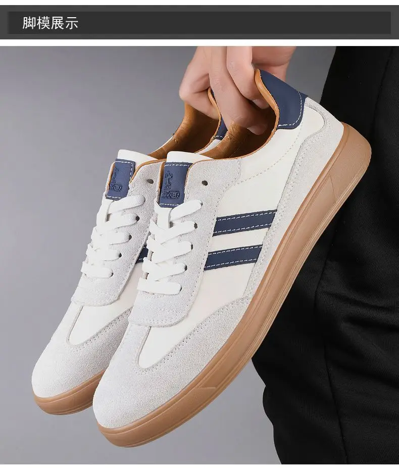 Das Obermaterial aus Leder sorgt für Strapazierfähigkeit und eine hochwertige Optik. Das Mesh-Innenfutter sorgt für Atmungsaktivität, während die EVA-Innensohle für bequemen Halt und Dämpfung sorgt. Die Gummiaußensohle bietet rutschfesten Grip auf verschiedenen Untergründen, ideal für den Alltag oder sportliche Aktivitäten.
