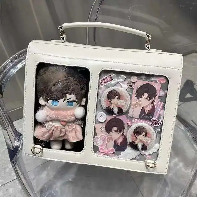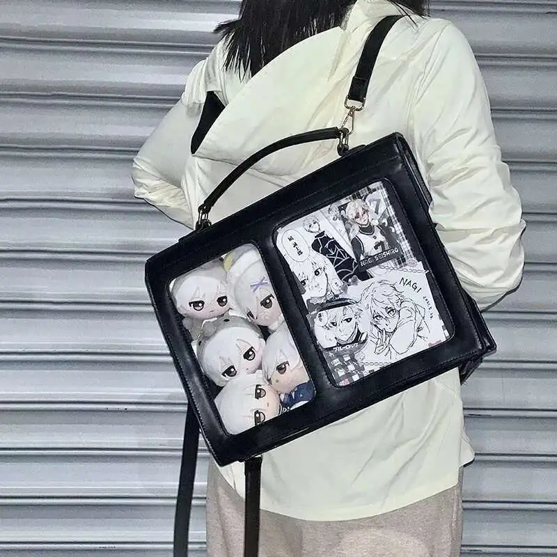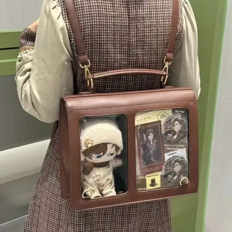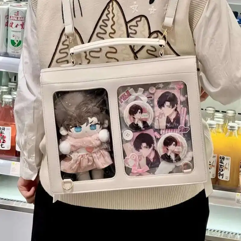 Japanischer Ita Damen & Mädchen Rucksack – PU Leder Preppy Style Backpack mit transparentem Fach, kompakt & stylisch