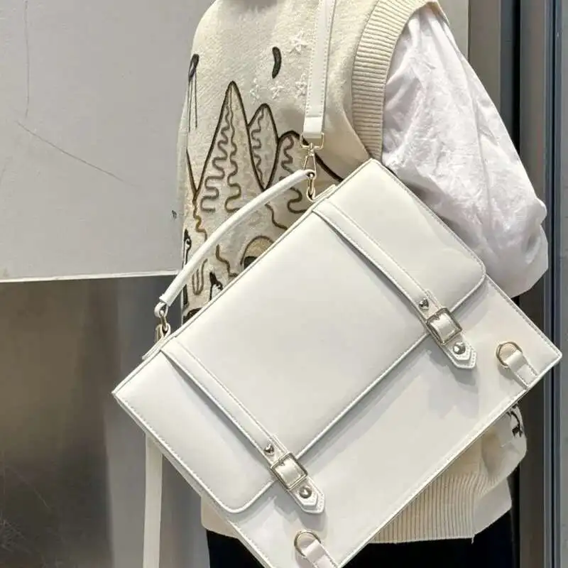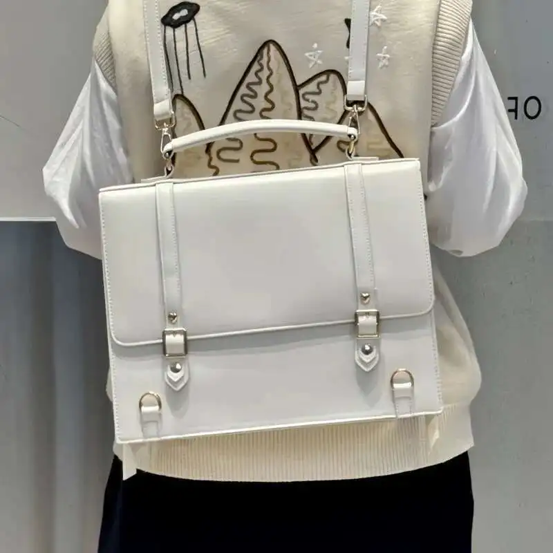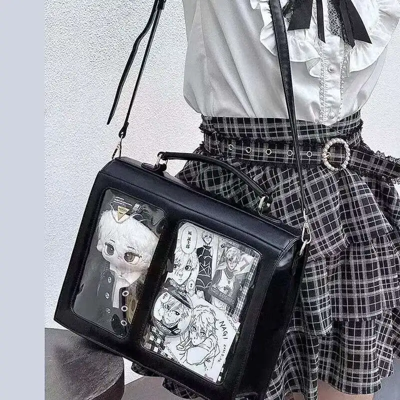 Gefertigt aus robustem PU-Leder, überzeugt der Rucksack durch seine glatte Oberfläche, angenehme Haptik und Pflegeleichtigkeit. Die schlichte Uni-Farbe in Schwarz, Weiß oder Braun sorgt für einen zeitlosen Look, während die transparente Ita-Fläche den individuellen Stil der Trägerin unterstreicht. Das klare Design ohne Logo macht den Rucksack vielseitig kombinierbar – perfekt für Preppy-Outfits und japanische Streetstyles.