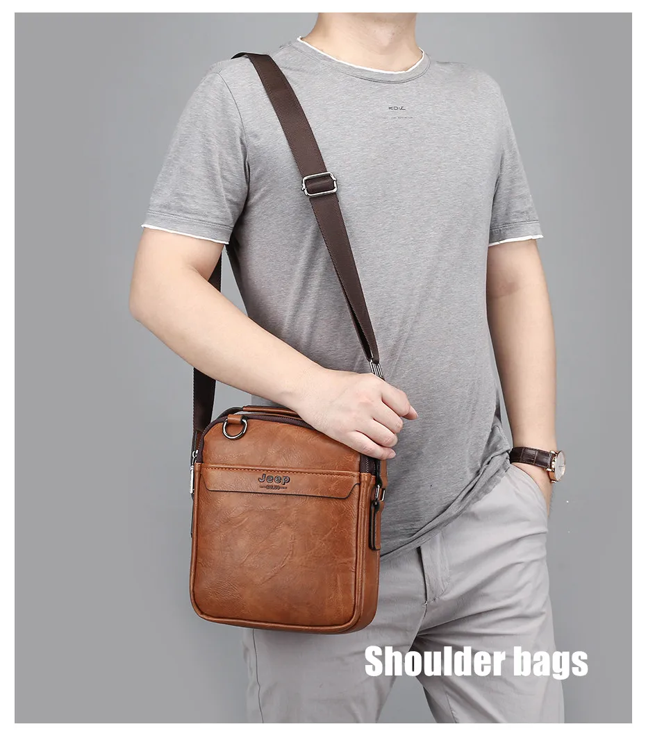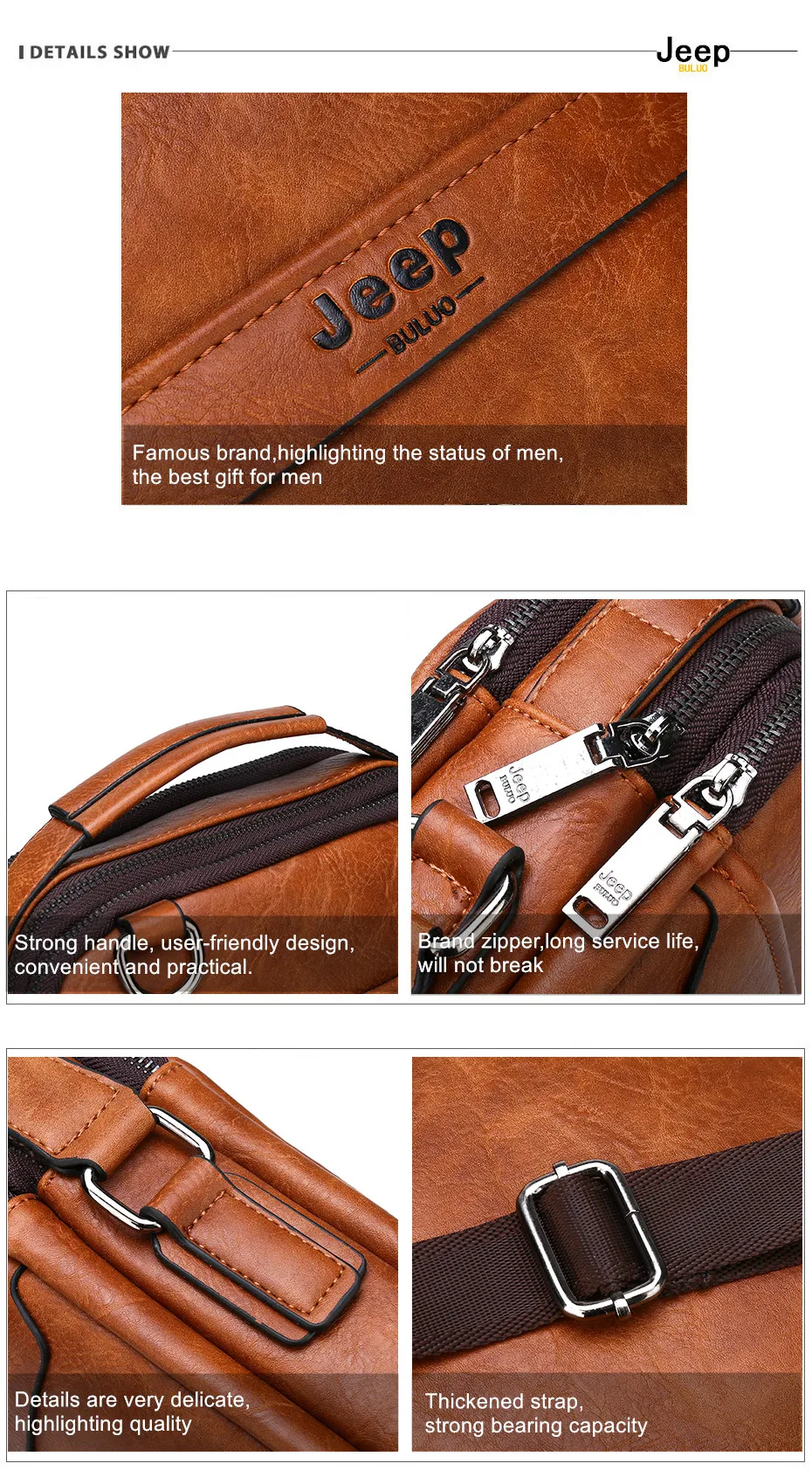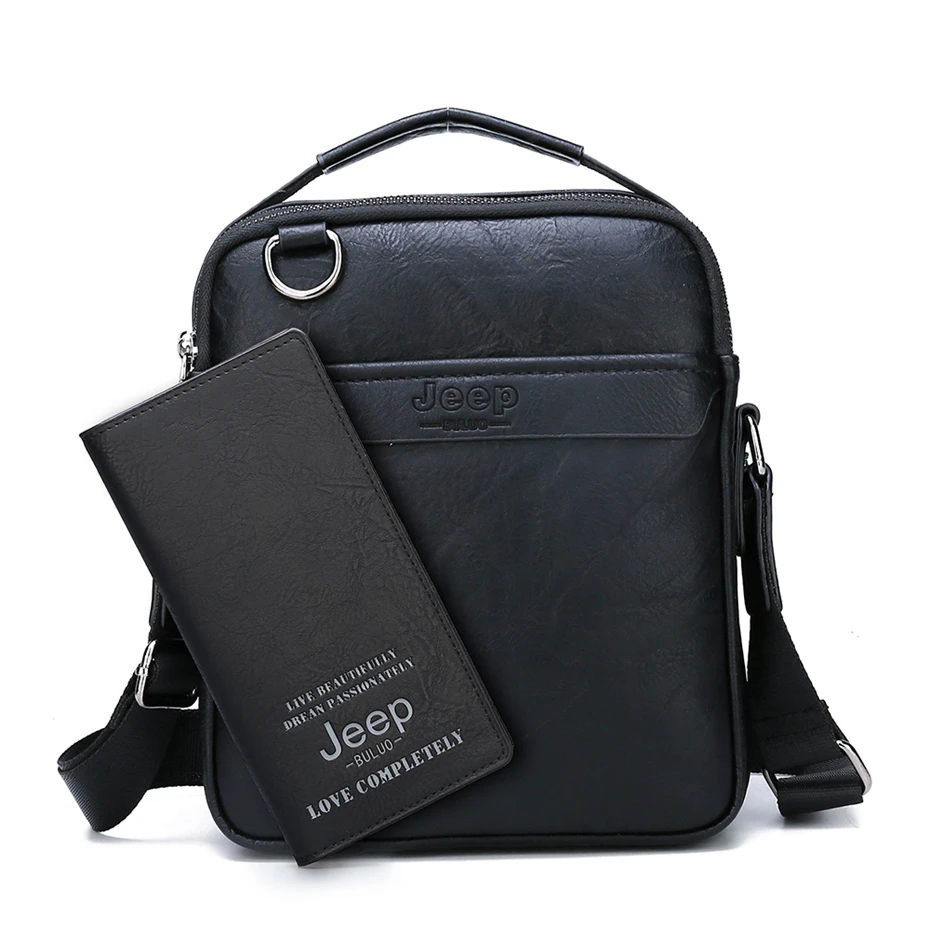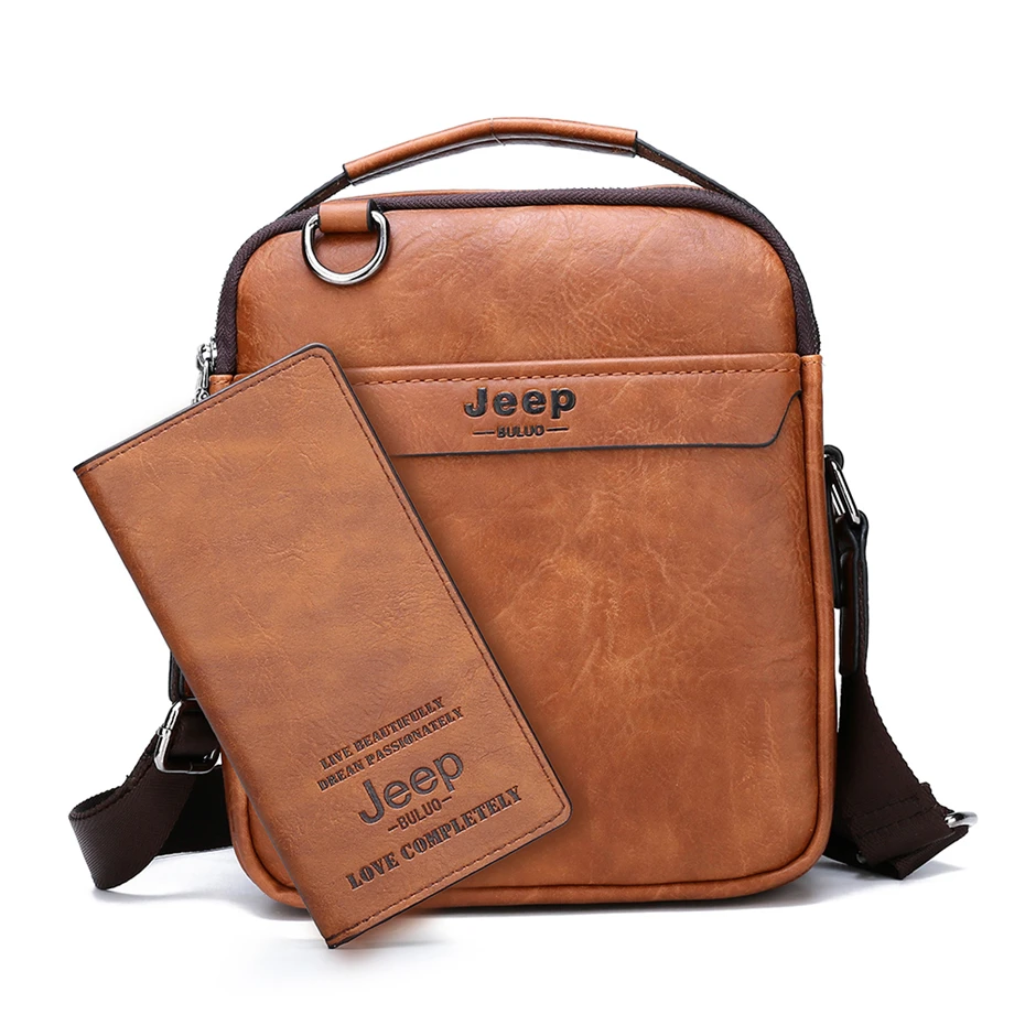 JEEP BULUO Brand Handbag Men Messenger Bags Splite Leather 2pc set Crossbody Business bag For iPad mini MaleShoulder Bag