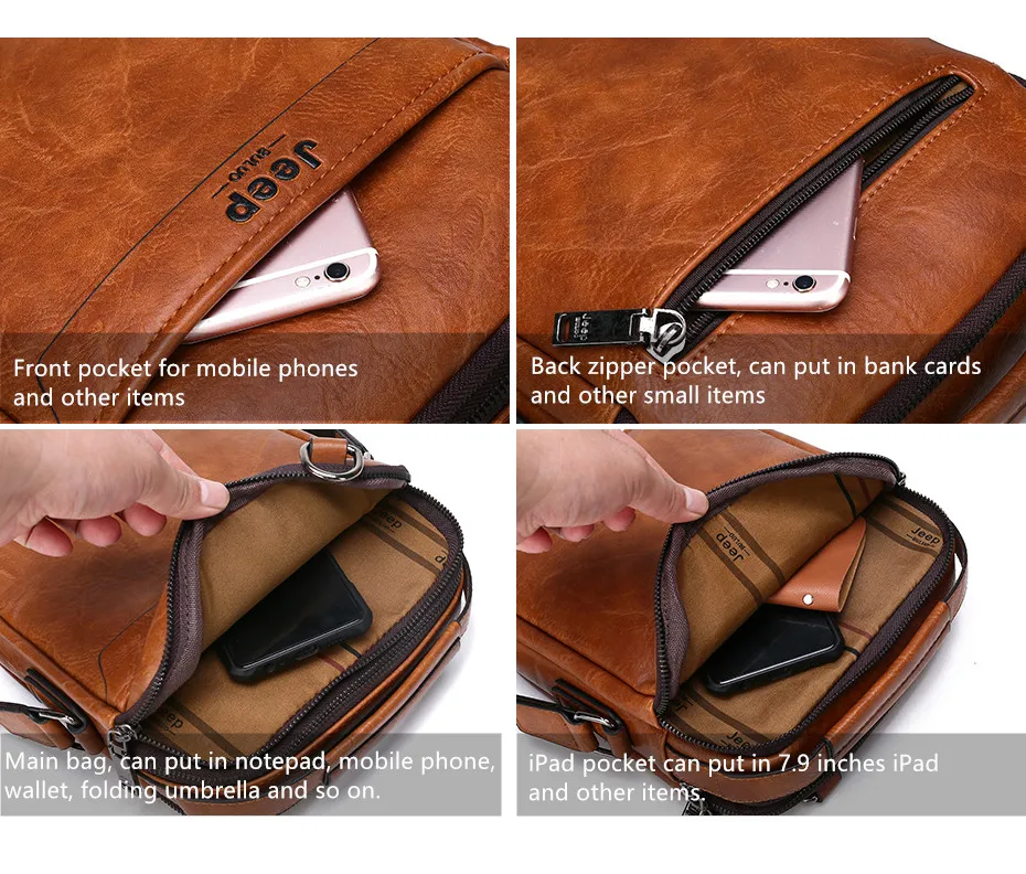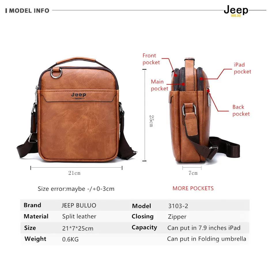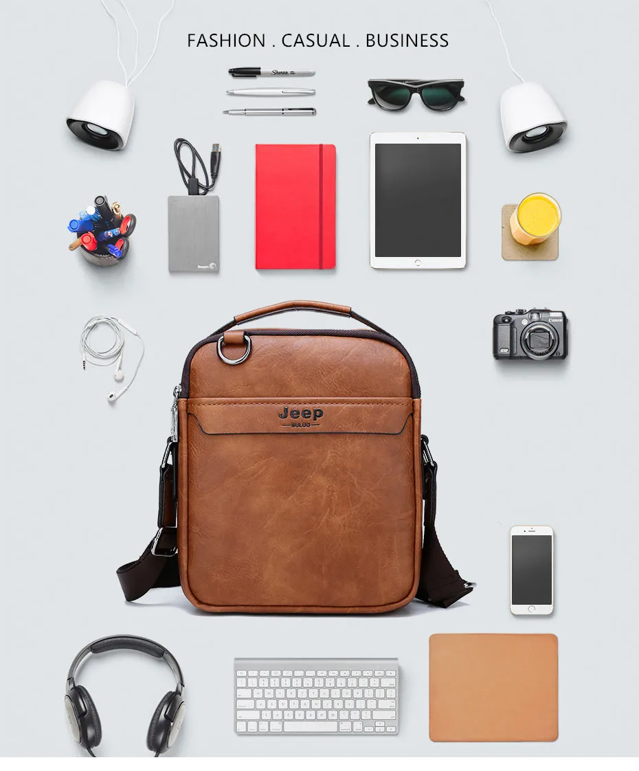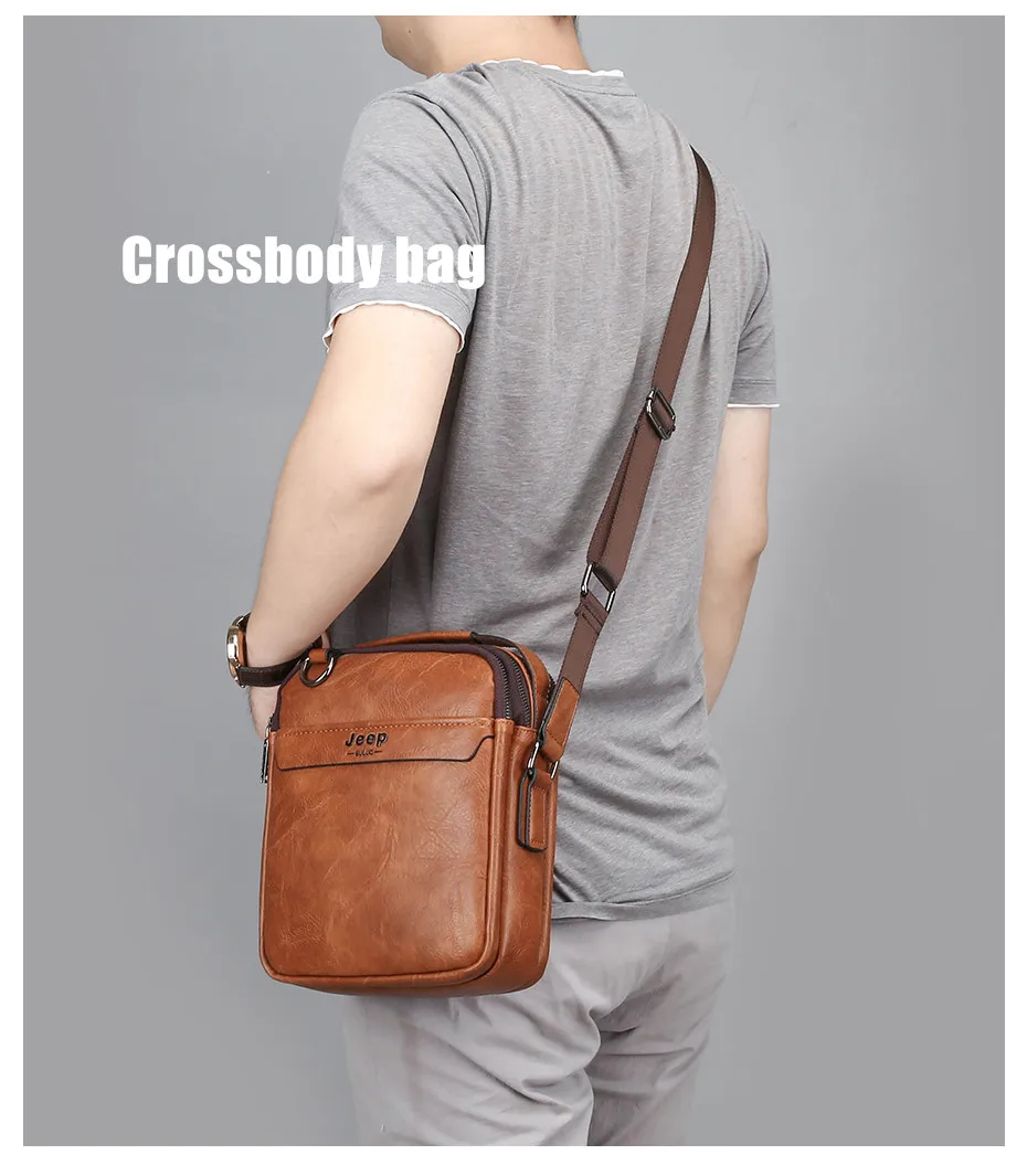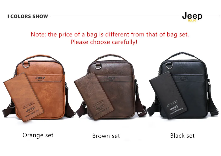 JEEP BULUO Brand Handbag Men Messenger Bags Splite Leather 2pc set Crossbody Business bag For iPad mini MaleShoulder Bag