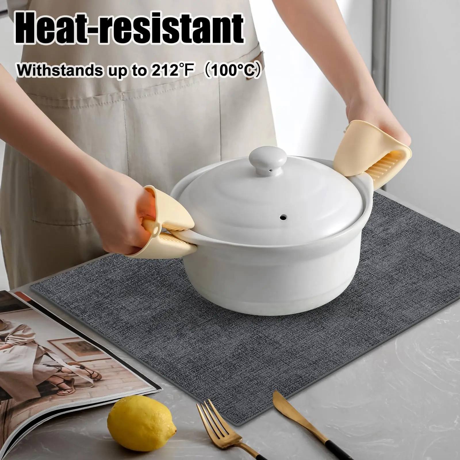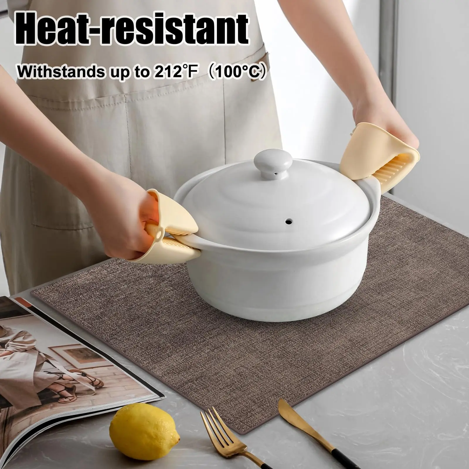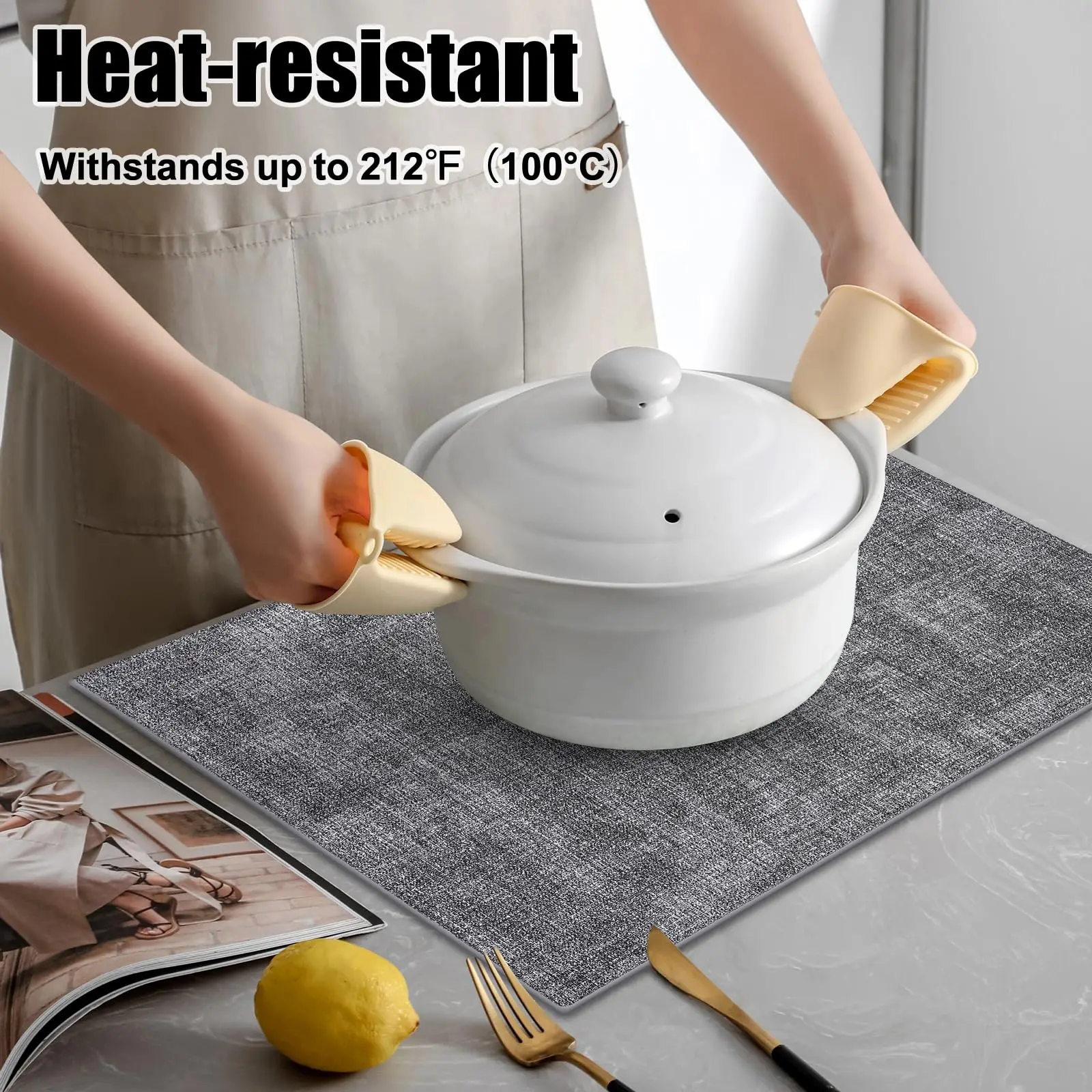 Diese hitzebeständigen Platzmatten bieten eine effektive Wärmeisolierung bis ca. 100 °C (212 °F). Heiße Teller, Tassen oder Schüsseln können bedenkenlos abgestellt werden. Die fein strukturierte Oberfläche erhöht gleichzeitig die Rutschfestigkeit, sodass Geschirr sicher an seinem Platz bleibt – ideal für den täglichen Gebrauch und auch für Haushalte mit Kindern.