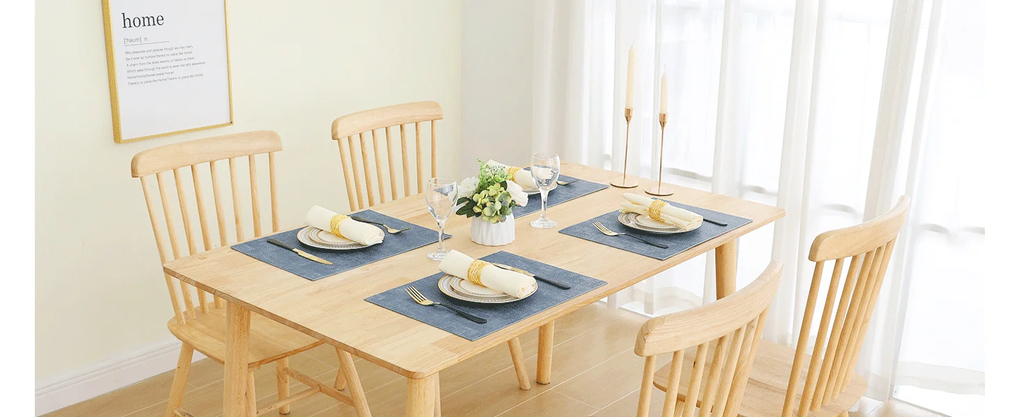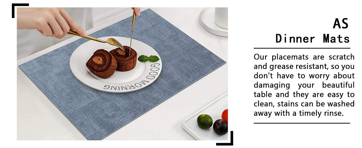 Die wasserdichten und ölresistenten Tischsets sind besonders pflegeleicht. Flüssigkeiten, Fett oder Essensreste lassen sich einfach mit einem feuchten Tuch abwischen oder kurz unter fließendem Wasser abspülen. Die Matten verfärben sich nicht, nehmen keine Gerüche an und trocknen schnell an der Luft – perfekt für einen stressfreien Alltag.