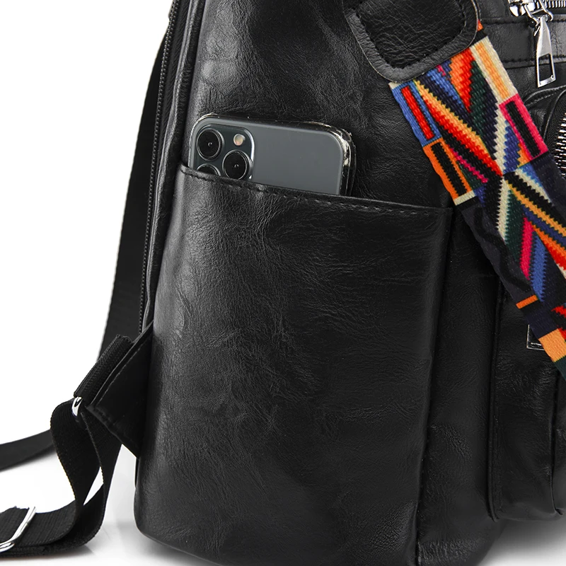 Mit seiner eleganten Silhouette und den klassischen Farben Schwarz, Rot, Braun und Coffee lässt sich der Rucksack vielseitig kombinieren – von lässig bis elegant.