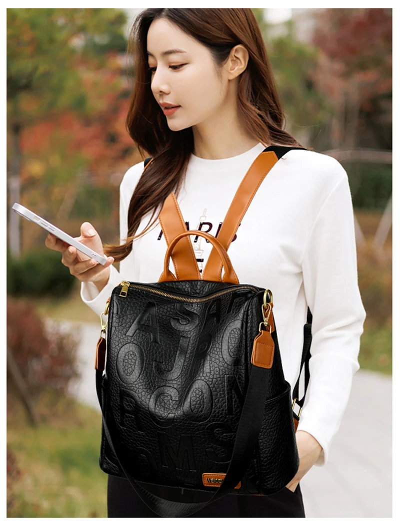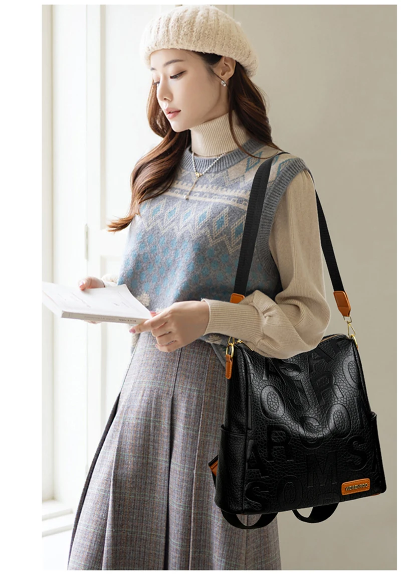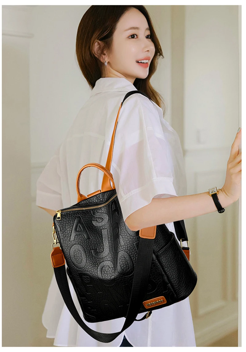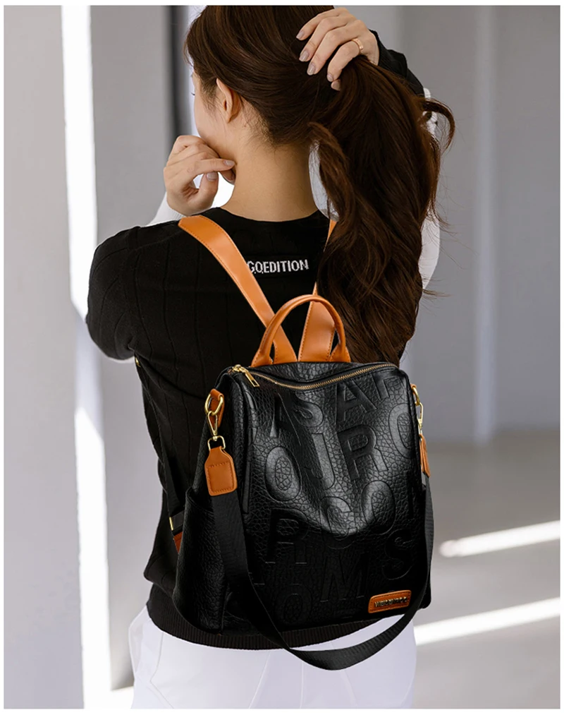 Gefertigt aus hochwertigem PU-Material in Lederoptik, überzeugt der Rucksack durch seine angenehme Haptik, Strapazierfähigkeit und pflegeleichte Oberfläche. Das modische Letter-Design verleiht dem Rucksack einen modernen Akzent, ohne aufdringlich zu wirken.