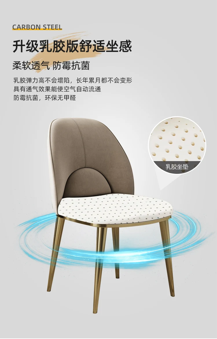 Das stabile Gestell aus hochwertigem Edelstahl sorgt für sicheren Stand, hohe Belastbarkeit und eine lange Lebensdauer. Die Kombination aus Echtleder und Metall unterstreicht den modernen Light-Luxury-Stil und macht den Stuhl zu einer hochwertigen Ergänzung moderner Einrichtungskonzepte. Die Konstruktion ist solide, formstabil und für den täglichen Gebrauch ausgelegt.