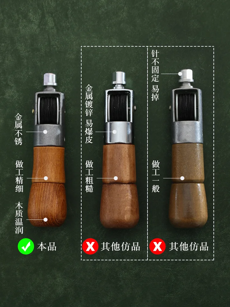 Gefertigt aus widerstandsfähigem Metall und Holz, überzeugt die Handnähmaschine durch ihre stabile Konstruktion und lange Lebensdauer. Mit einer Länge von ca. 120 mm liegt das Werkzeug sicher in der Hand und ermöglicht sauberes Arbeiten auch an dicken und festen Materialien. Die durchdachte Bauweise erlaubt das einfache Durchstechen von Stoffen, bei denen herkömmliche Nadeln schnell an ihre Grenzen stoßen.