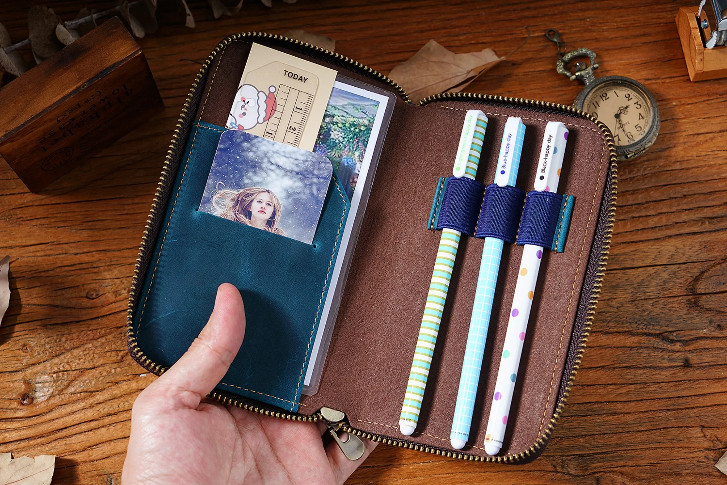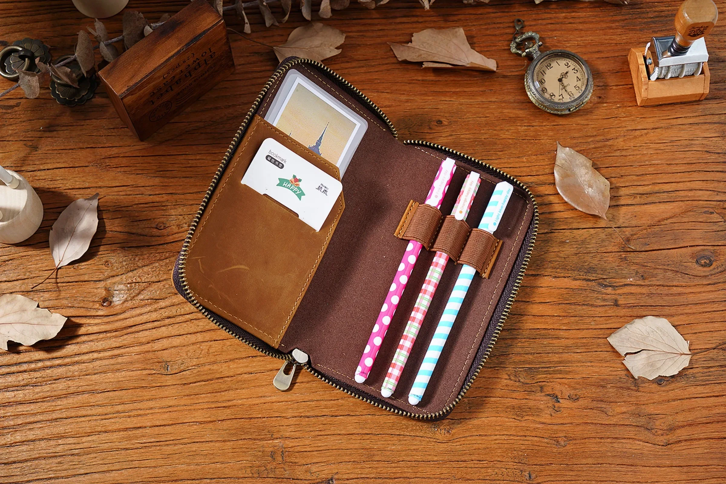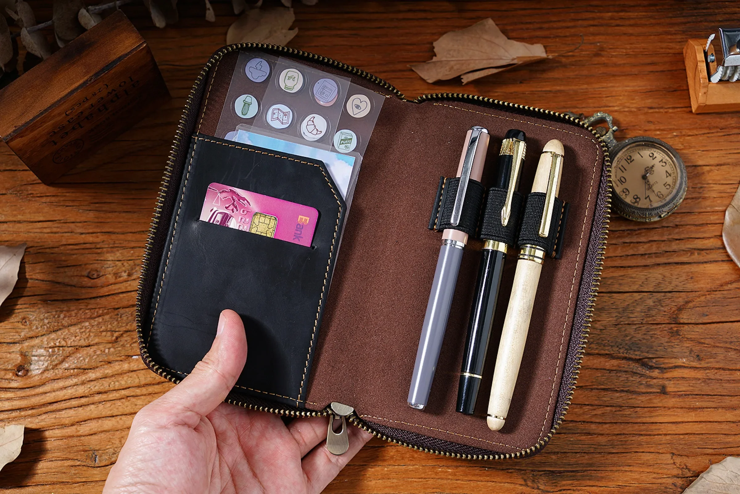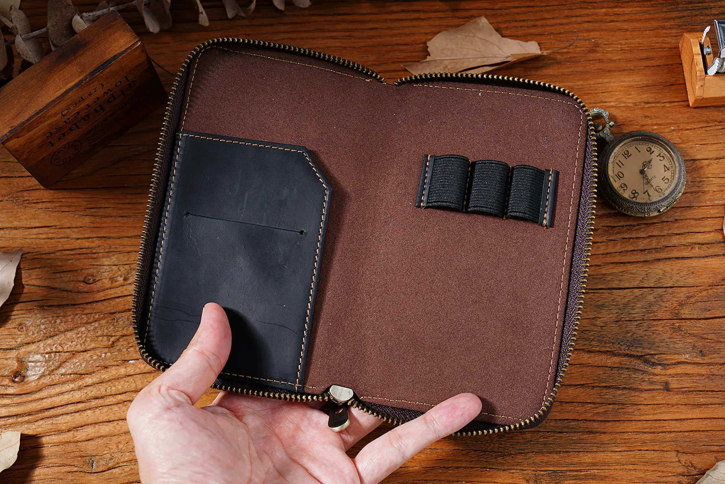 • Comes with 3 elastic pen slots, can hold different sizes of pens.