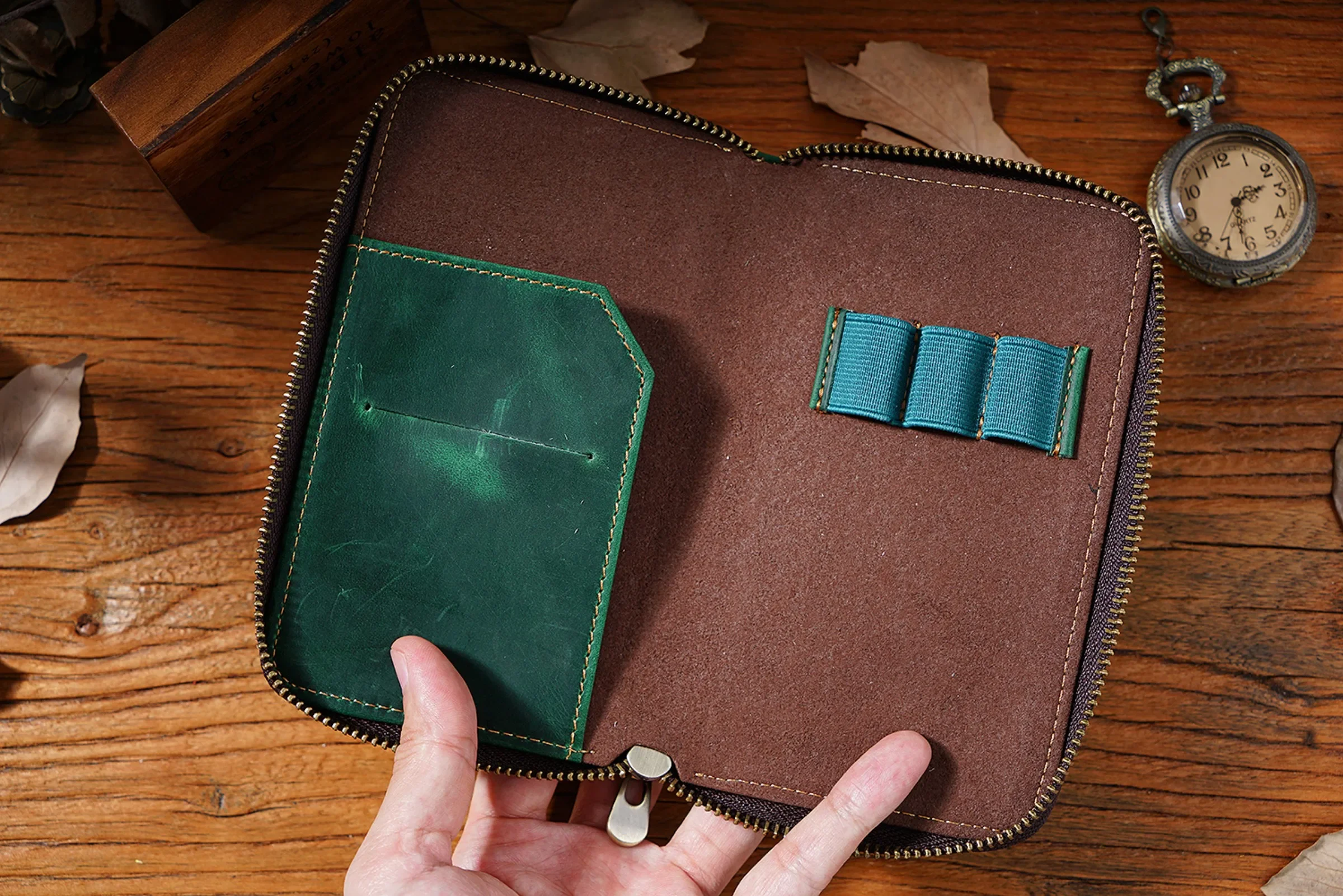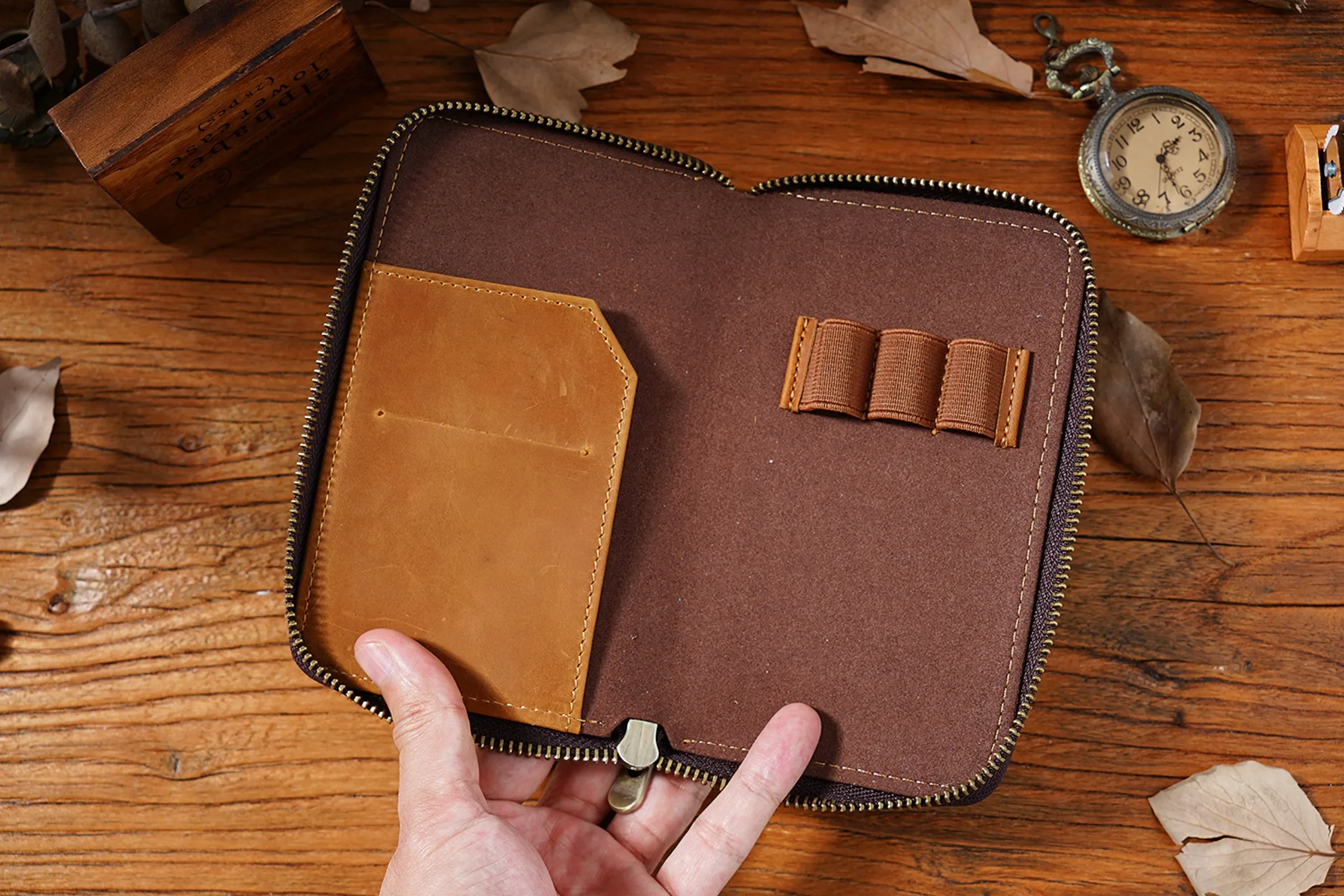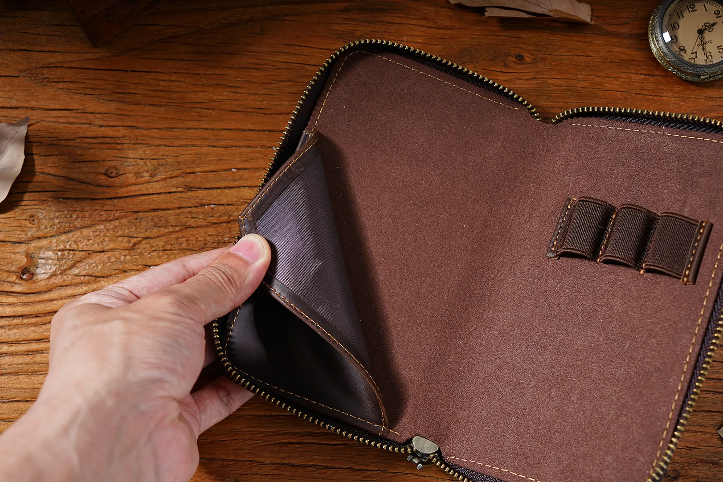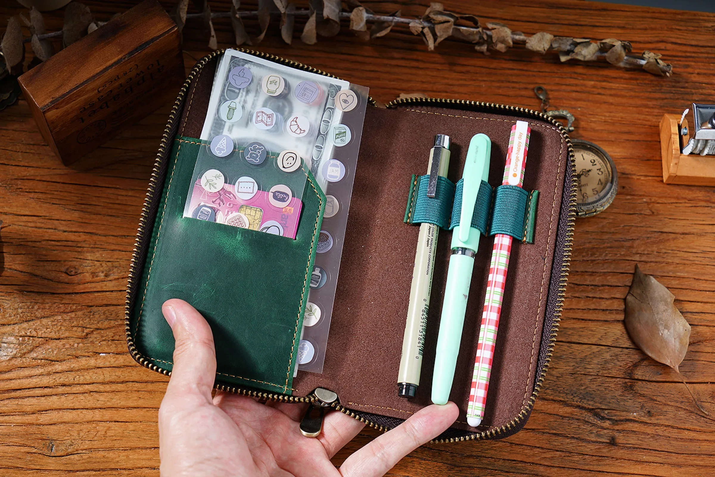 • Comes with 3 elastic pen slots, can hold different sizes of pens.