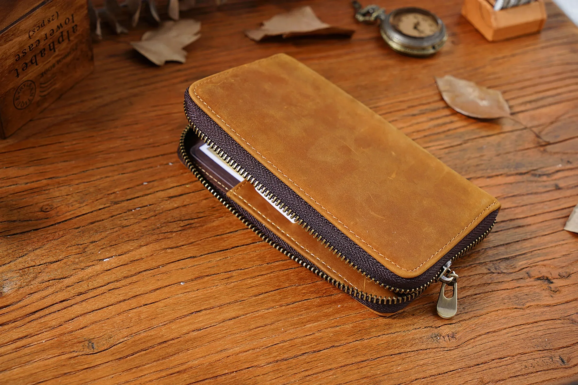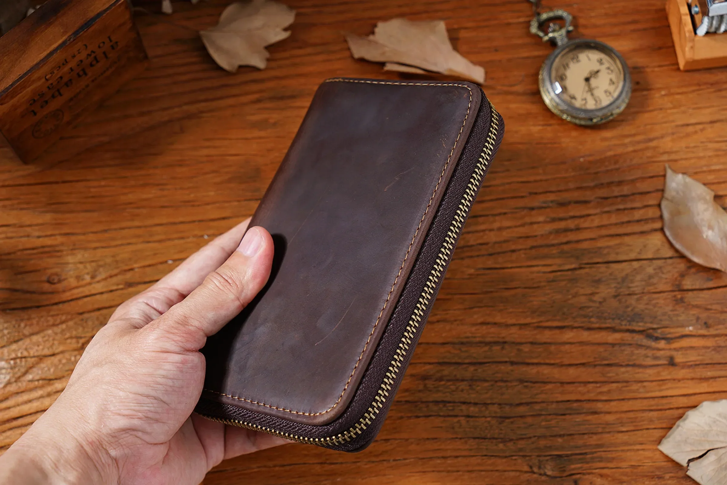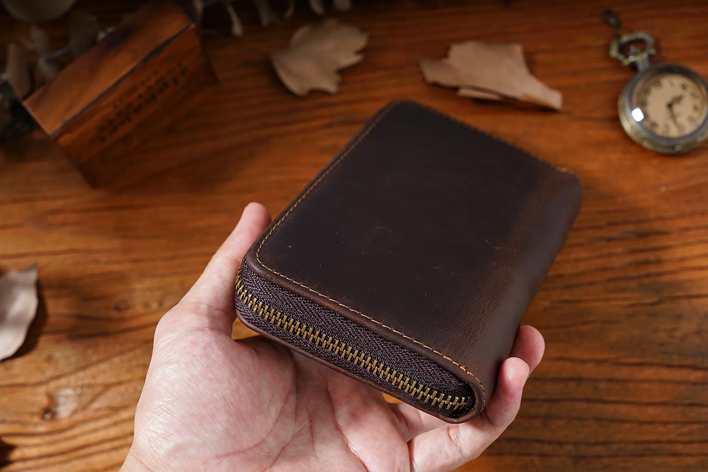 • Made from the crazy horse leather, which is soft and durable, and will produce a patina effect and become more charming over time.