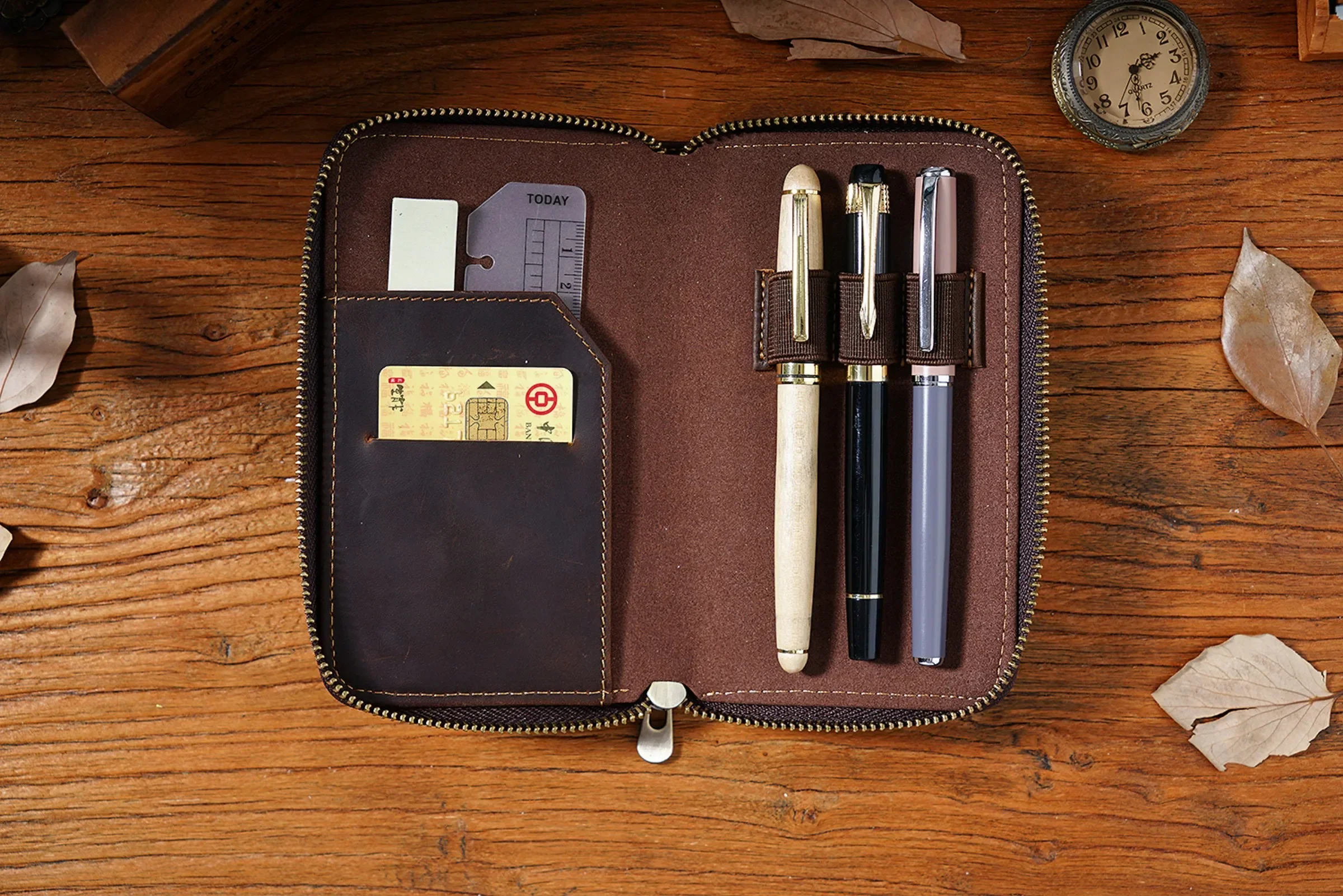 Leder Stifteetui mit Reißverschluss – Multifunktionale Organizer-Tasche mit Kartenfach für Füllfederhalter & Business-Schreibwaren