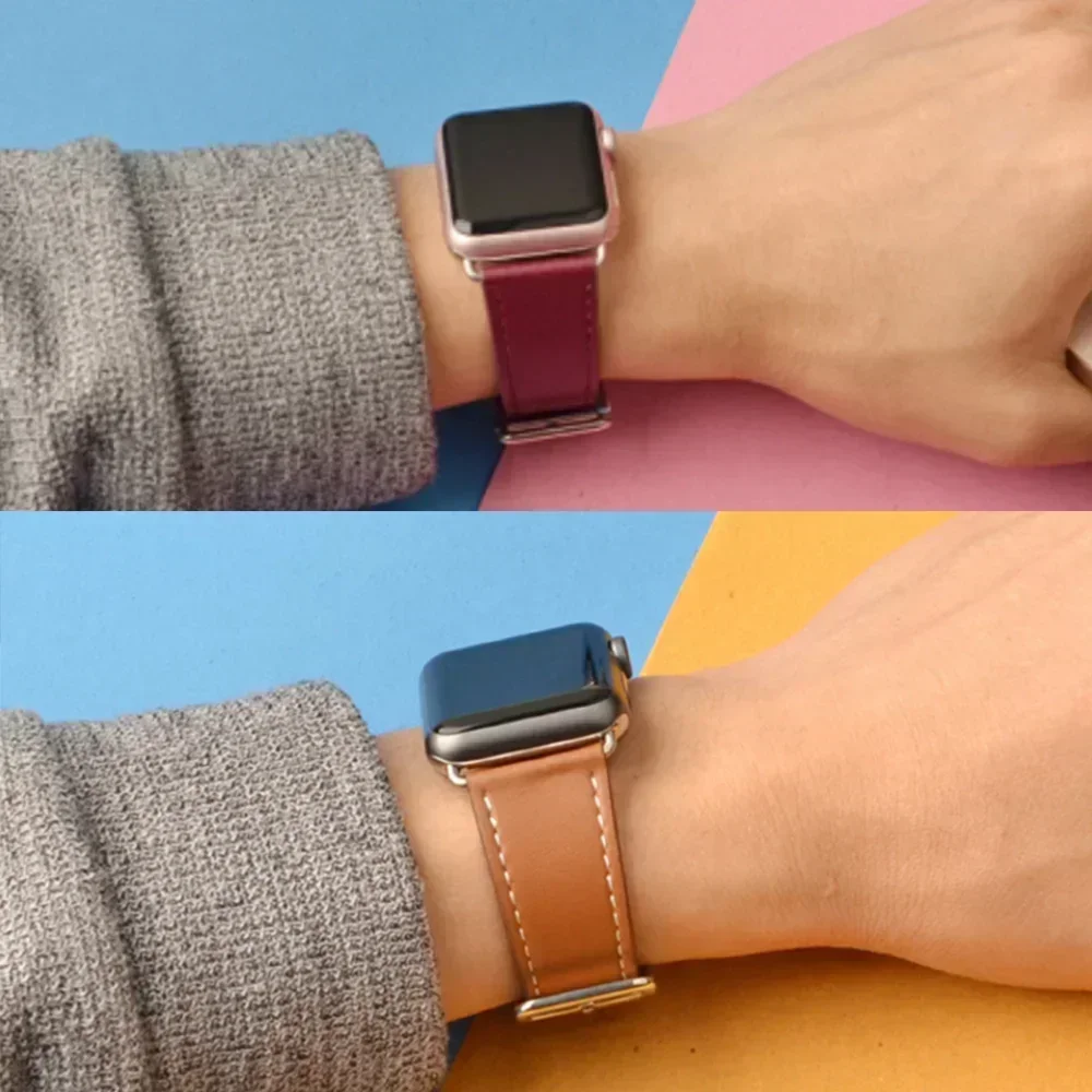 Das Apple Watch Armband besteht aus sorgfältig verarbeitetem Leder mit angenehmer Haptik. Es liegt weich am Handgelenk an, ist atmungsaktiv und bietet auch bei längerem Tragen einen hohen Komfort. Die robuste Verarbeitung sorgt für Langlebigkeit und einen sicheren Sitz – perfekt für Alltag, Büro und Freizeit.