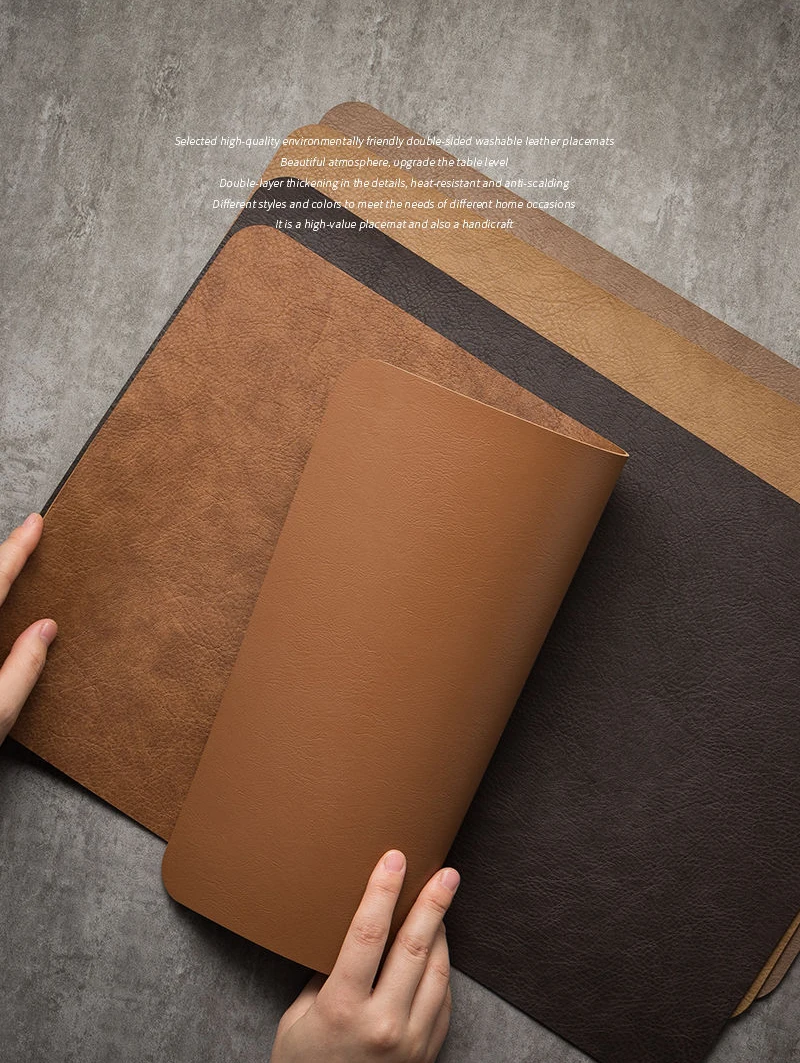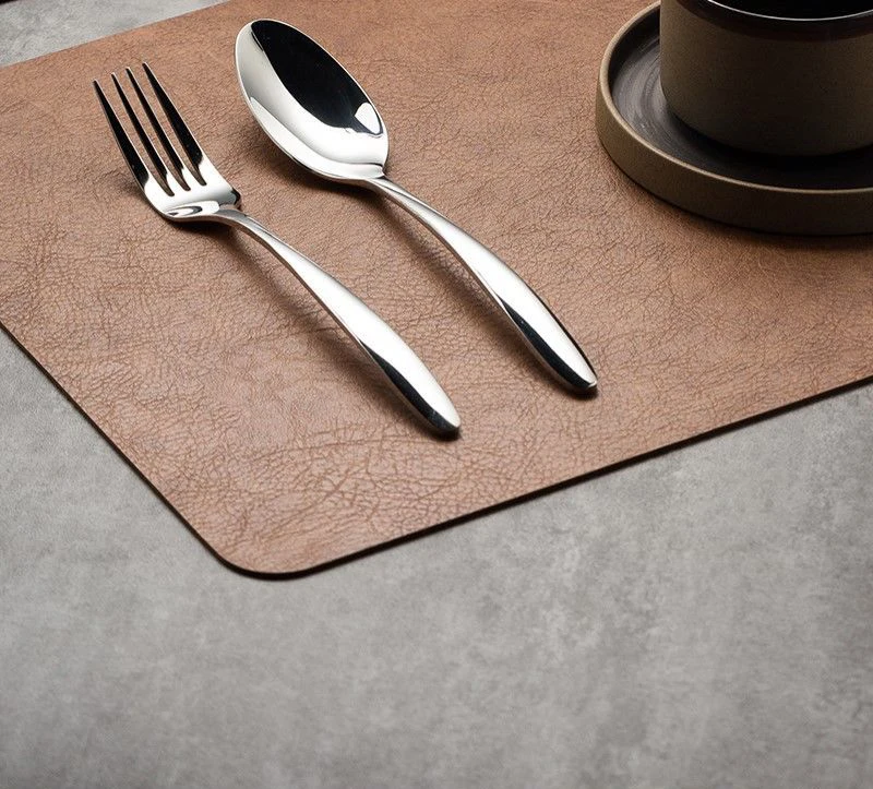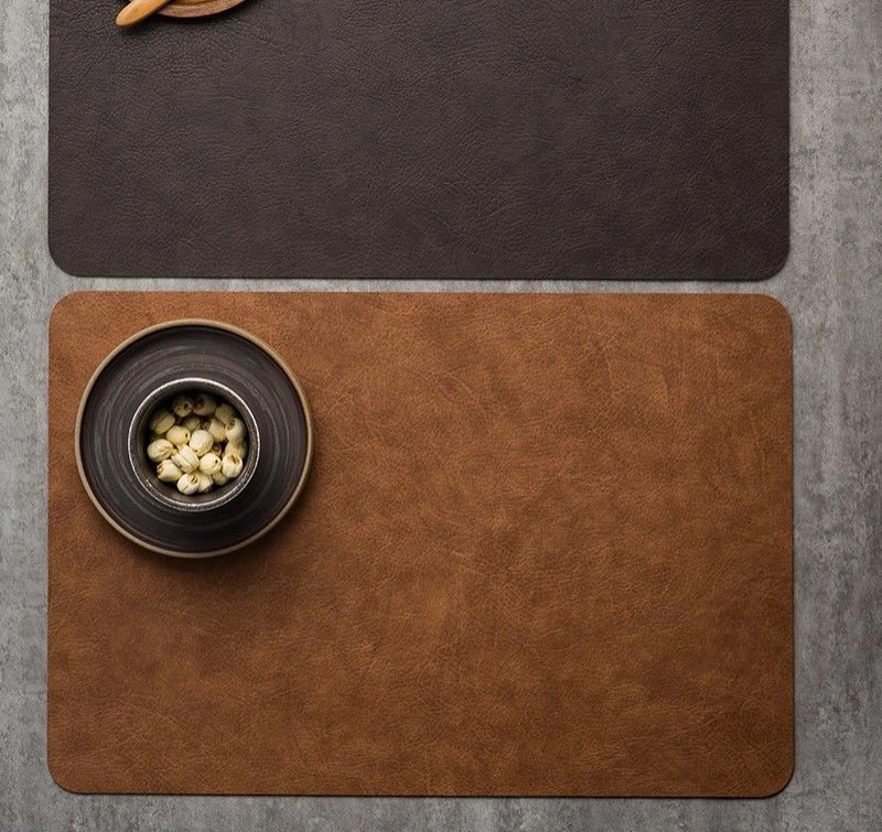 Light Luxury Leder-Tischset Coffee Brown – Wasserdichte, ölbeständige & hitzeisolierende Platzmatte aus Kunstleder im japanischen Stil (44,5 × 30 cm)