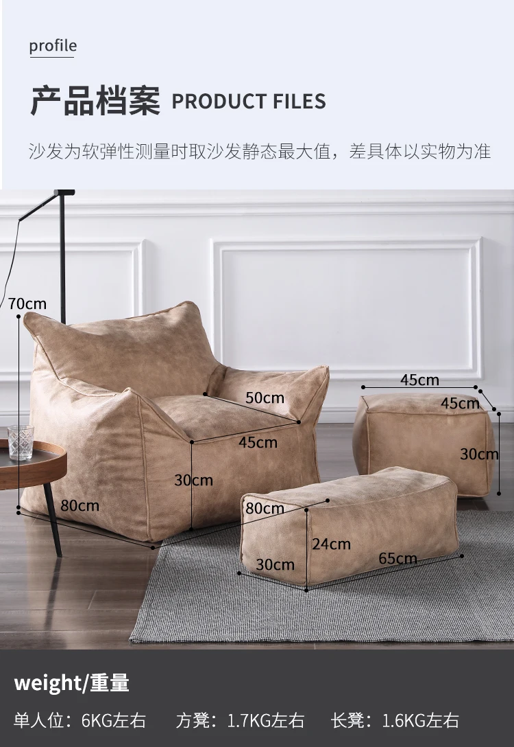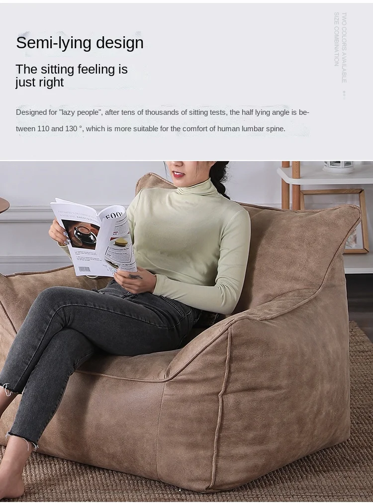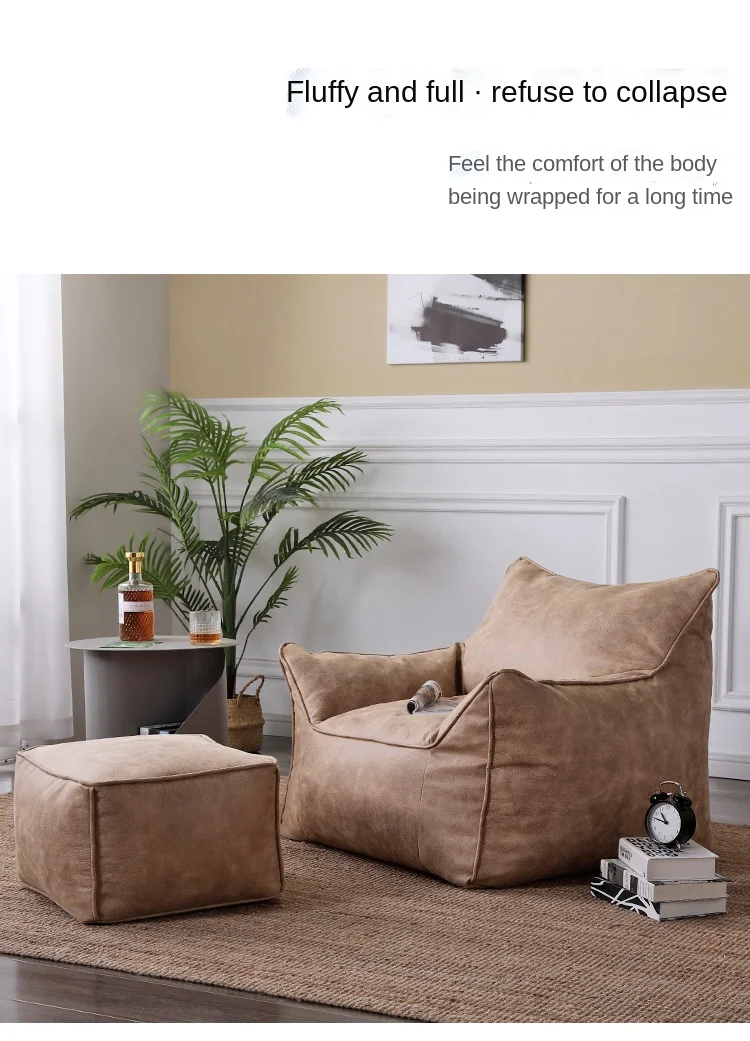 Luxuriöser Lazy Sofa Bean Bag Bezug aus Faux-Wildleder – Single Sitzsack-Hülle ohne Füllung für Wohnzimmer & Leseecke