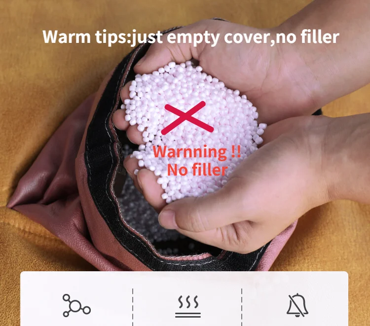 Dieser Artikel wird ohne Füllmaterial geliefert und bietet Ihnen maximale Flexibilität. Empfohlen wird eine Befüllung mit EPS- oder EPP-Perlen, Schaumstoff oder PP-Baumwolle, sodass Sie den Härtegrad und Sitzkomfort ganz nach Ihren persönlichen Vorlieben bestimmen können.