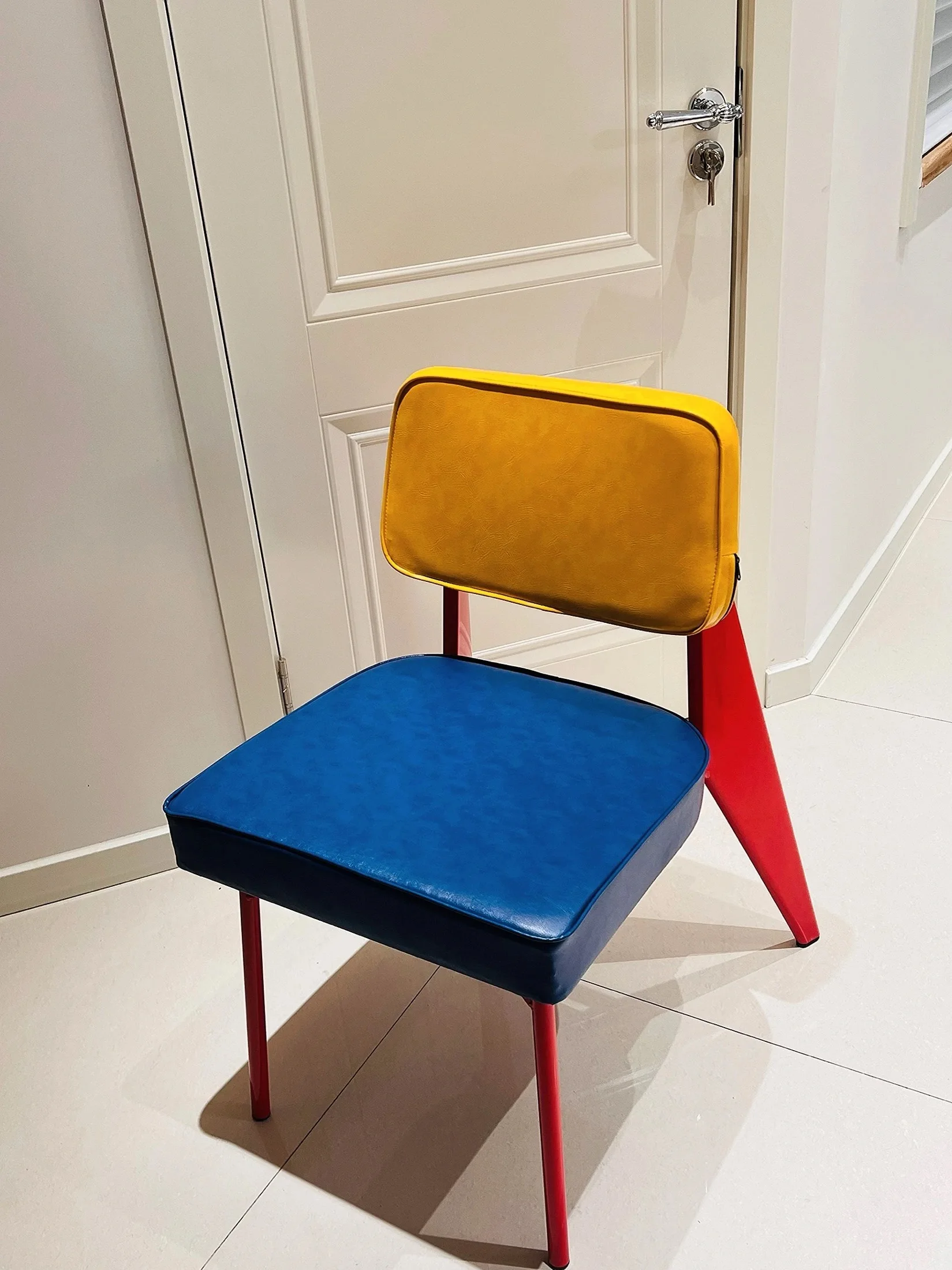 Der Mix aus Memphis-Farben, Leder und Metall macht diesen Stuhl zu einem echten Blickfang. Er passt hervorragend zu modernen, minimalistischen oder kreativen Einrichtungskonzepten und setzt gezielte Akzente in Wohn-, Ess- oder Arbeitsbereichen. Besonders beliebt ist dieses Design bei stilbewussten Kunden, die außergewöhnliche Möbel schätzen.
