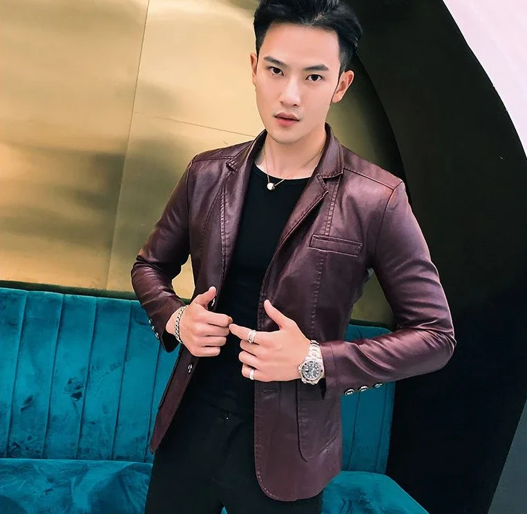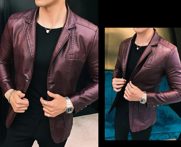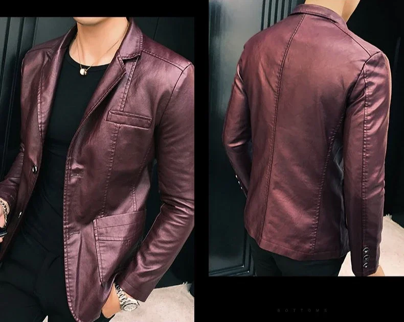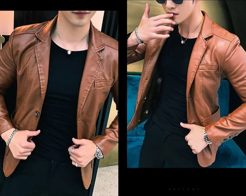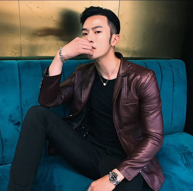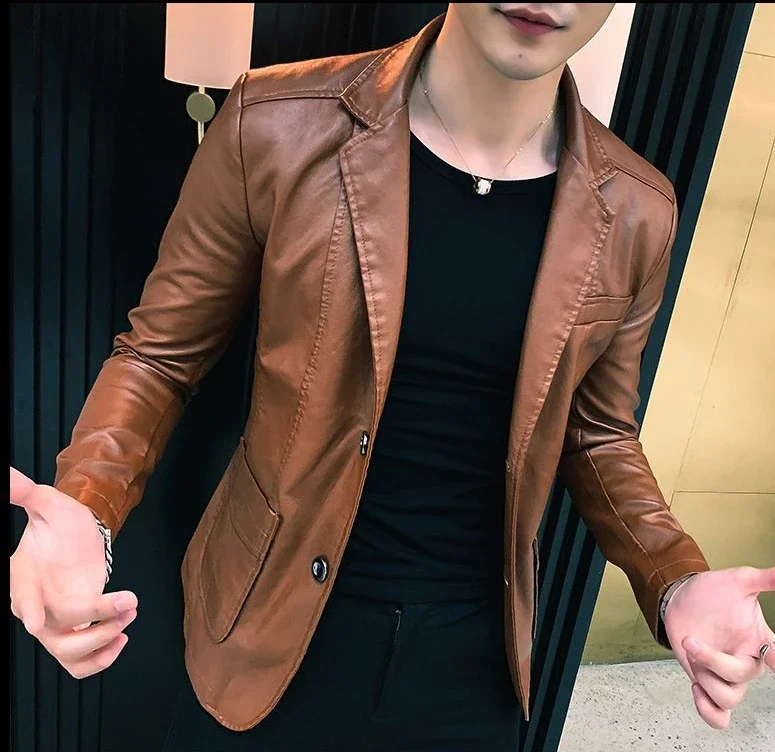 Coat Korean Style Male Leather Blazer Single Breasted Spring Clothes Men's Suit Jackets Luxury Designer High Quality Simple New