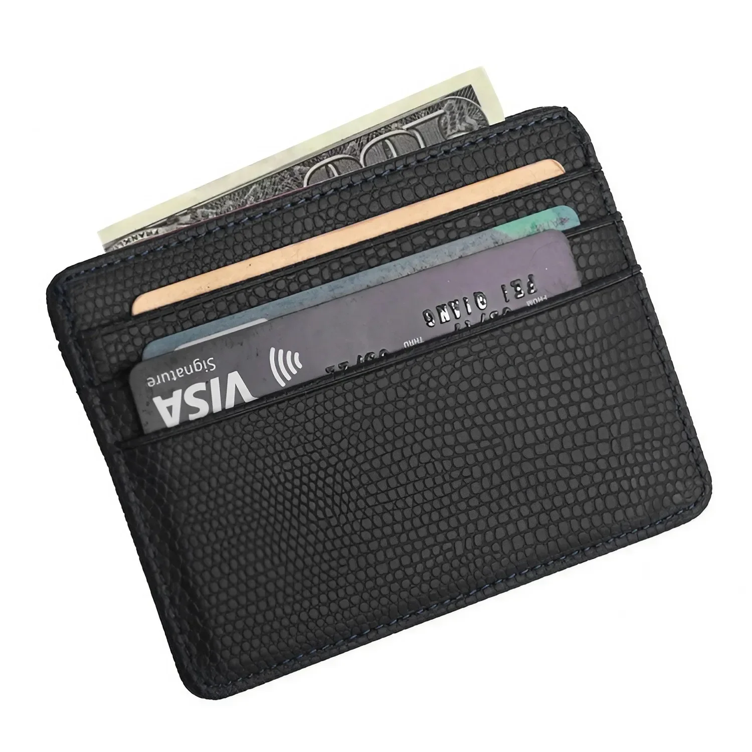 Mini Reise Kartenetui aus PU-Leder – Kompakte Geldbörse mit Echsenprägung, Sichtfenster & Reißverschluss für Damen & Herren