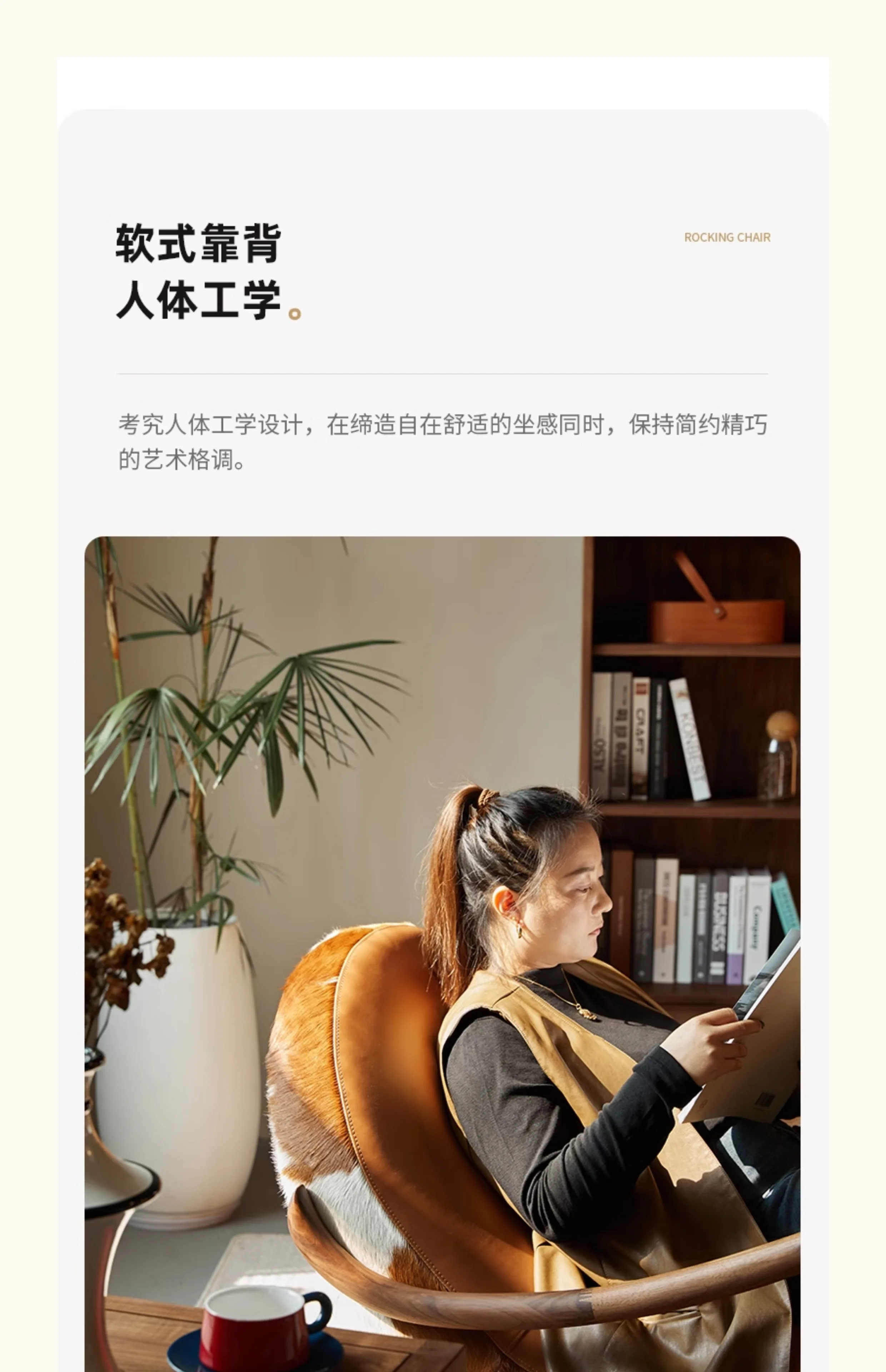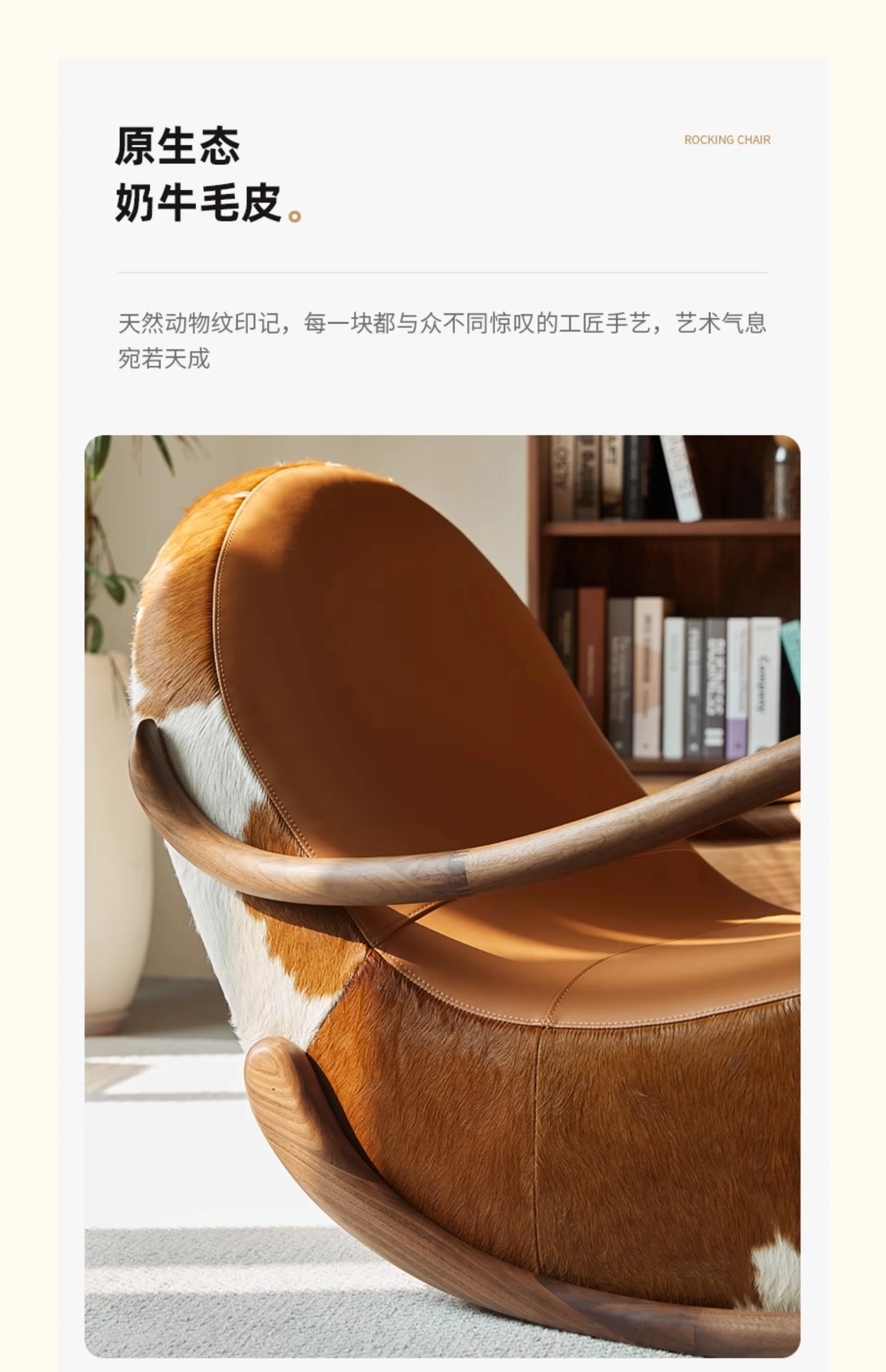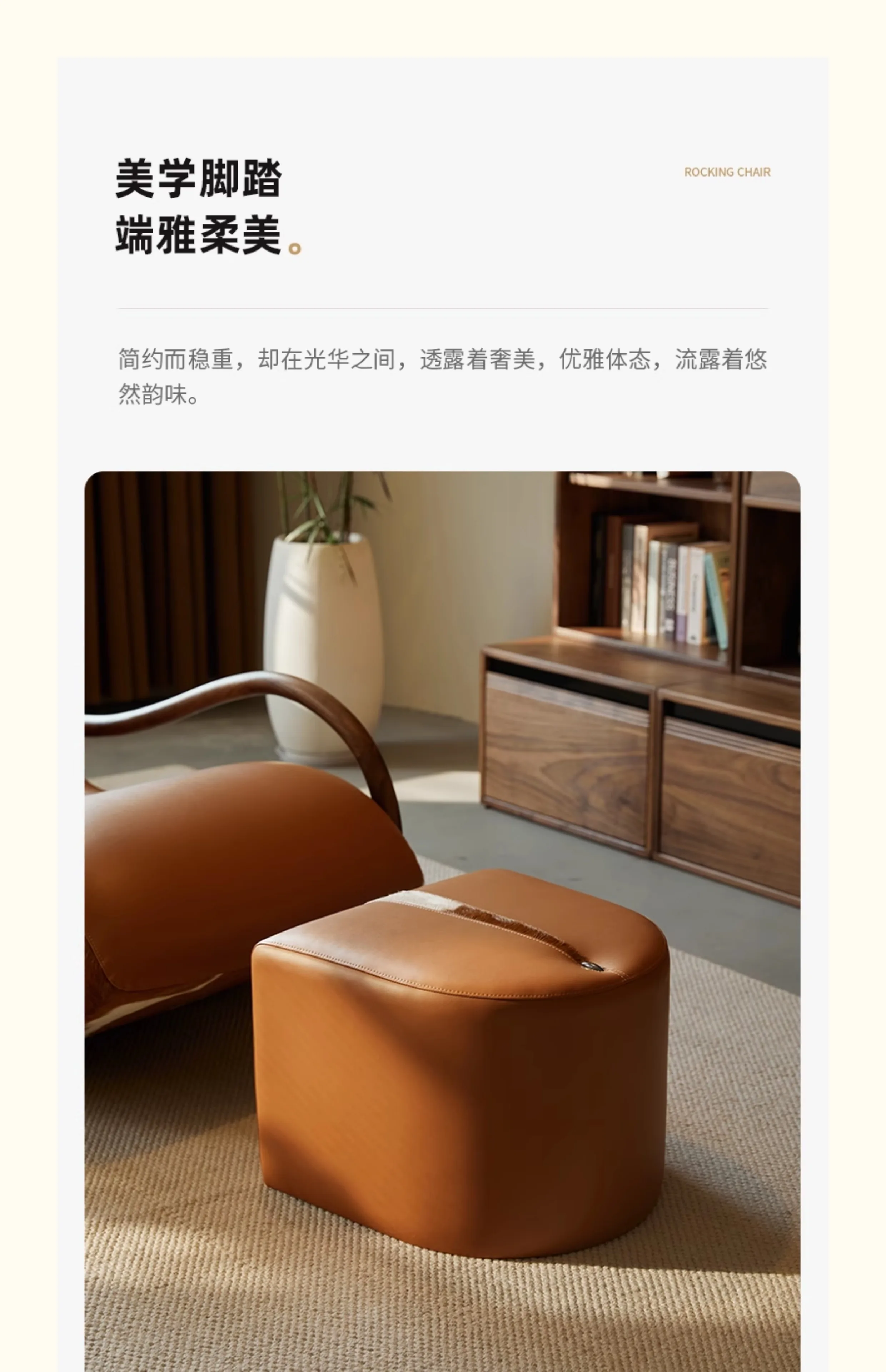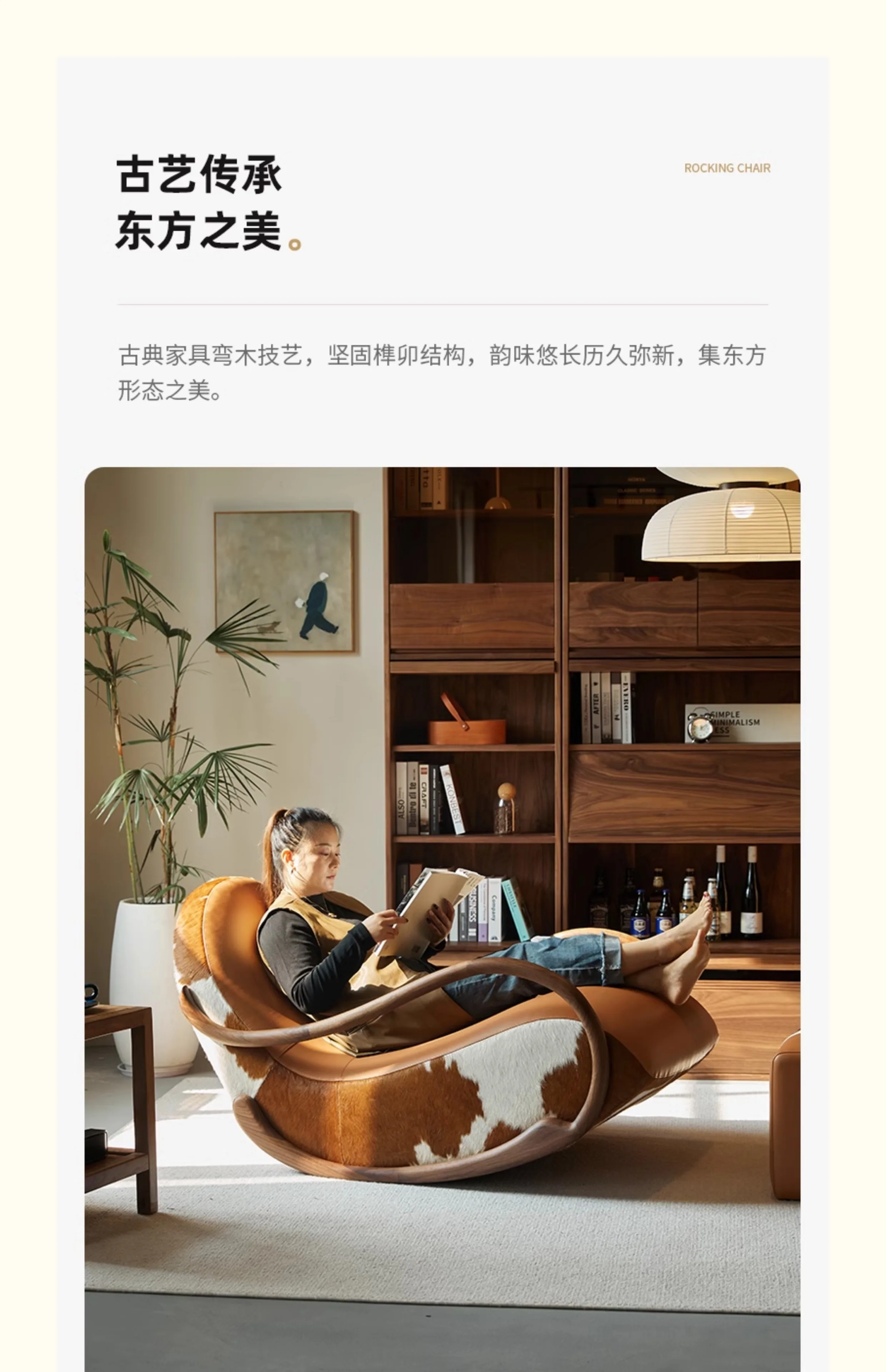 Dieser exklusive Schaukel-Relaxsessel aus schwarzem Walnussholz steht für modernes Wohnen auf höchstem Niveau. Inspiriert vom italienischen Design und nordischer Klarheit vereint der Stuhl natürliche Materialien, klare Linien und luxuriösen Komfort. Als stilvoller Blickfang passt er perfekt in hochwertige Wohnräume, elegante Schlafzimmer oder ruhige Balkon- und Leseecken.