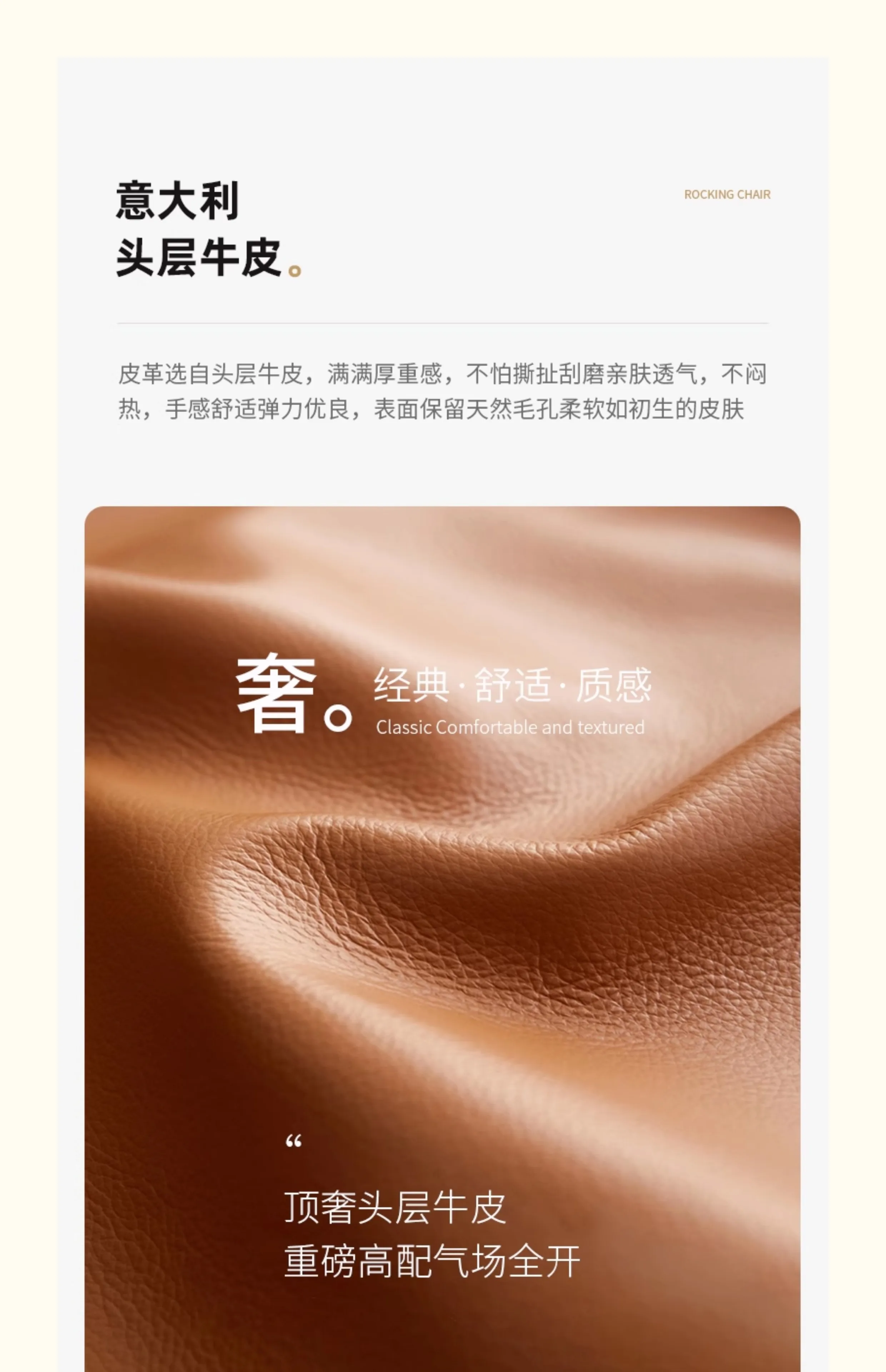 Der Lederschaukelstuhl wird komplett montiert geliefert und ist sofort einsatzbereit. Kein Werkzeug, keine Montage – einfach platzieren und entspannen. Der stabile Stand und die hochwertige Konstruktion garantieren Sicherheit und Komfort im täglichen Gebrauch.