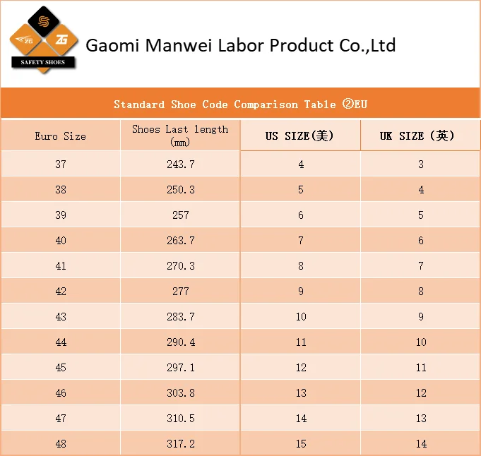 Bitte messen Sie Ihre Fußlänge und wählen Sie die passende EU-Größe anhand der Tabelle, um optimalen Komfort und Schutz zu gewährleisten.