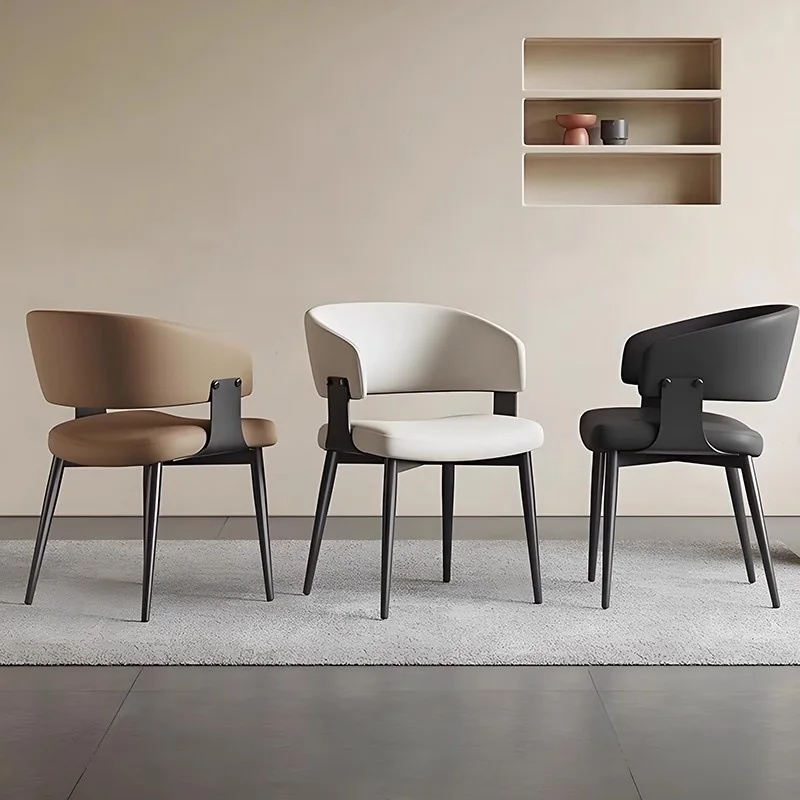Moderne Leder-Esszimmerstühle mit umlaufender Rückenlehne – Elegante Luxus-Küchenstühle mit Stahlbeinen für Wohnzimmer, Café & Restaurant