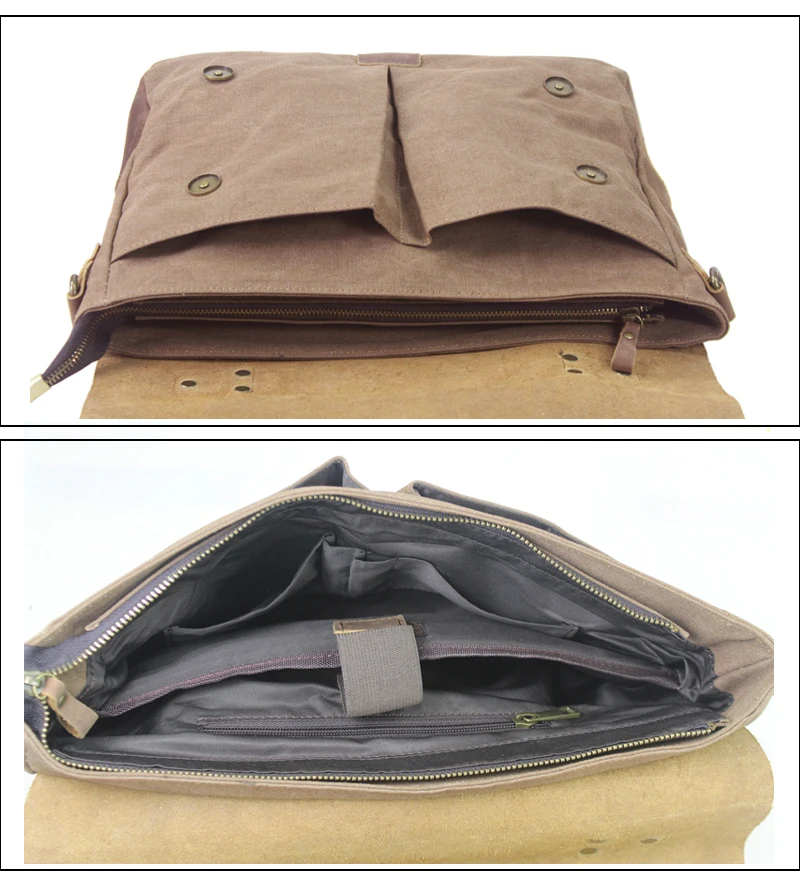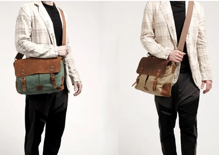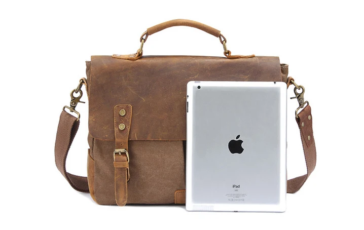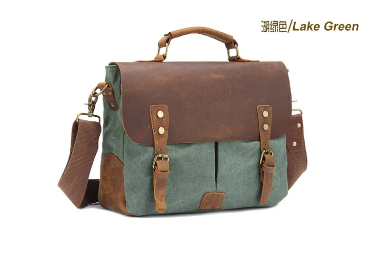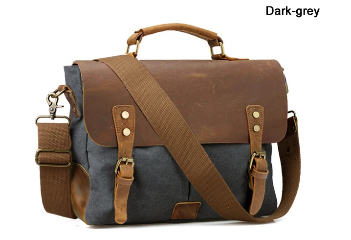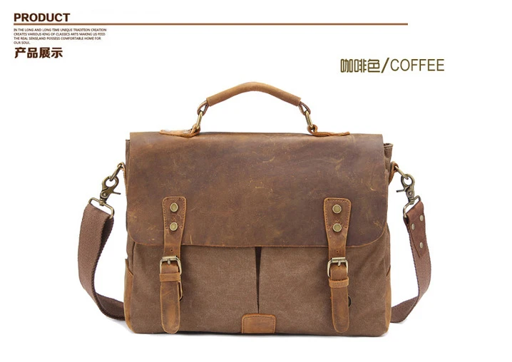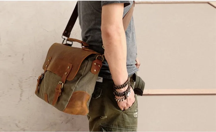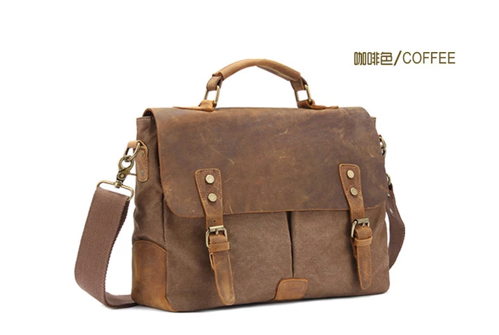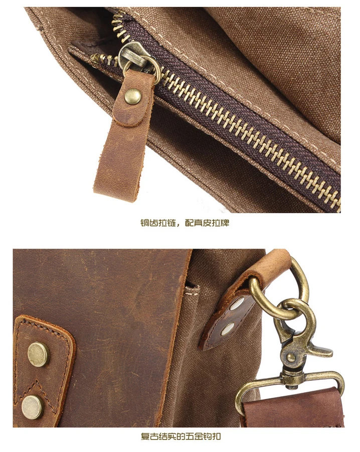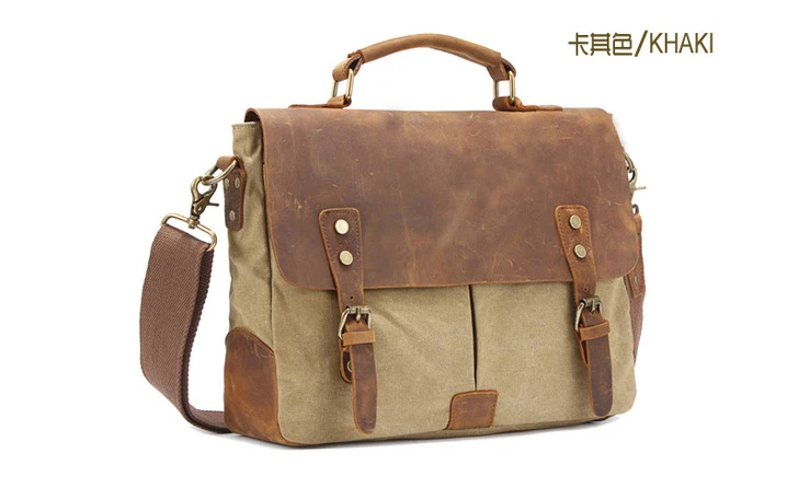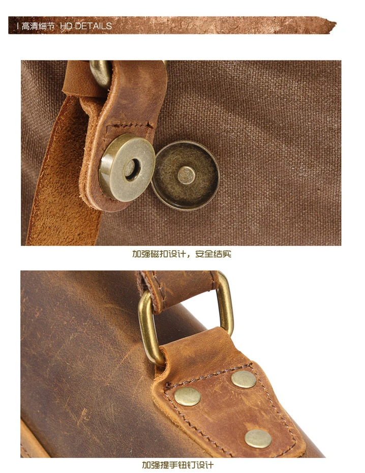 Die Kombination aus echtem Cowhide-Leder und dickem Canvas-Gewebe sorgt für eine markante Optik und hohe Strapazierfähigkeit. Das Leder verleiht der Tasche Eleganz und Stabilität, während das Canvas-Material Leichtigkeit und einen lässigen Vintage-Charakter einbringt. Diese Materialwahl macht die Aktentasche besonders widerstandsfähig und angenehm im täglichen Gebrauch.