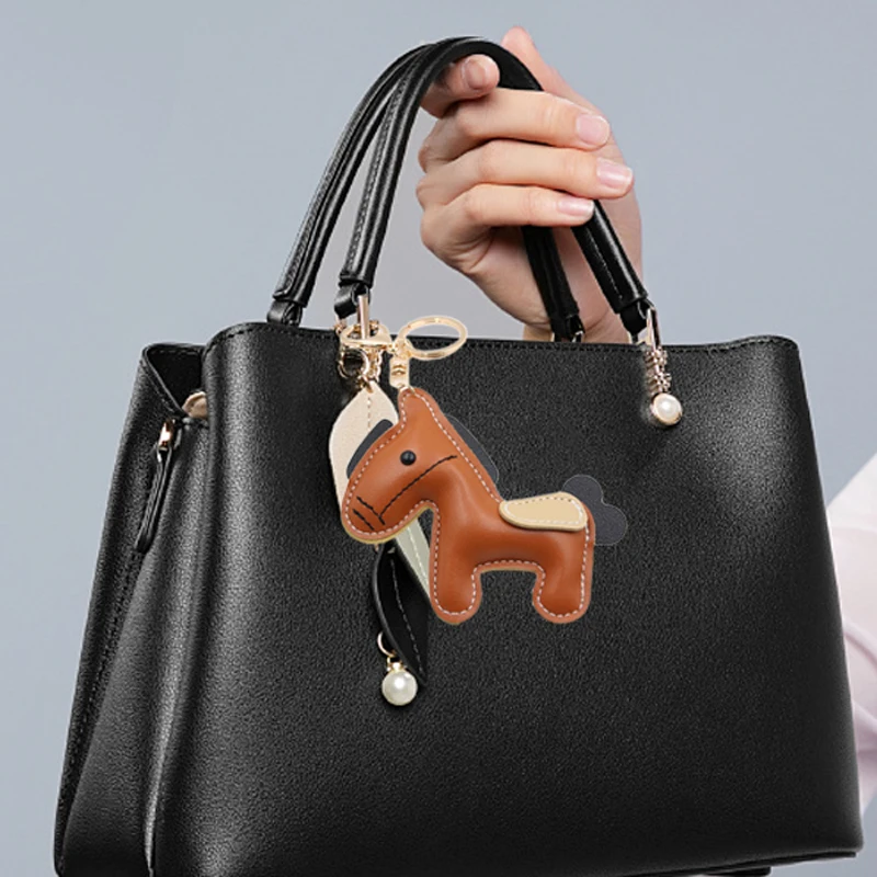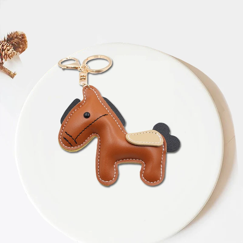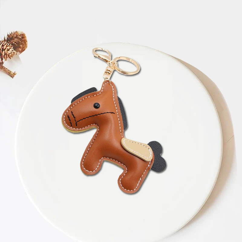 Niedlicher Pferde-Schlüsselanhänger aus PU-Leder – Cartoon Tier-Keychain als Taschen- & Autoanhänger, süßes Geschenk für Freundin, Schwester & Besties