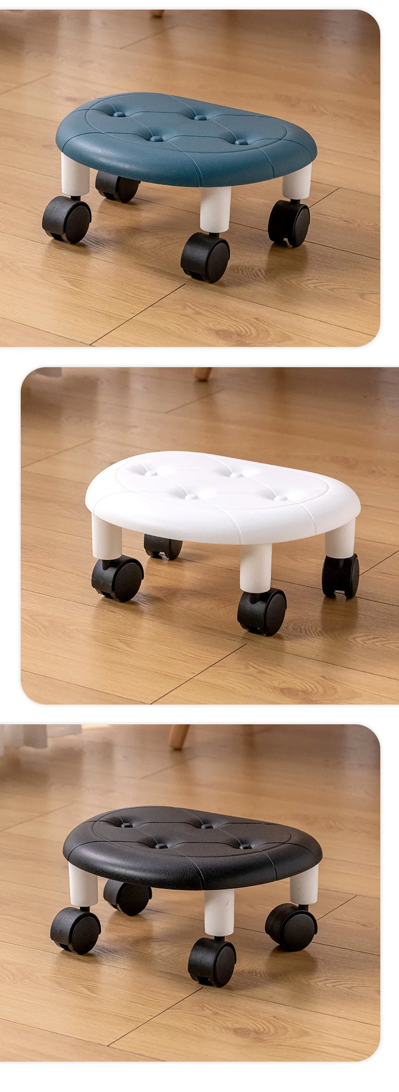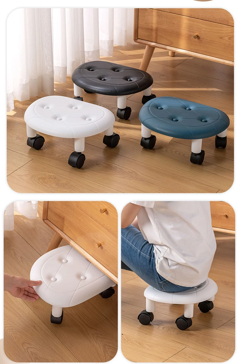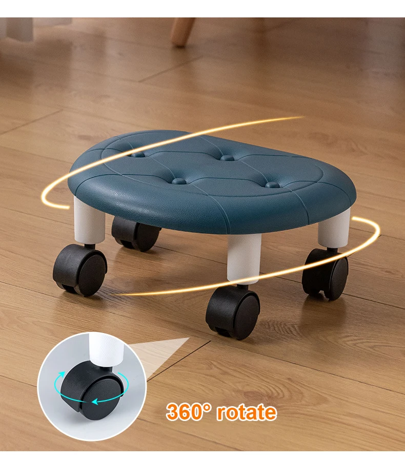 Niedriger Lederhocker mit Rollen – Runder Schuhwechselstuhl mit extra dicker Polsterung, wasserfest & mobil für ZuhauseNiedriger Lederhocker mit Rollen – Runder Schuhwechselstuhl mit extra dicker Polsterung, wasserfest & mobil für Zuhause