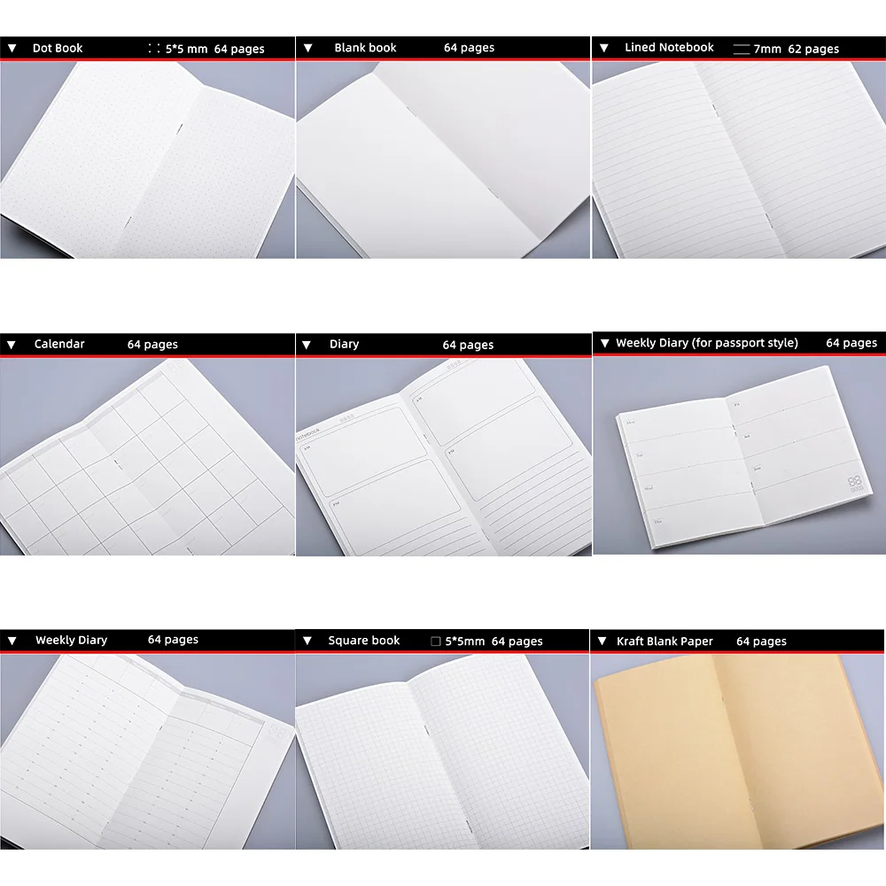 Mit insgesamt 192 Seiten bietet der Inhalt großzügigen Platz für tägliche Notizen, Zeichnungen, Bullet-Journal-Einträge oder Reisedokumentationen. Standardmäßig enthält das Set Blank-, Graph- und Lined-Papiereinlagen. Optional stehen Dot- und Kraftpapier-Refills zur Auswahl – so lässt sich das Notizbuch jederzeit erweitern und vollständig individuell gestalten.