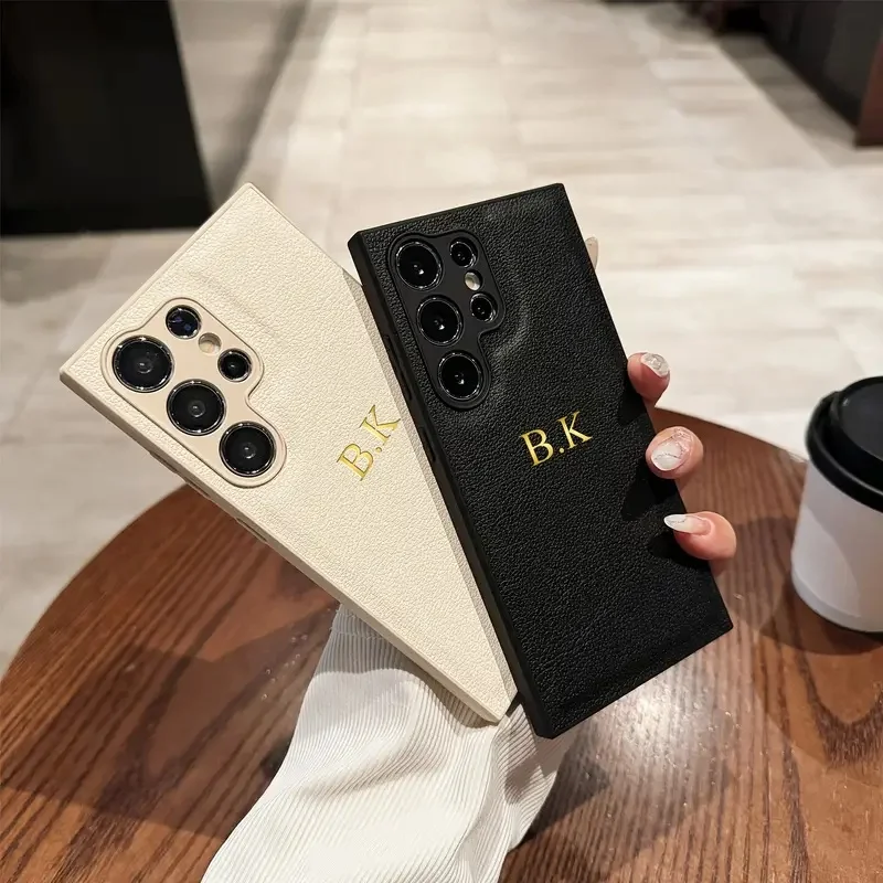 Personalisierte 3D Leder Handyhülle mit Namensgravur – Luxus Faux Leather Case für Samsung Galaxy S25 bis S20, A & FE Serie