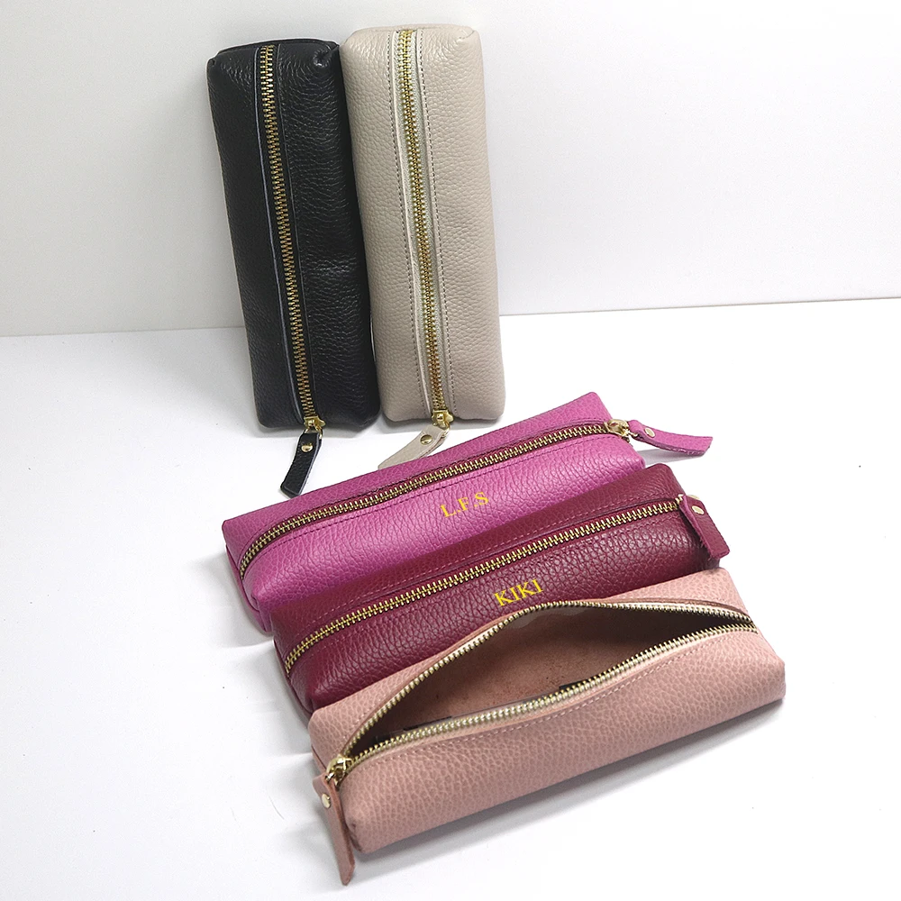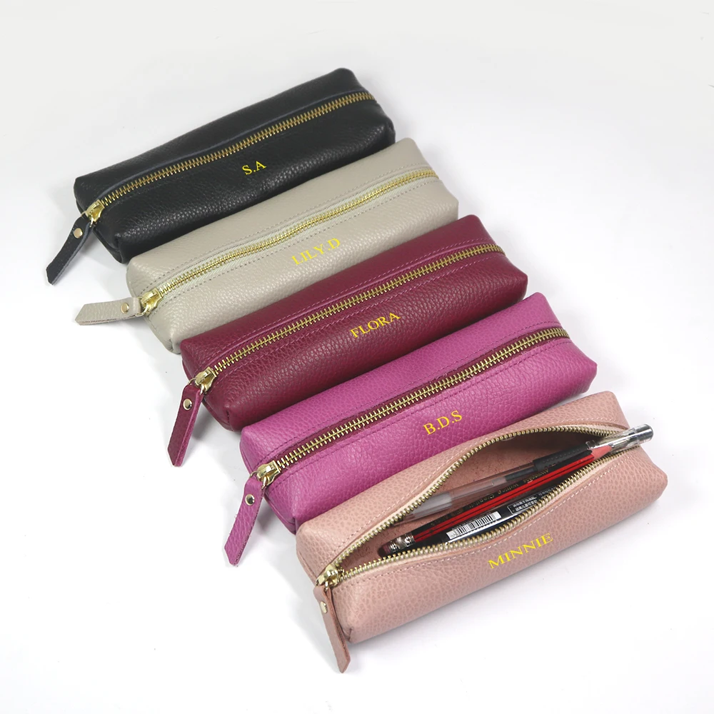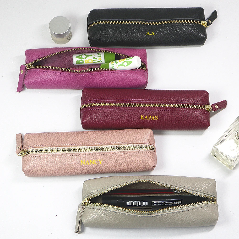Personalisierte Leder Stifteetui aus echtem Rindsleder – Wasserdichte Reißverschluss-Stifttasche mit Namensgravur