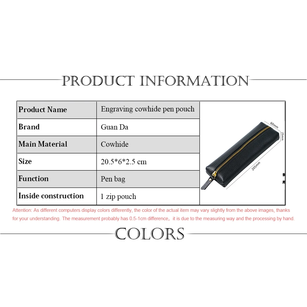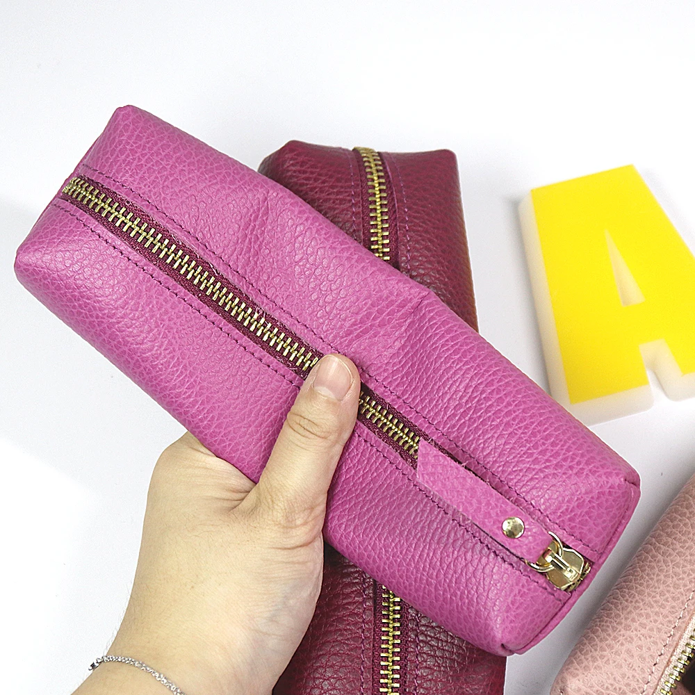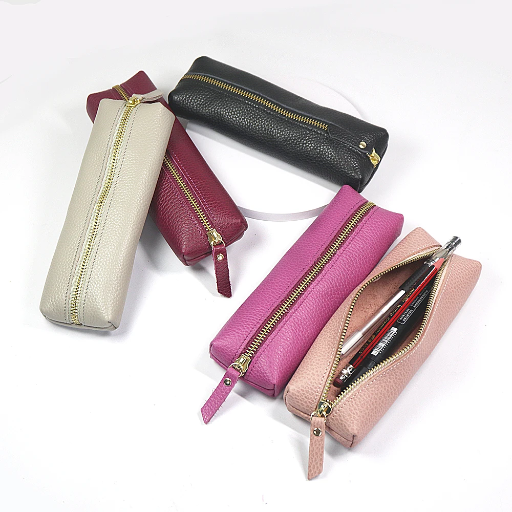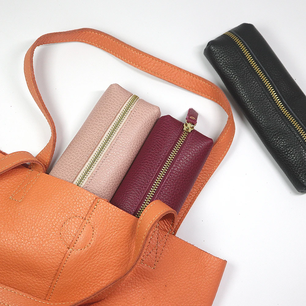 Personalisierte Leder Stifteetui aus echtem Rindsleder – Wasserdichte Reißverschluss-Stifttasche mit Namensgravur