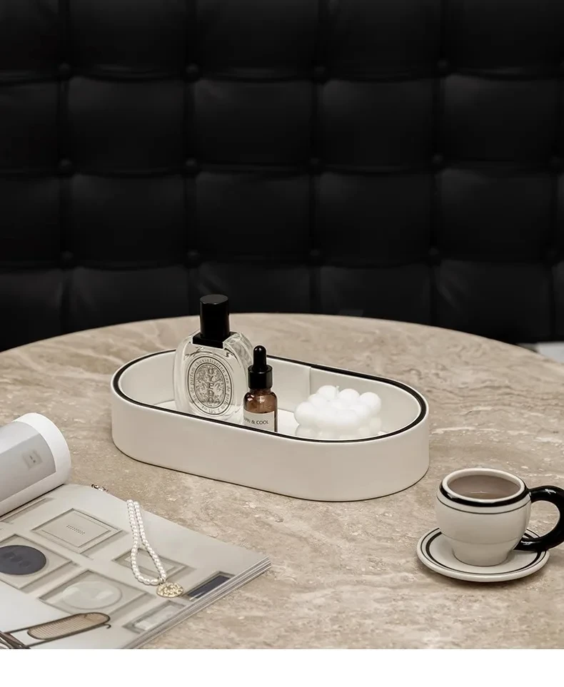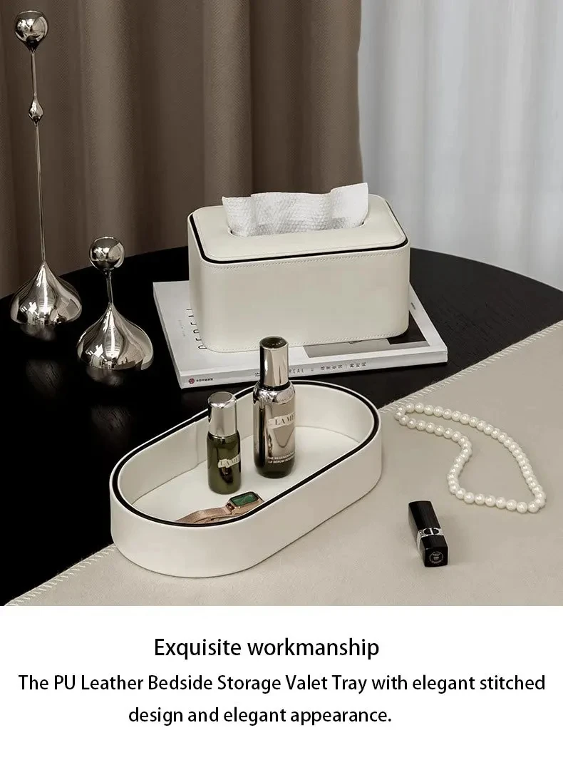 Diese elegante PU-Leder Aufbewahrungsbox mit Ablageschale ist die ideale Lösung, um Alltagsgegenstände stilvoll und griffbereit zu organisieren. Ob im Eingangsbereich, auf dem Schreibtisch, im Wohnzimmer oder auf dem Sideboard – der Organizer verbindet Funktionalität mit moderner Wohnästhetik und setzt dekorative Akzente.