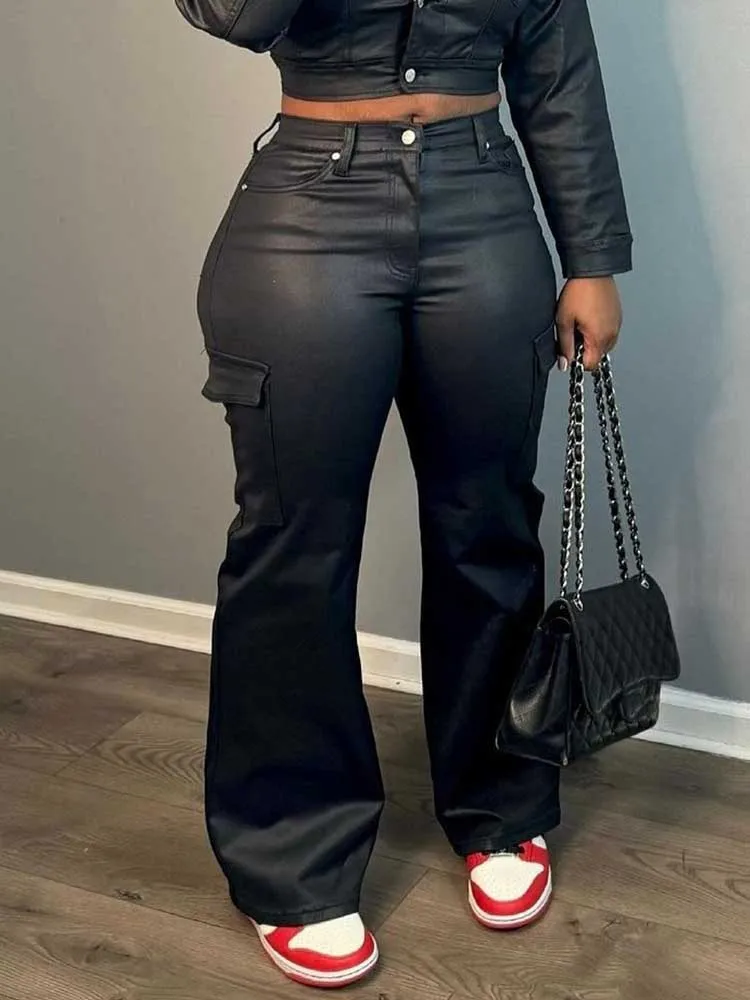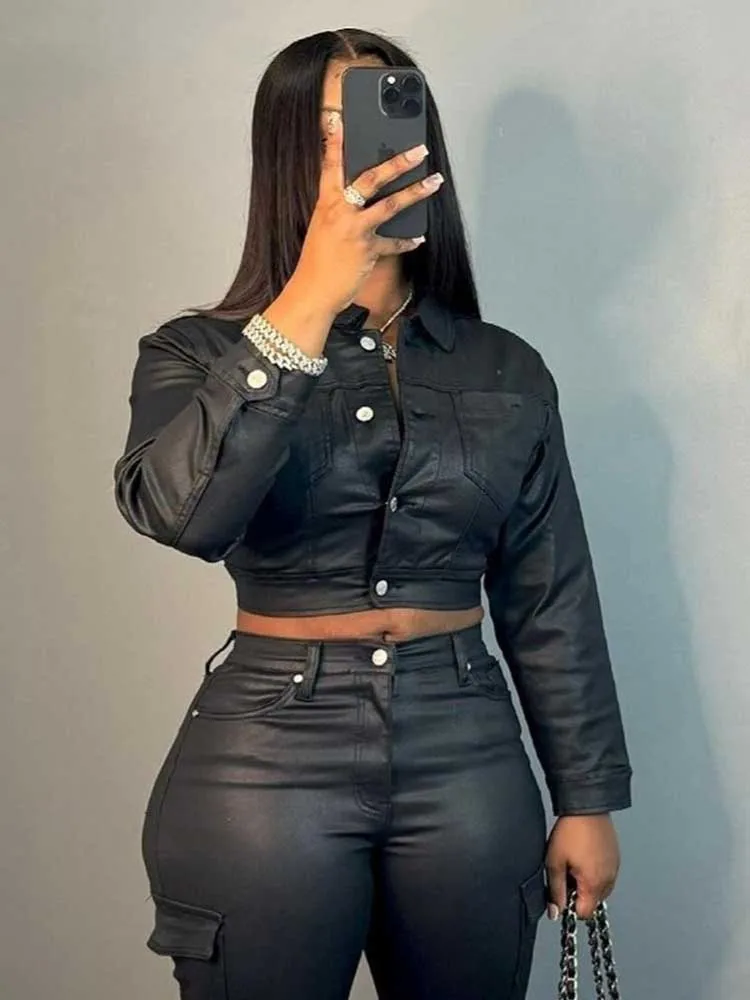 Zeitloser PU Leder Zweiteiler im minimalistischen Stil
