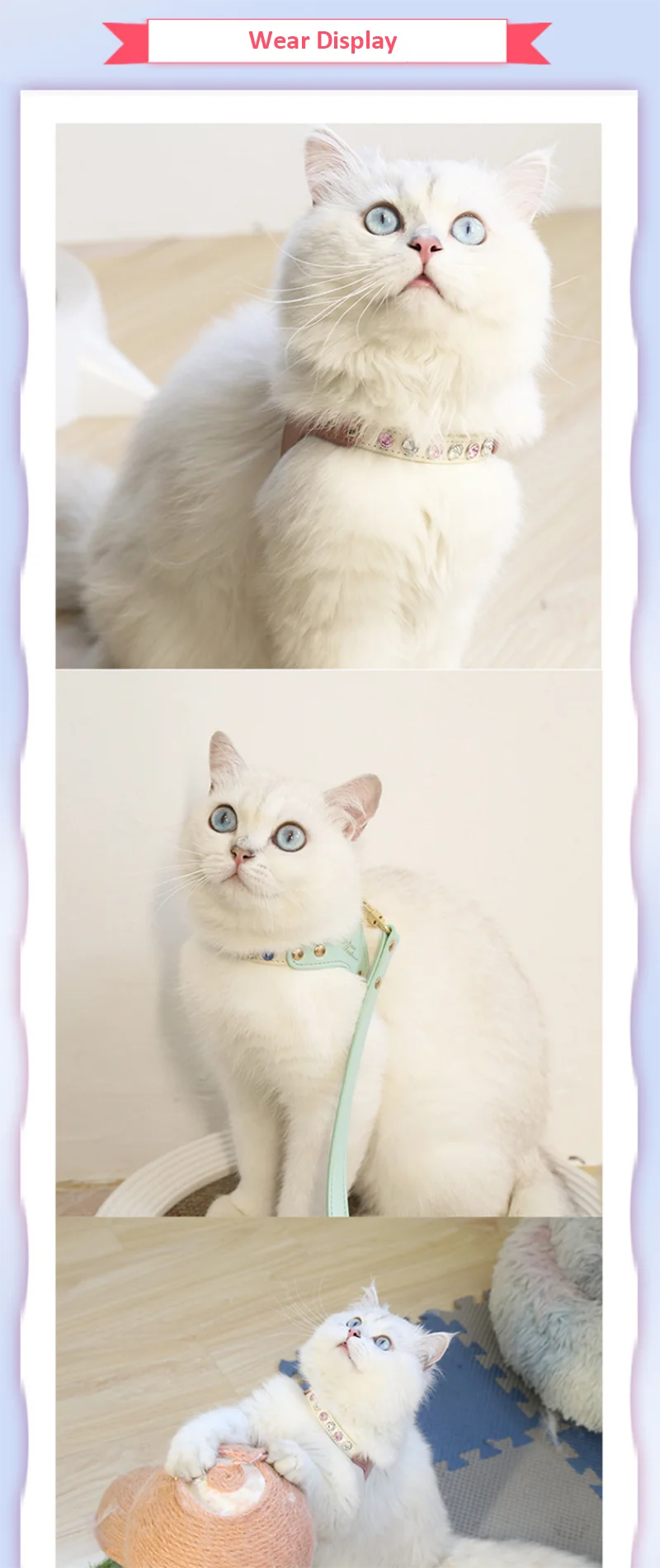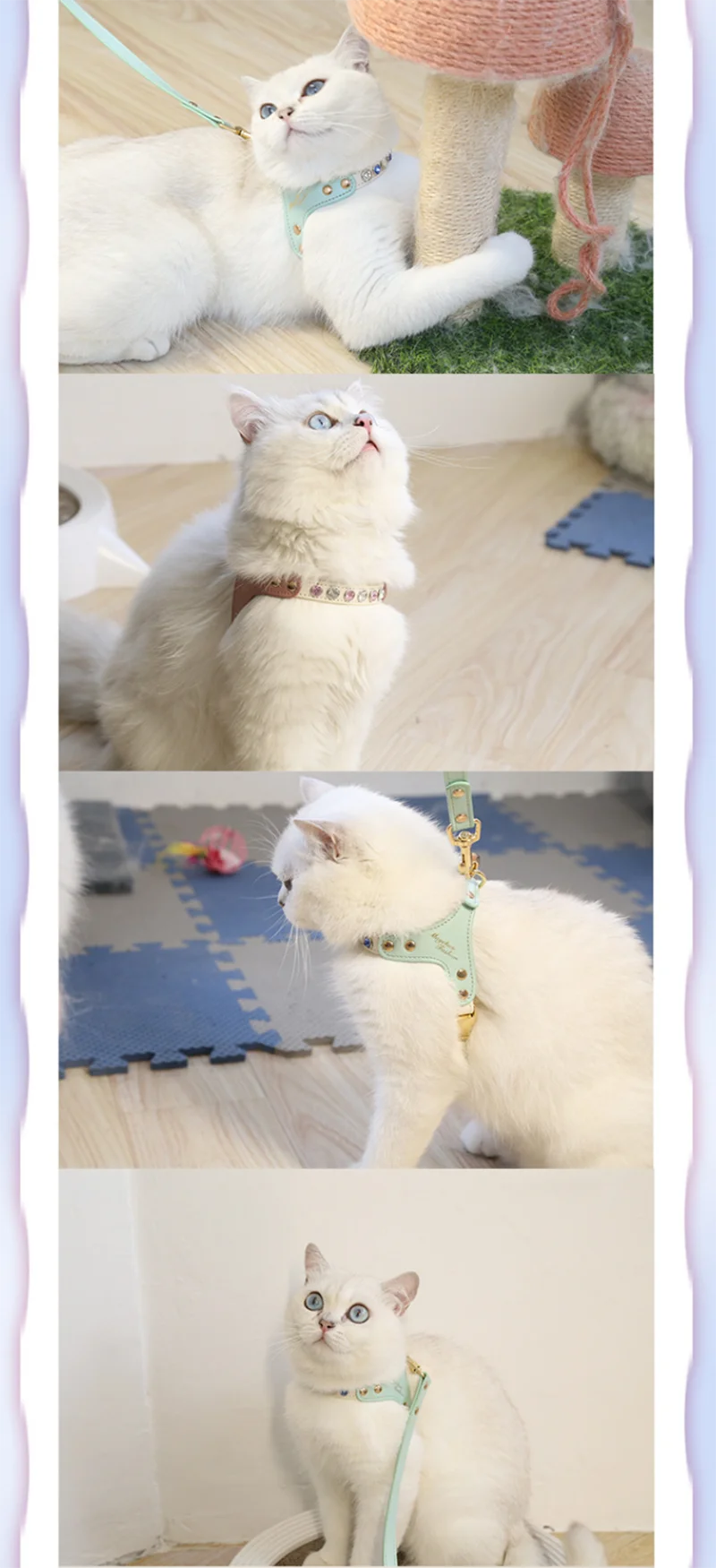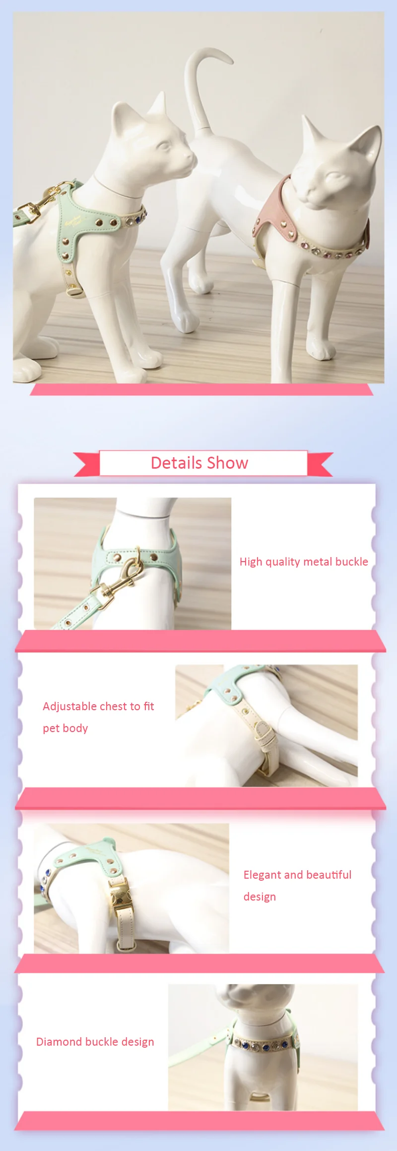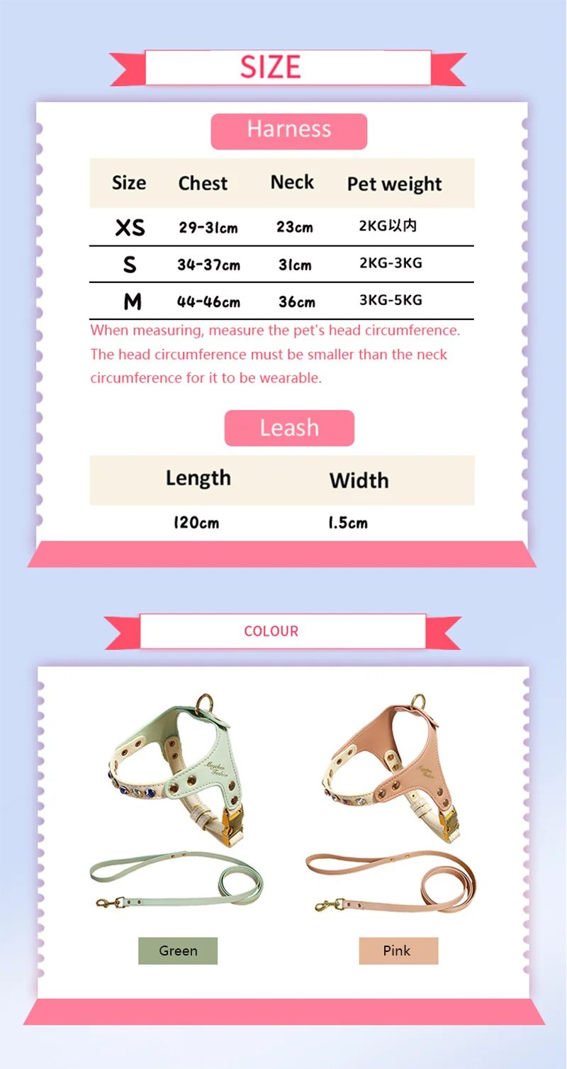PU Leder Hund & Katzen Geschirr mit Leine – Elegantes Welpen Geschirr-Set mit Ziersteinen für kleine Hunde & Katzen