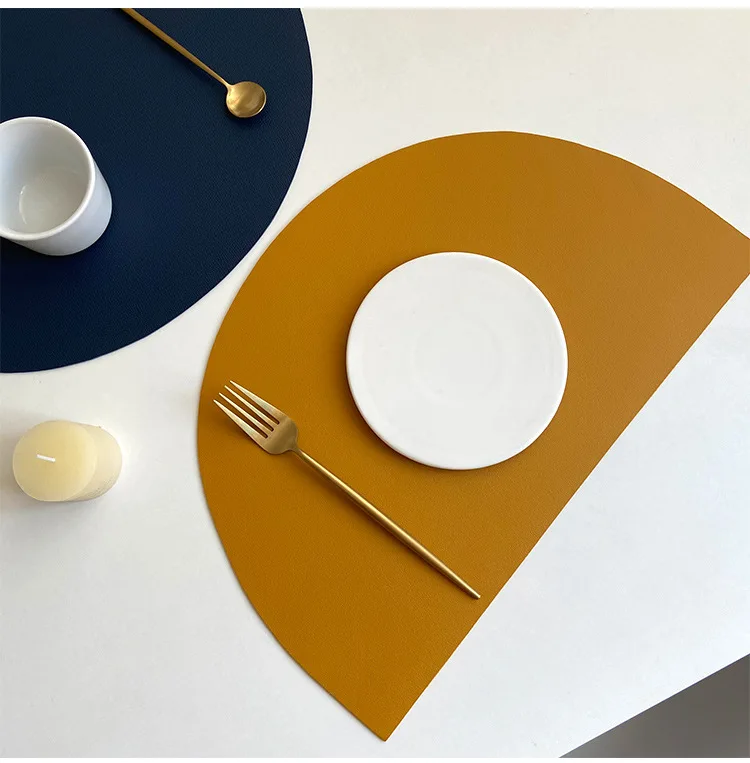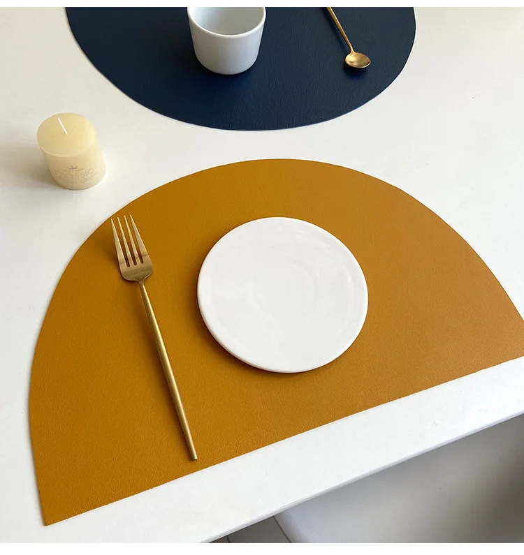 PU-Leder Tischset Halbkreis – Wasserdichte, ölbeständige & hitzeisolierende Platzmatte im europäischen Stil (42 × 28 cm)