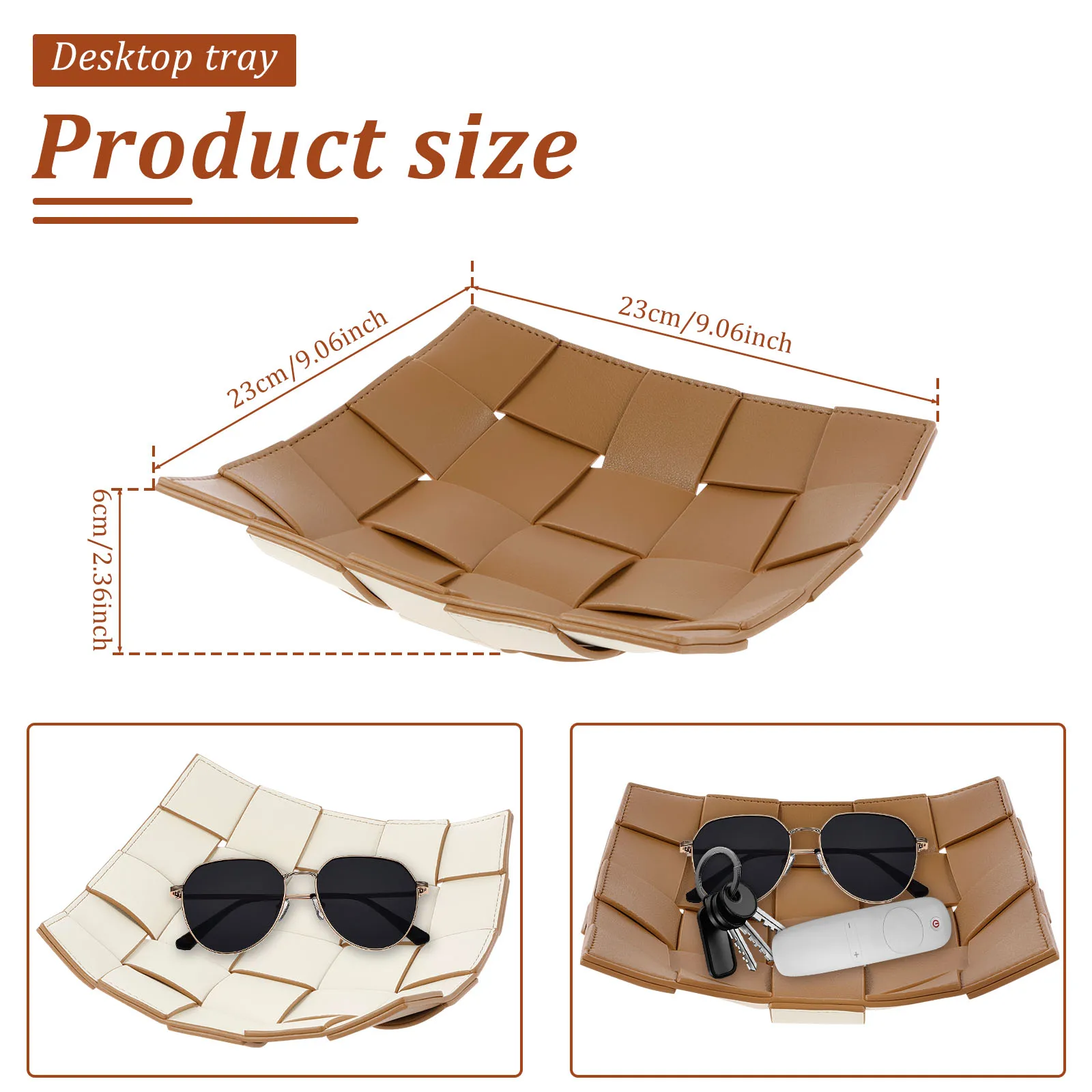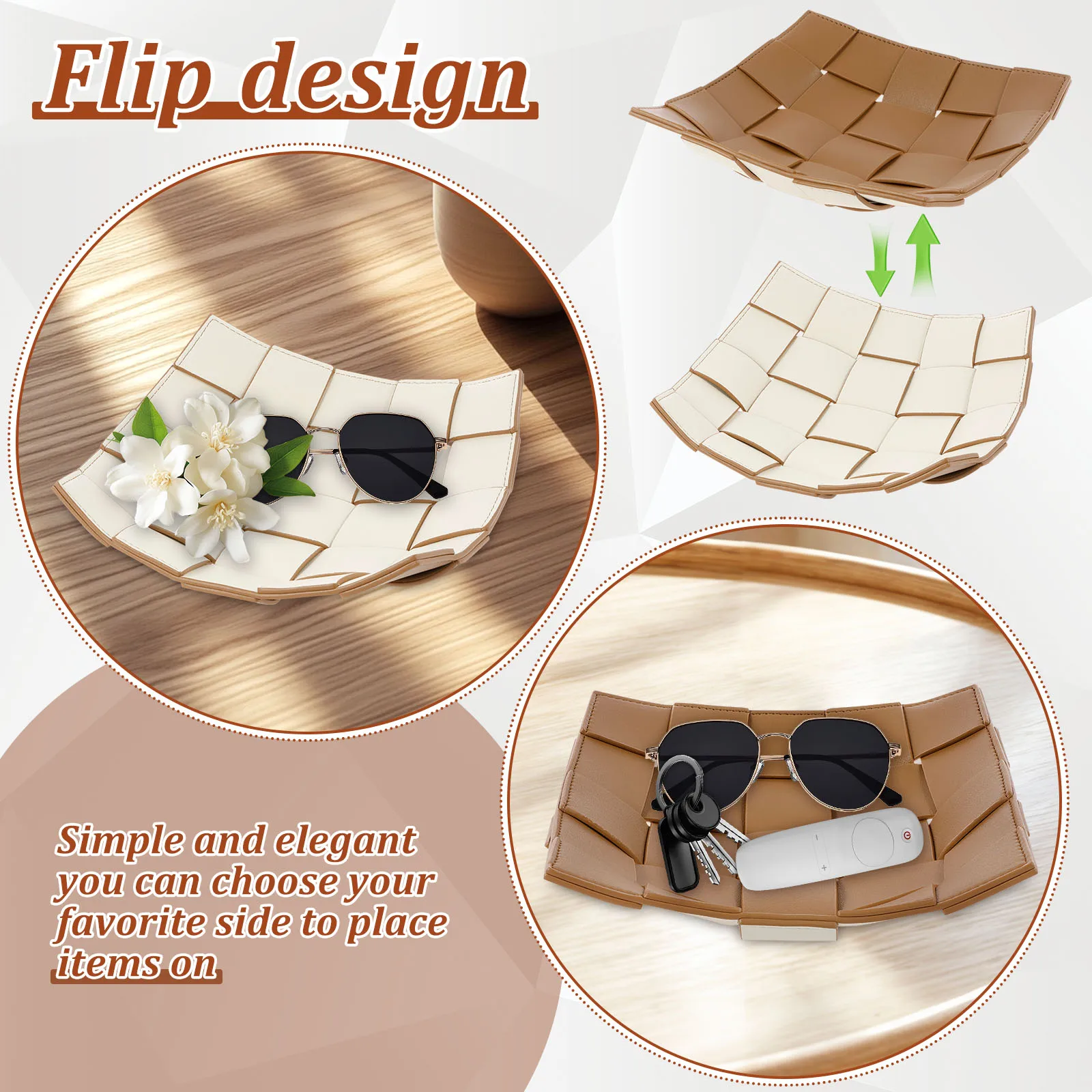 PU Leder Valet Tray mit Wende-Design – Quadratische Schlüsselablage & Desktop Organizer für Handy, Geldbörse & Münzen