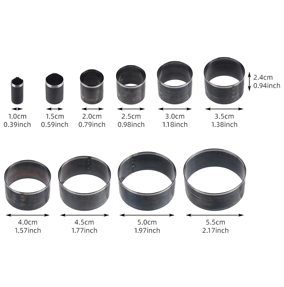 Das Set enthält 10 verschiedene Durchmesser, jeweils einmal enthalten: