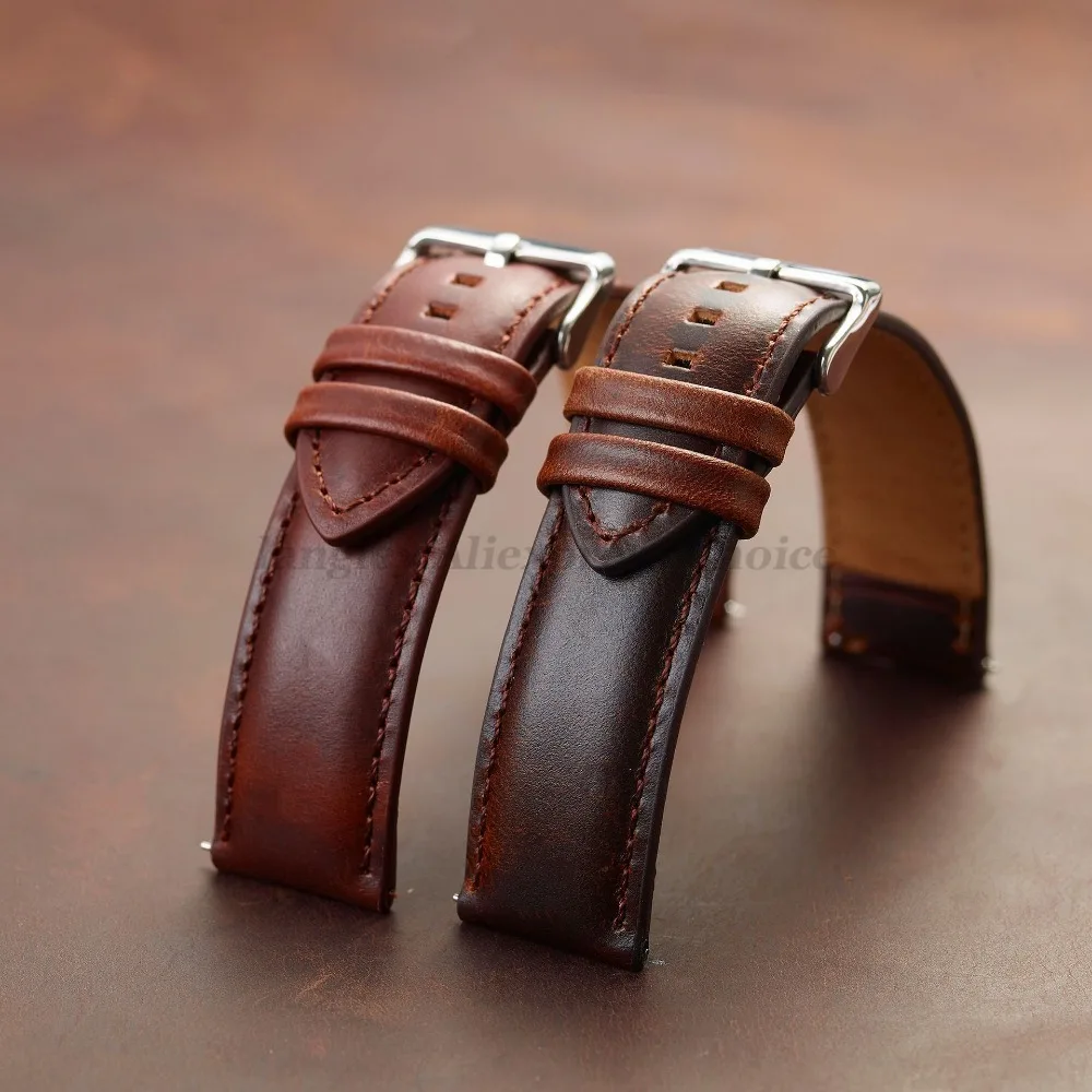 Gefertigt aus hochwertigem Rindsleder der oberen Lederschicht überzeugt dieses Uhrenarmband durch seine natürliche Struktur und angenehme Haptik. Die spezielle Oil-Wax-Veredelung sorgt für einen dezenten Farbwechsel und eine besonders edle Oberfläche mit charaktervoller Tiefe. Die Unterseite aus gebürstetem Leder erhöht den Tragekomfort und macht das Armband auch bei längerem Tragen angenehm.