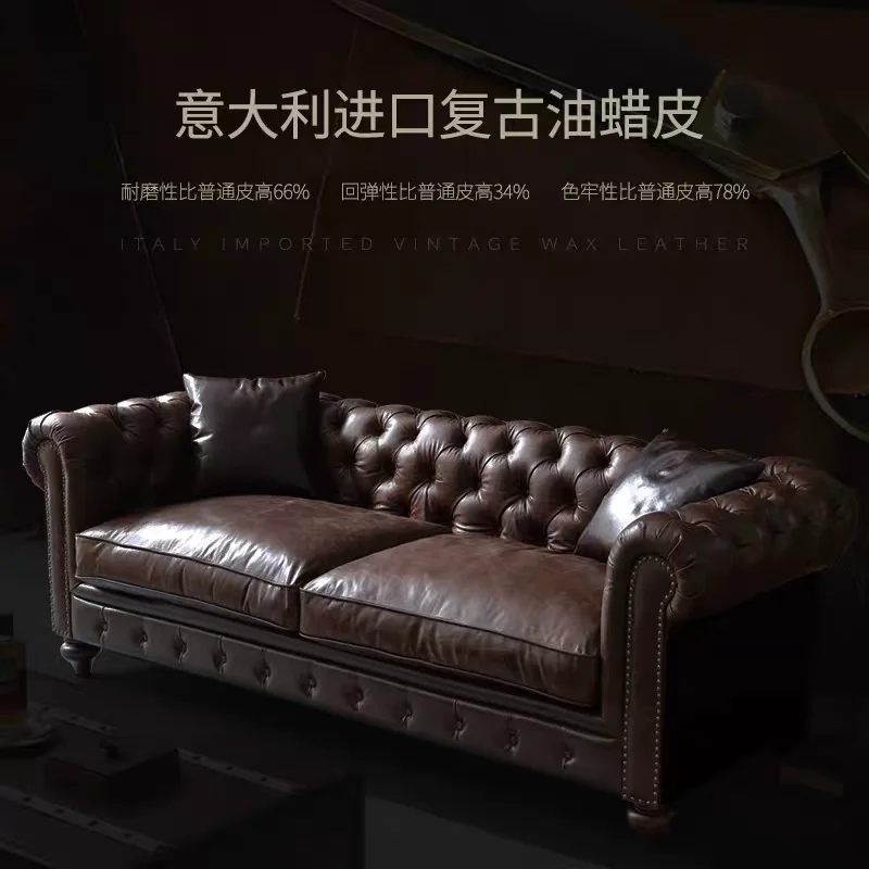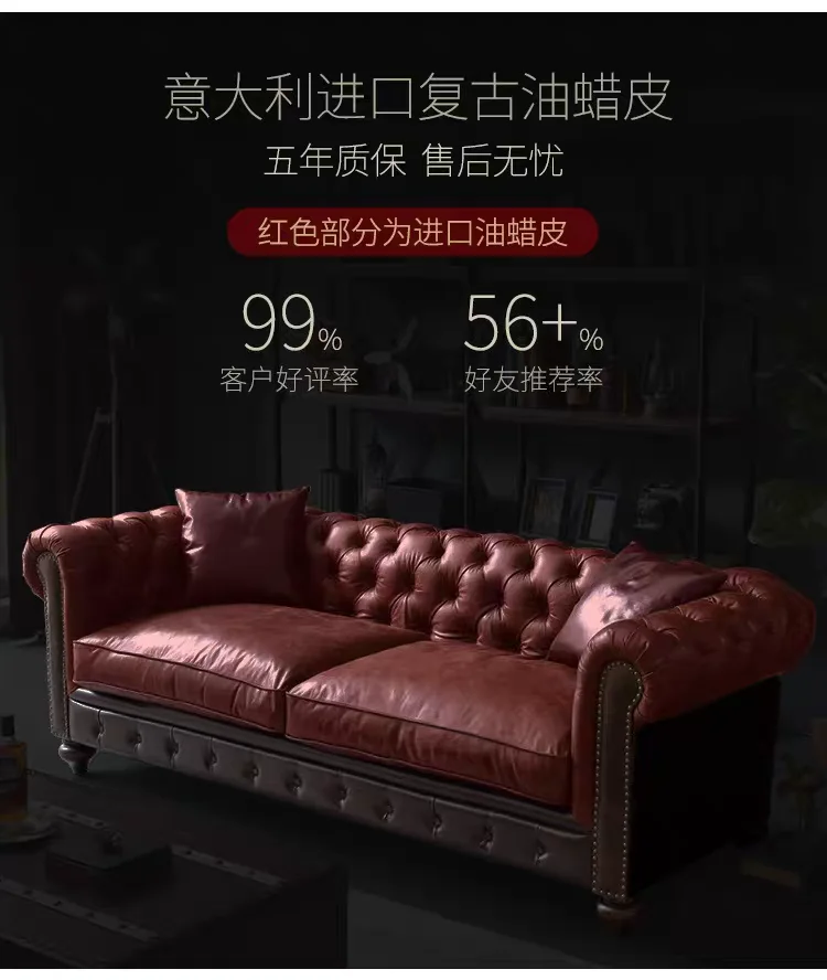 Retro Chesterfield Ledersofa mit Knopfheftung – Klassisches Mehrpersonen-Sofa aus echtem Leder im Vintage-Stil für Cigar Bar, Whiskey Lounge & Café