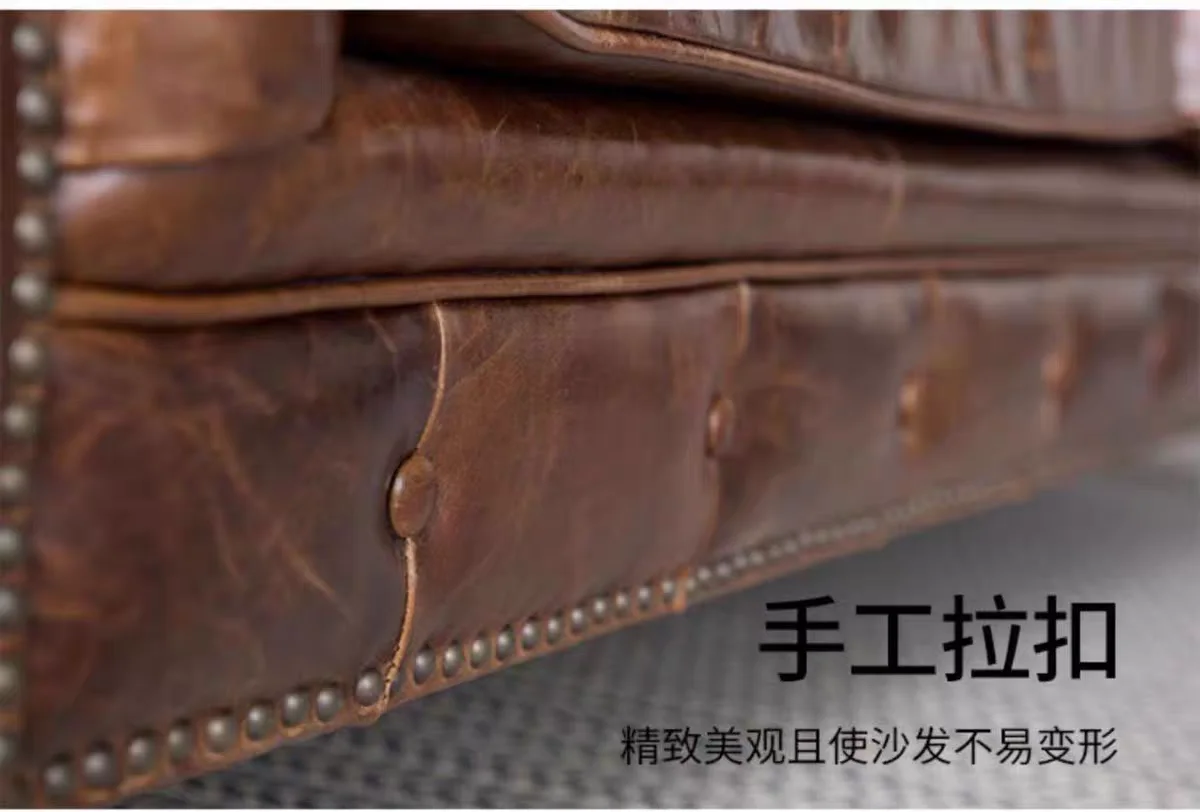 Gefertigt aus hochwertigem, echtem Leder, begeistert das Sofa mit einer natürlichen Oberfläche und einer angenehmen Haptik. Die Lederstruktur unterstreicht den authentischen Retro-Look und entwickelt im Laufe der Zeit eine individuelle Patina. Dadurch wird jedes Sofa zu einem einzigartigen Möbelstück mit Geschichte und Persönlichkeit – ideal für Liebhaber klassischer Einrichtungskonzepte.