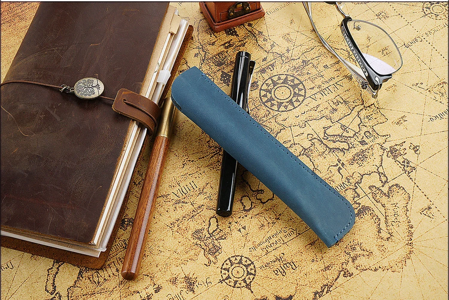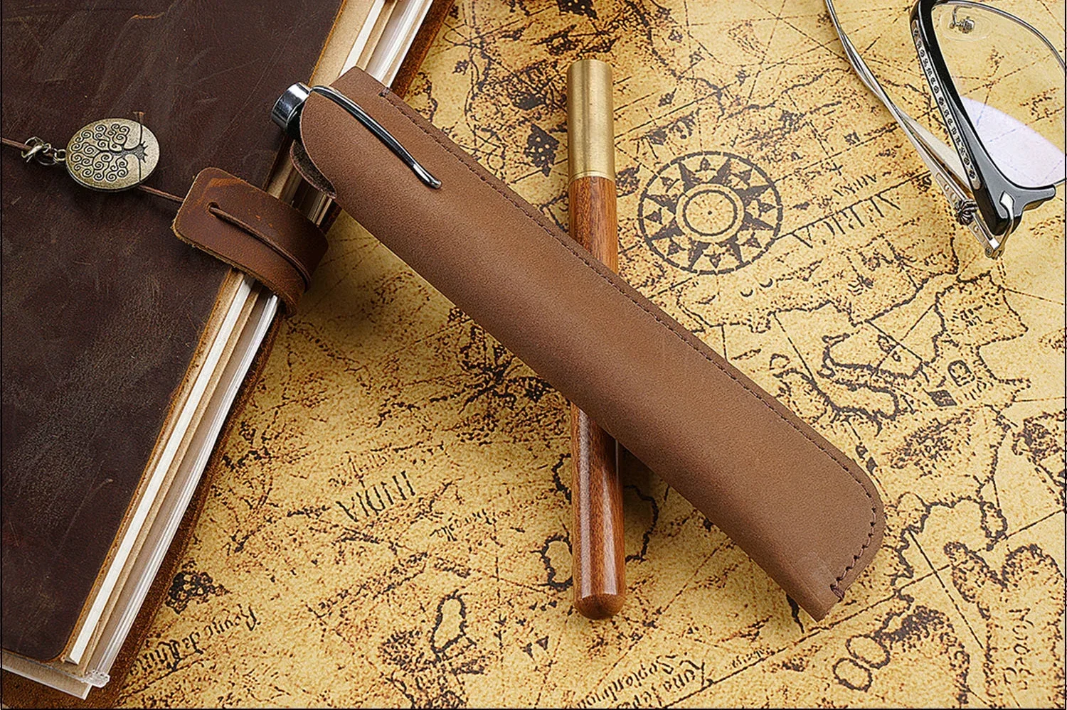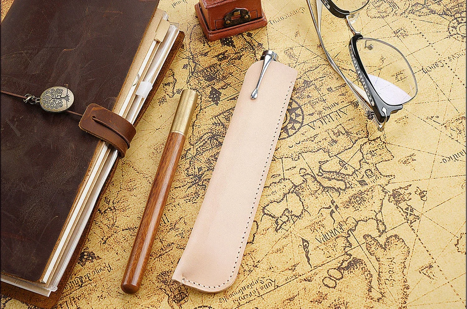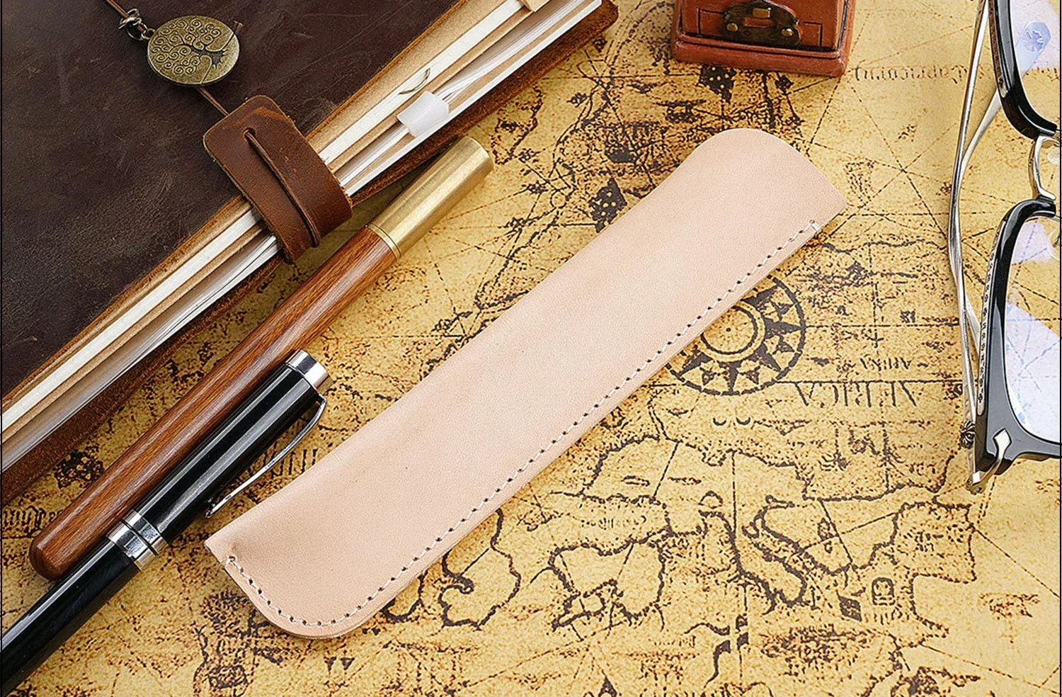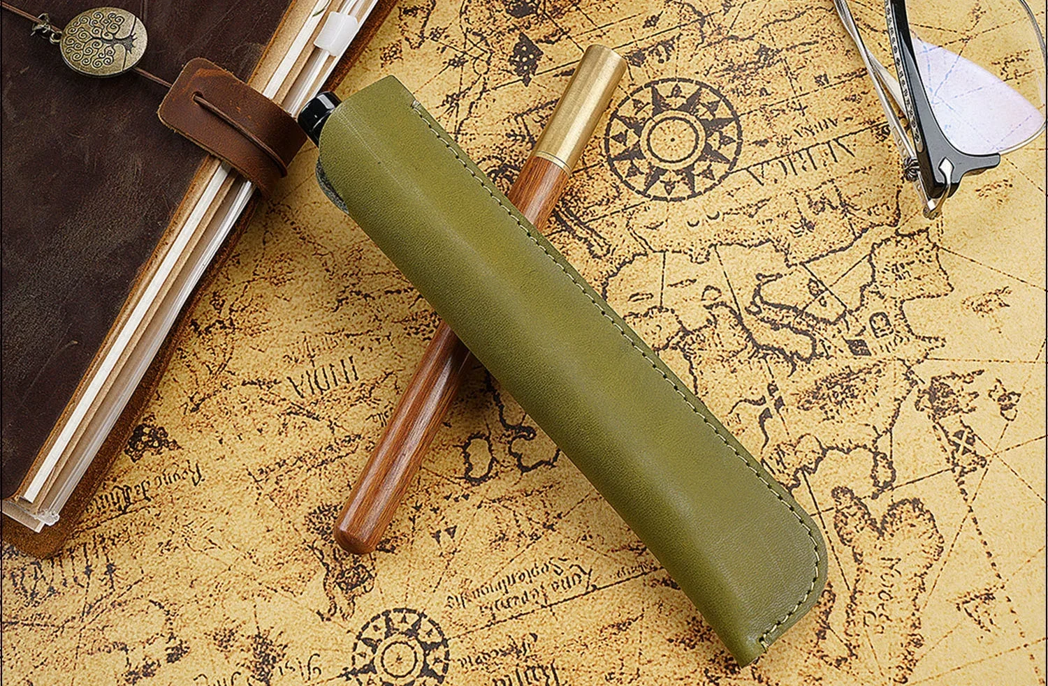 Retro Leder Stifteetui aus Echtleder – Schlichter Single Pen Holder im Vintage-Stil für Schule & Büro