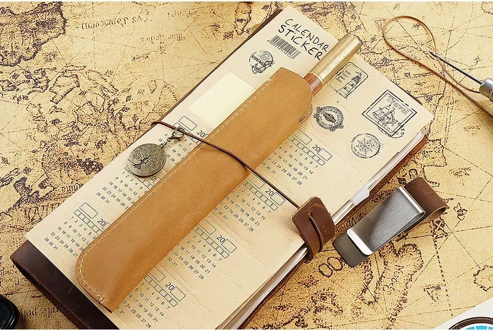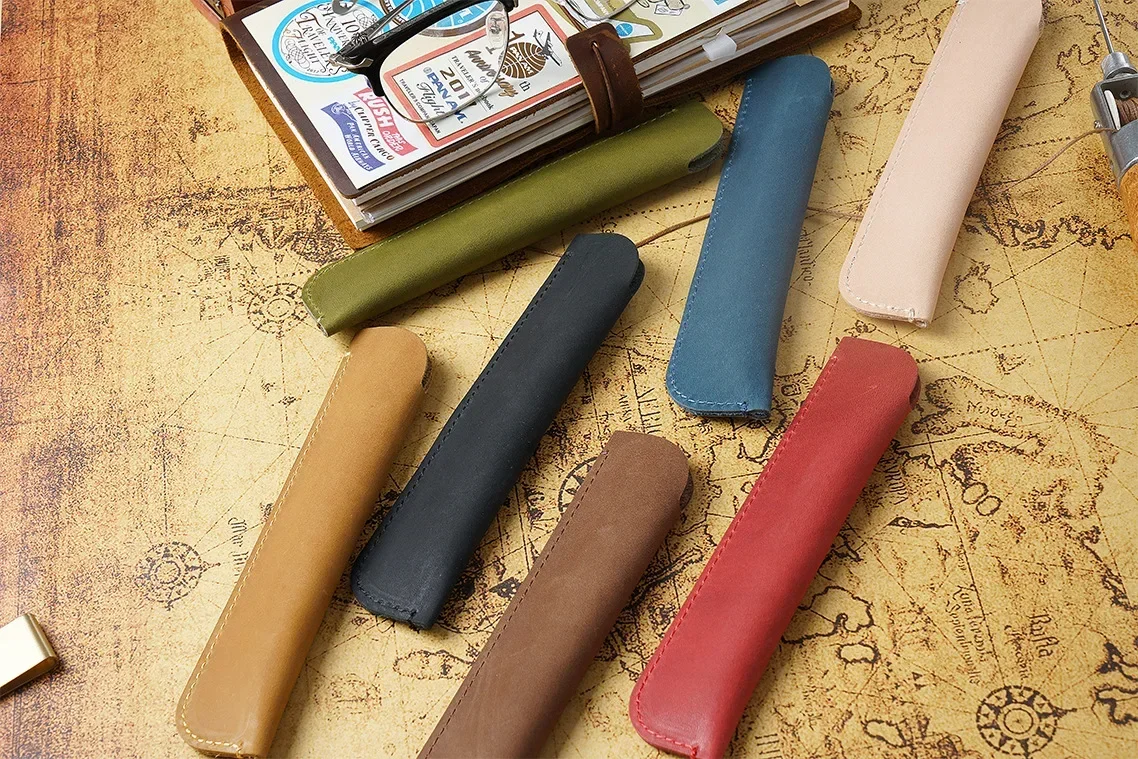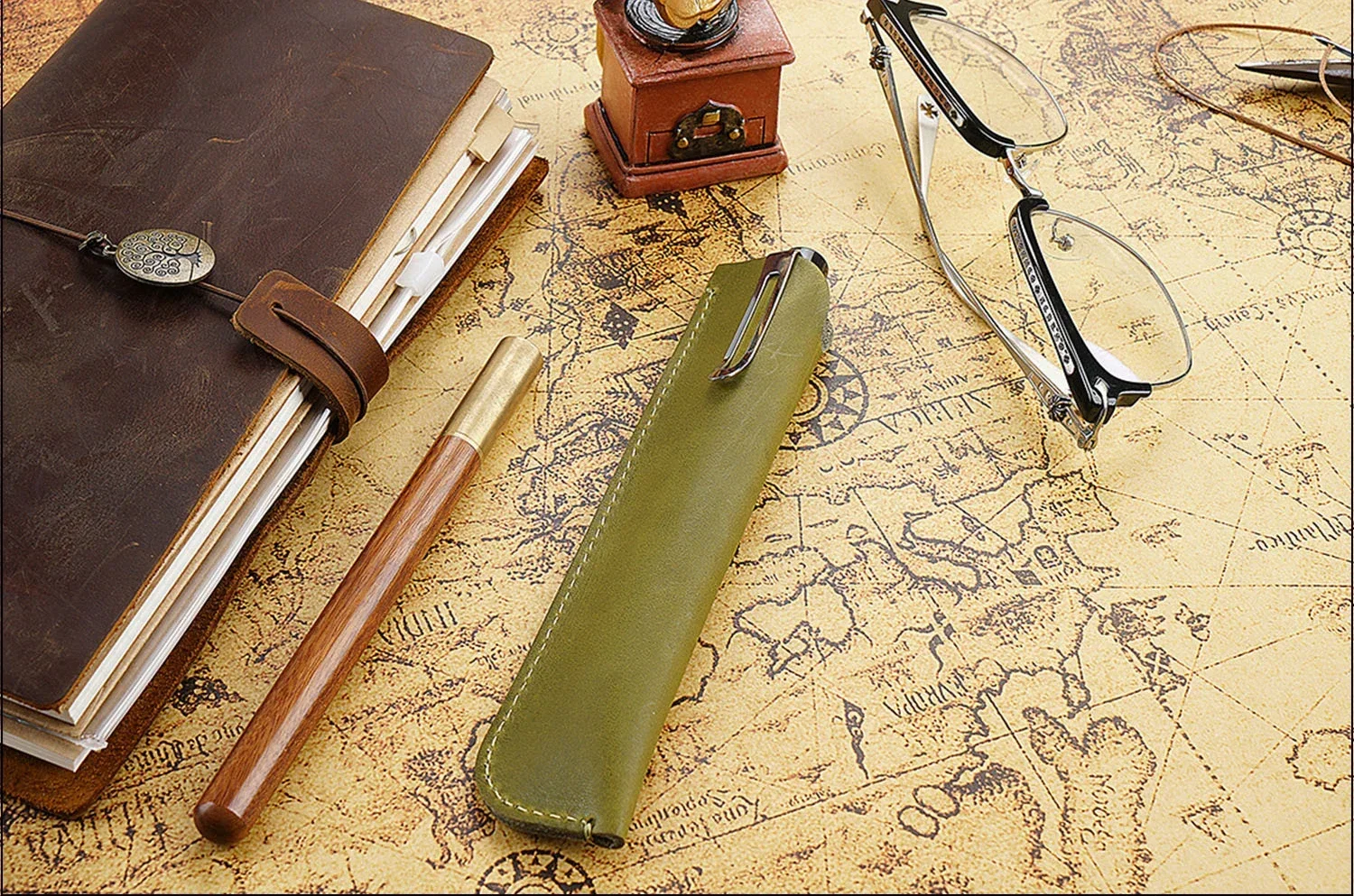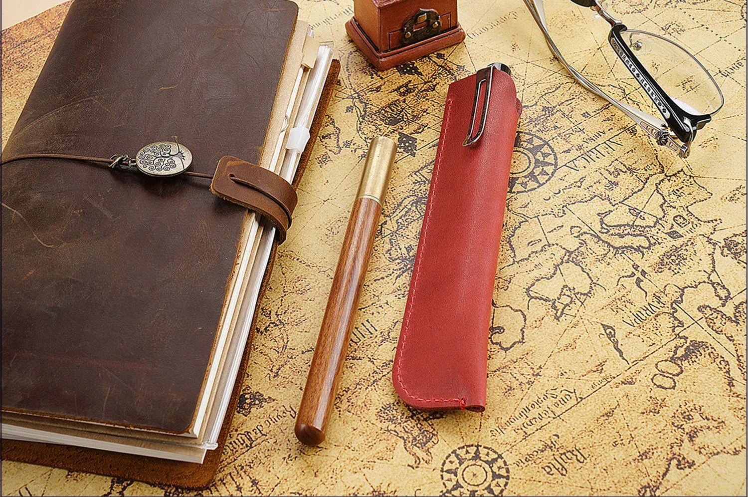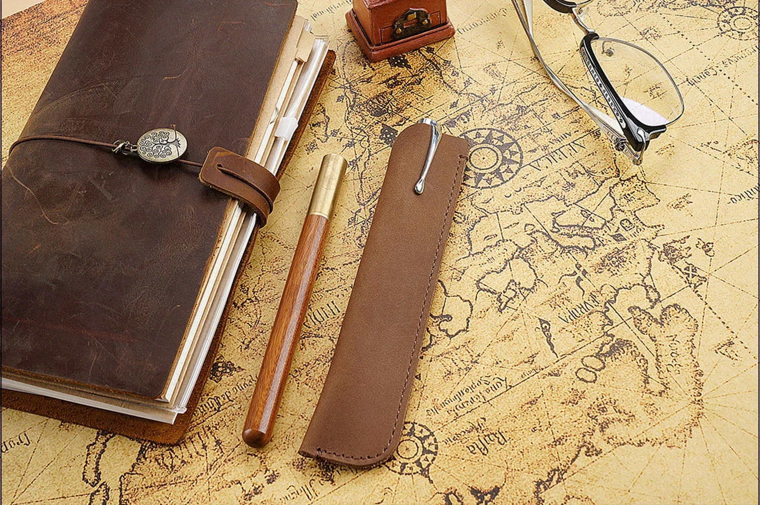 Retro Leder Stifteetui aus Echtleder – Schlichter Single Pen Holder im Vintage-Stil für Schule & Büro