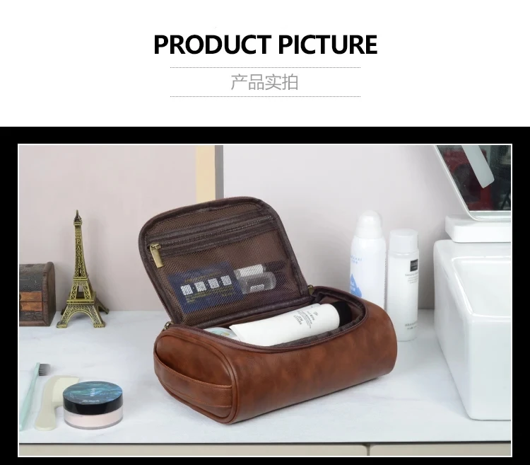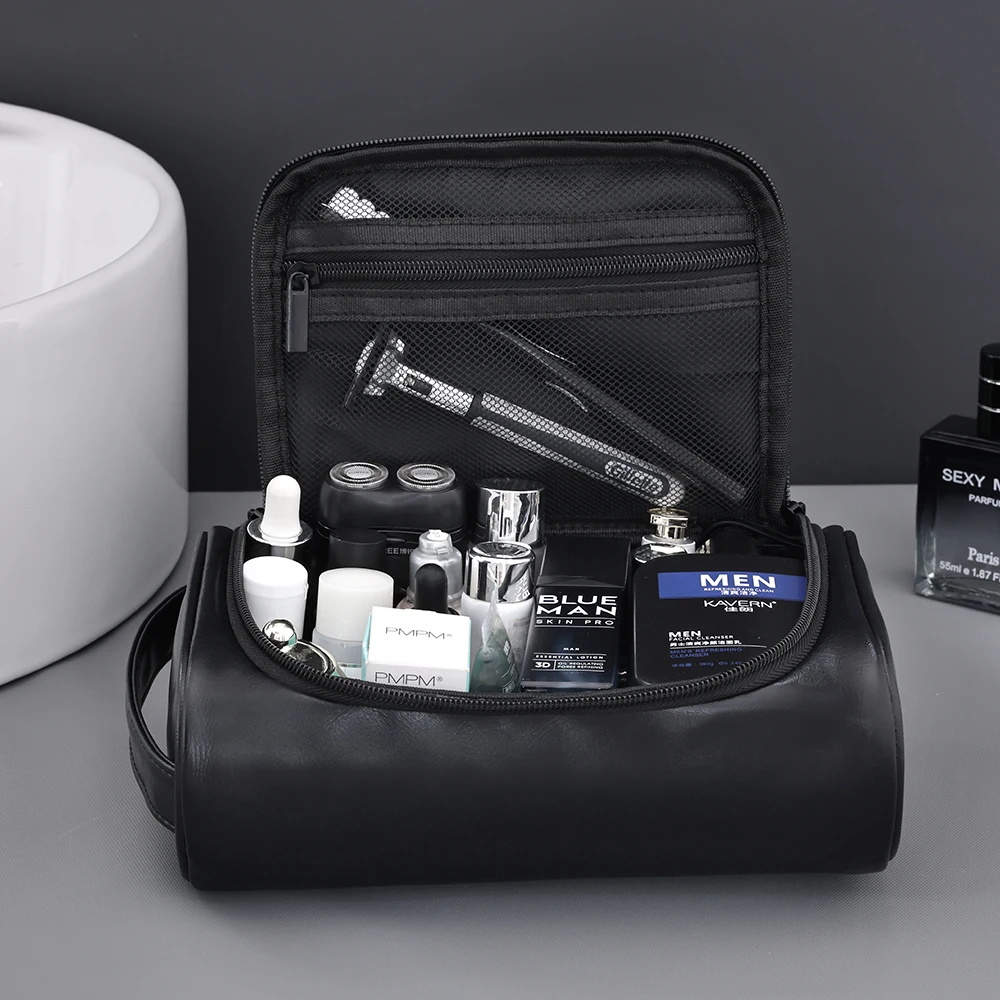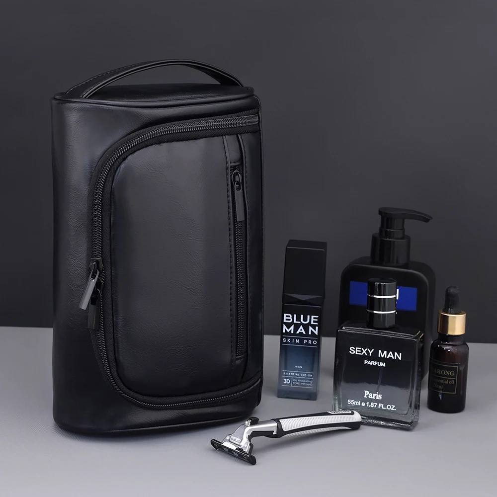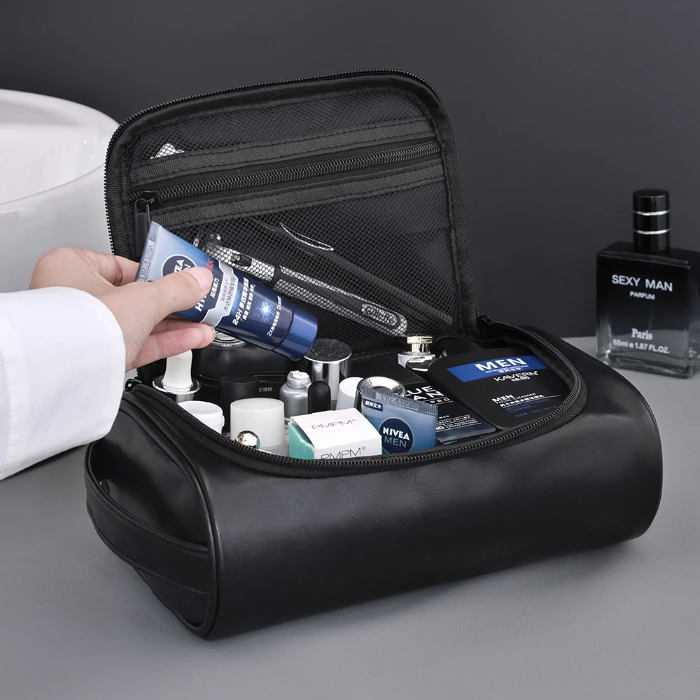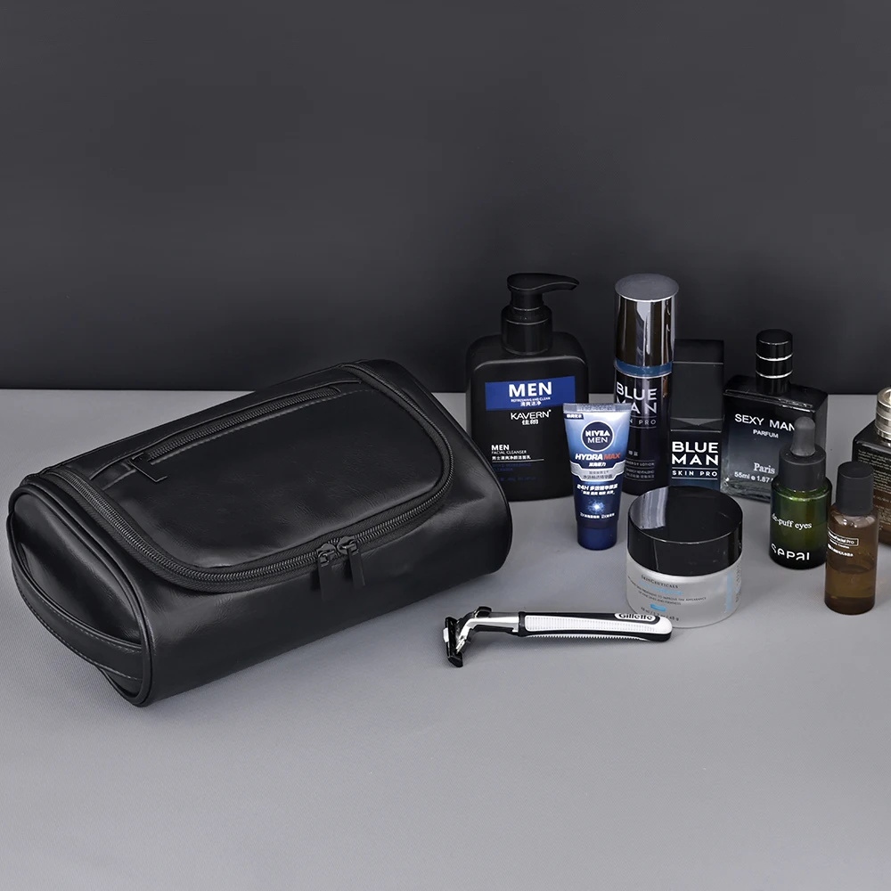 Ein integrierter Leder-Tragegriff macht den Kulturbeutel besonders praktisch. Er lässt sich bequem tragen, aufhängen oder schnell aus dem Gepäck entnehmen. Damit ist diese Toilettentasche ein unverzichtbares Accessoire für Flugreisen, Wochenendtrips, Geschäftsreisen oder den täglichen Gebrauch zu Hause.
