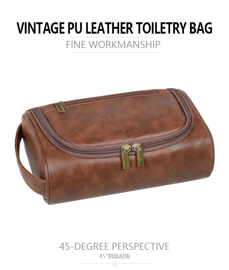 Hochwertiger Retro Kulturbeutel aus PU-Leder