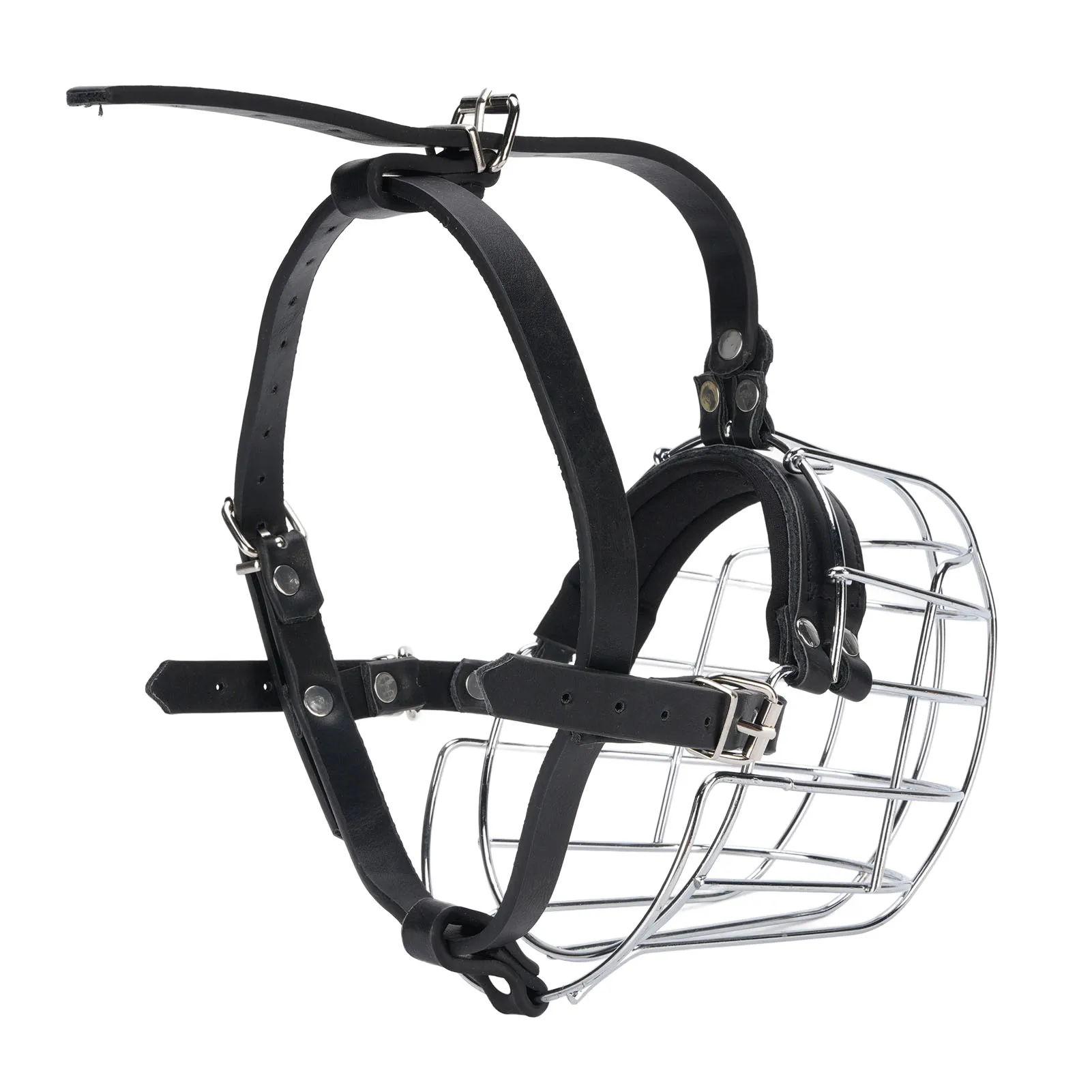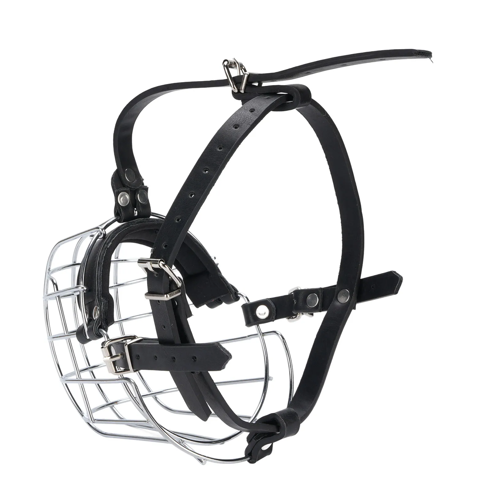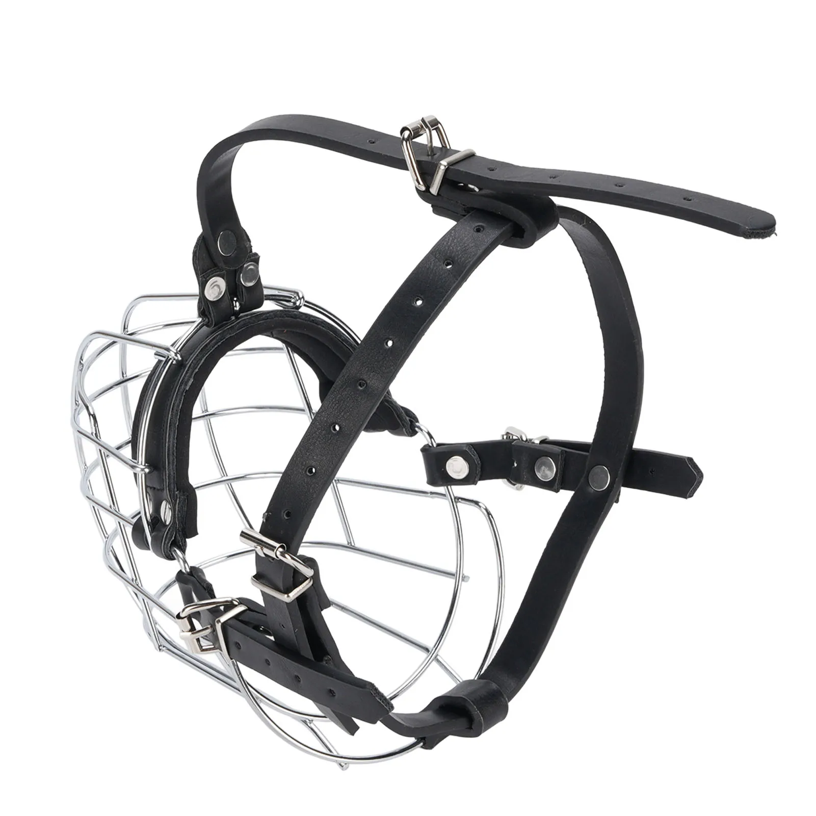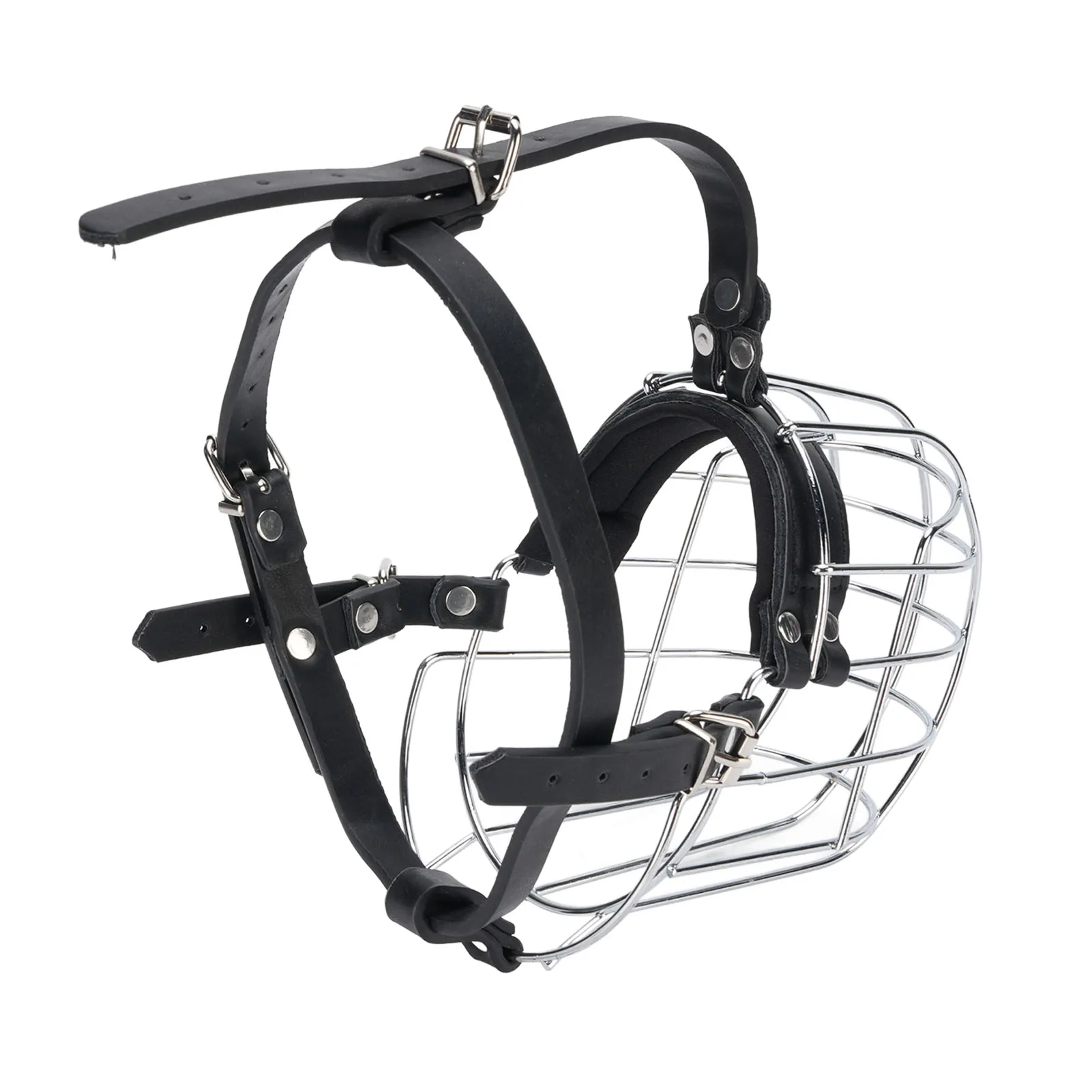 Robuster Drahtkorb-Hundemaulkorb mit PU-Leder-Riemen – Atmungsaktiver, sicherer Trainings-Maulkorb für mittelgroße & große Hunde