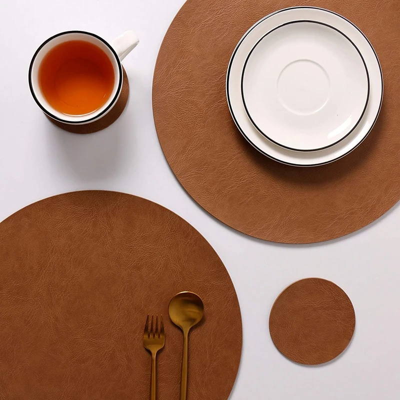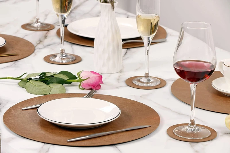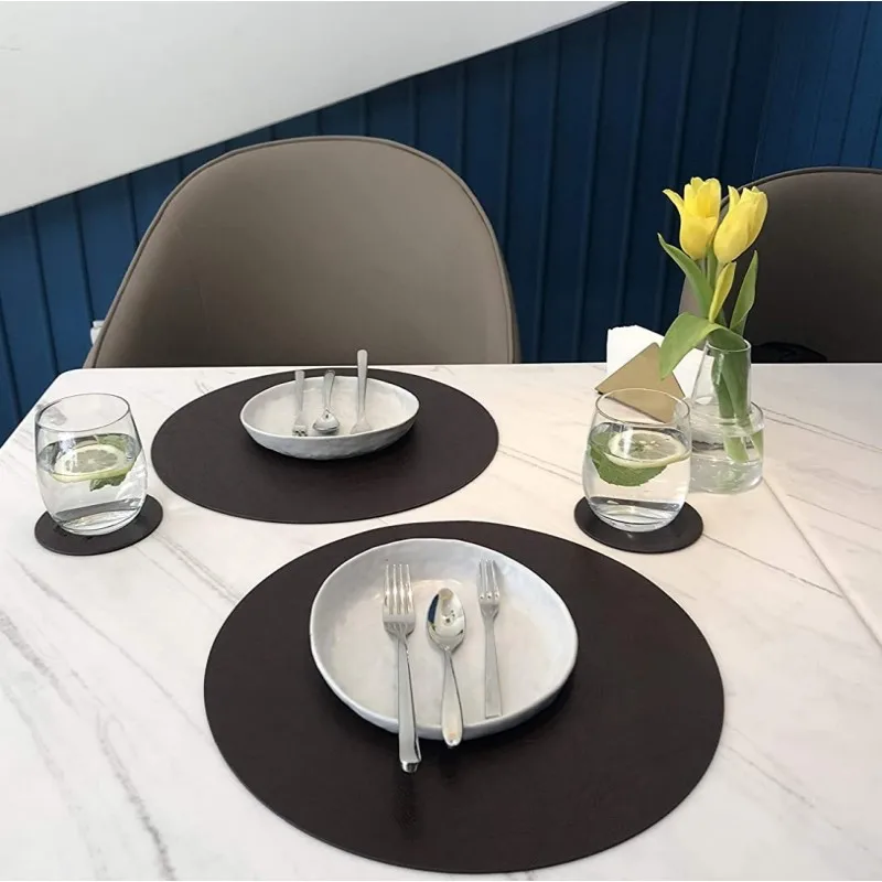 Bringen Sie Design, Schutz und Komfort auf Ihren Tisch. Entscheiden Sie sich jetzt für diese PU-Leder Platzsets mit Untersetzern und genießen Sie eine elegante Tischdekoration mit minimalem Pflegeaufwand.