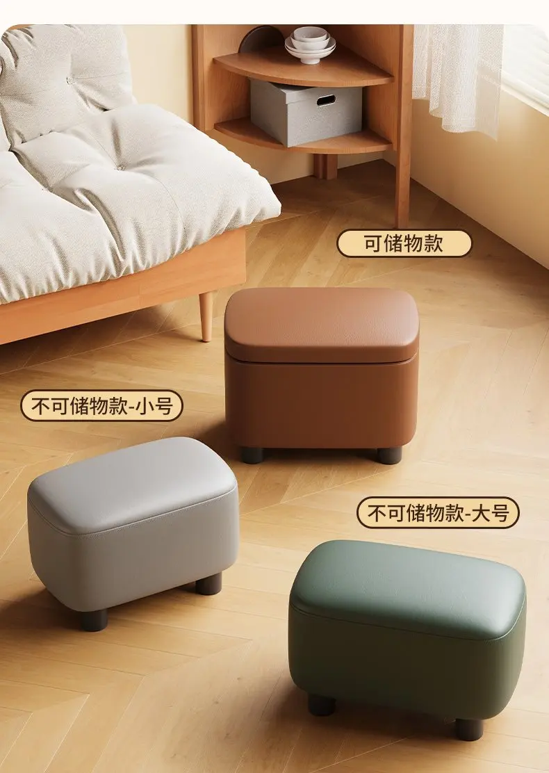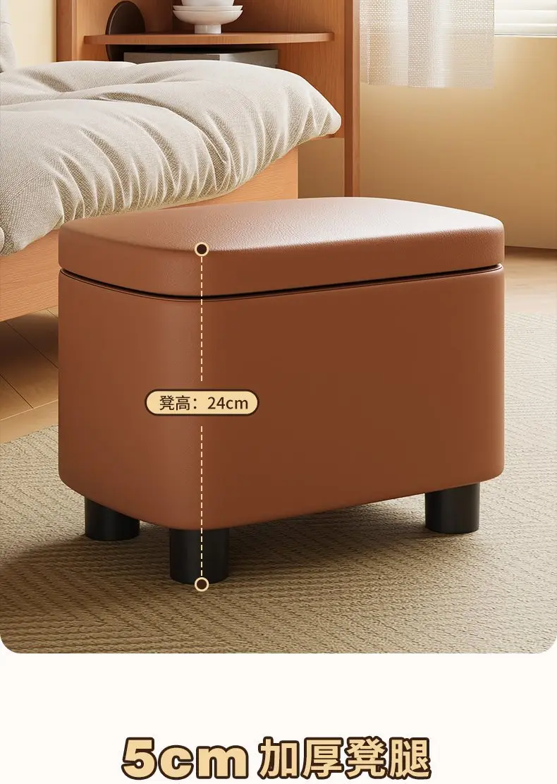Schuhhocker mit Stauraum aus PU-Leder & Massivholz – Niedriger Sitzhocker für Flur, Wohnzimmer & Kinderzimmer